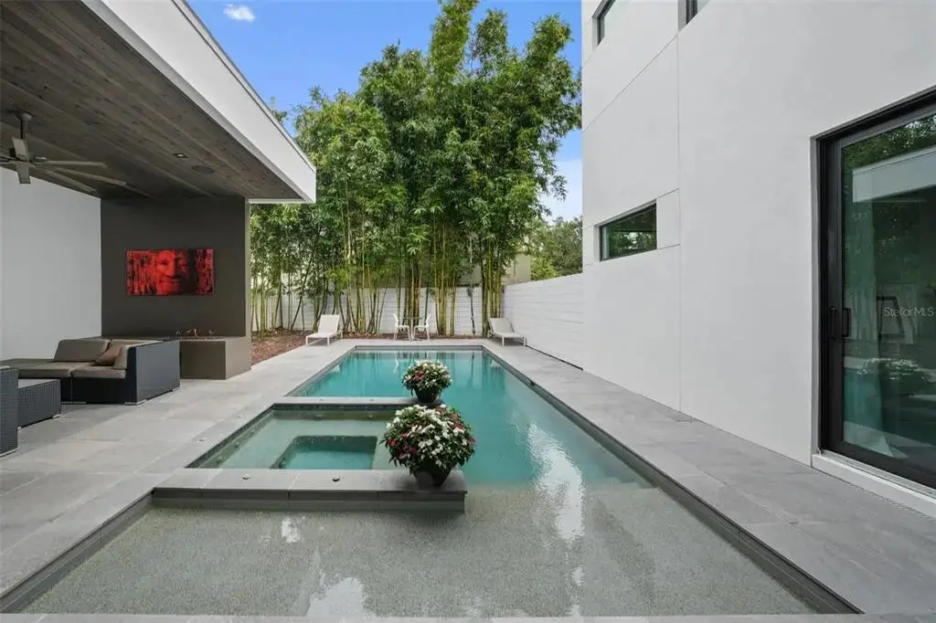 This stunning residence stands just steps from the highly coveted Waverly Park Circle. It’s distinguished by its exceptional quality and modern architecture. Thanks to two-story block construction, level 5 drywall application, sand-smooth stucco, and impact-resistant windows and doors, the home is not only visually stunning but also meticulously crafted. Built as a personal residence by the architect and builder of custom homes, Domain Development (D2), every detail has been artfully selected. Designed with gatherings in mind, the home features a formal dining room with a custom table for fabulous dinner parties and a spacious family room perfect for fun holiday celebrations. When the festivities move outside, sliding open the wall of glass doors transforms the indoor living space into an outdoor sanctuary. Guests can enjoy the saltwater pool and spa, gather at the bar beside the fully equipped outdoor kitchen, or relax by the fire in the outdoor living area. Alfresco dining is easily accommodated with a dedicated table. Back inside, the kitchen will impress even the most discerning chef. Features include a Jenn air gas cooktop, dual built-in ovens, a Subzero refrigerator, and large island with extra storage and seating. The sleek, modern design of the custom cabinets and counters is easy to maintain, thanks to the walk-in working pantry with appliance counter and shelving. Other benefits to the home include a downstairs primary bedroom suite with two walk-in closets. The bathroom features a floating dual sink vanity and walk-in shower. A private study and powder bath complete the first floor. Upstairs, find a reading loft flush with an abundance of natural light. There are four additional secondary bedrooms and three bathrooms. Additionally, there is an expansive laundry and bonus room. Additional highlights include a temperature-controlled wine room with space for 333 bottles, a mudroom with plumbing for a future bath, an oversized two-car garage, and pre-wiring for a generator. Convenient to downtown Tampa, Bayshore, and A rated schools. Also, it's in an X FLOOD ZONE with NO flood insurance requirements. The only challenge with buying this remarkable home is deciding how best to enjoy all it has to offer! Schedule your showing today!