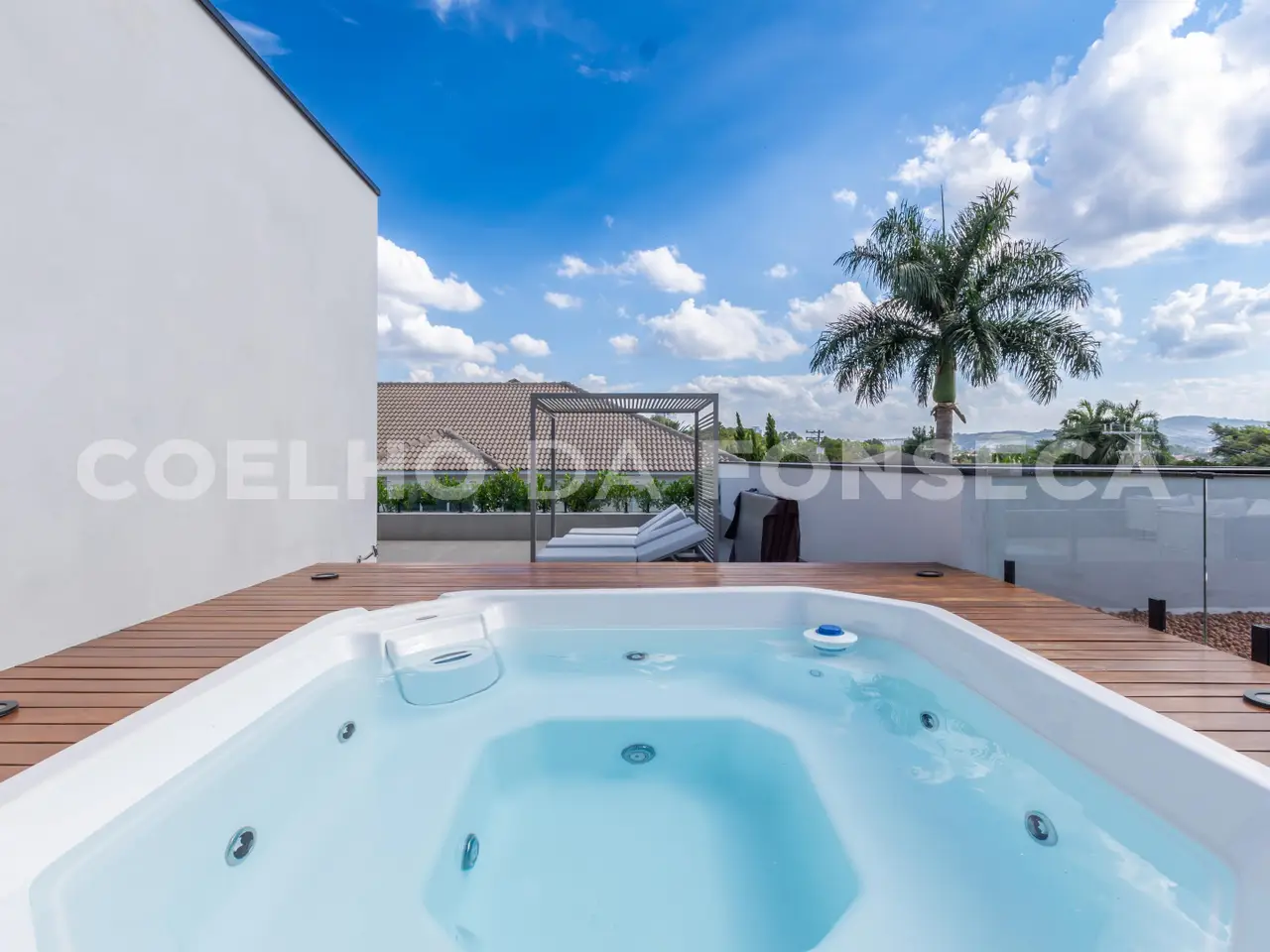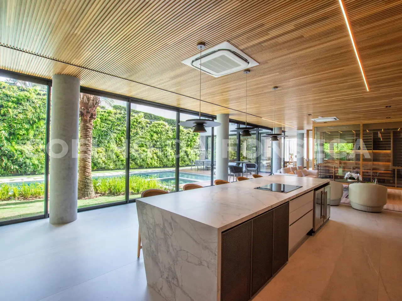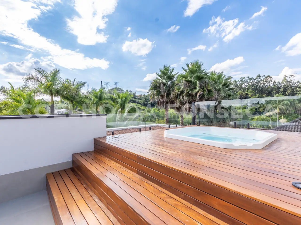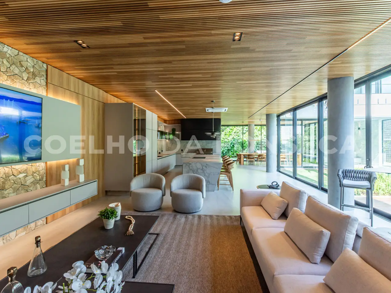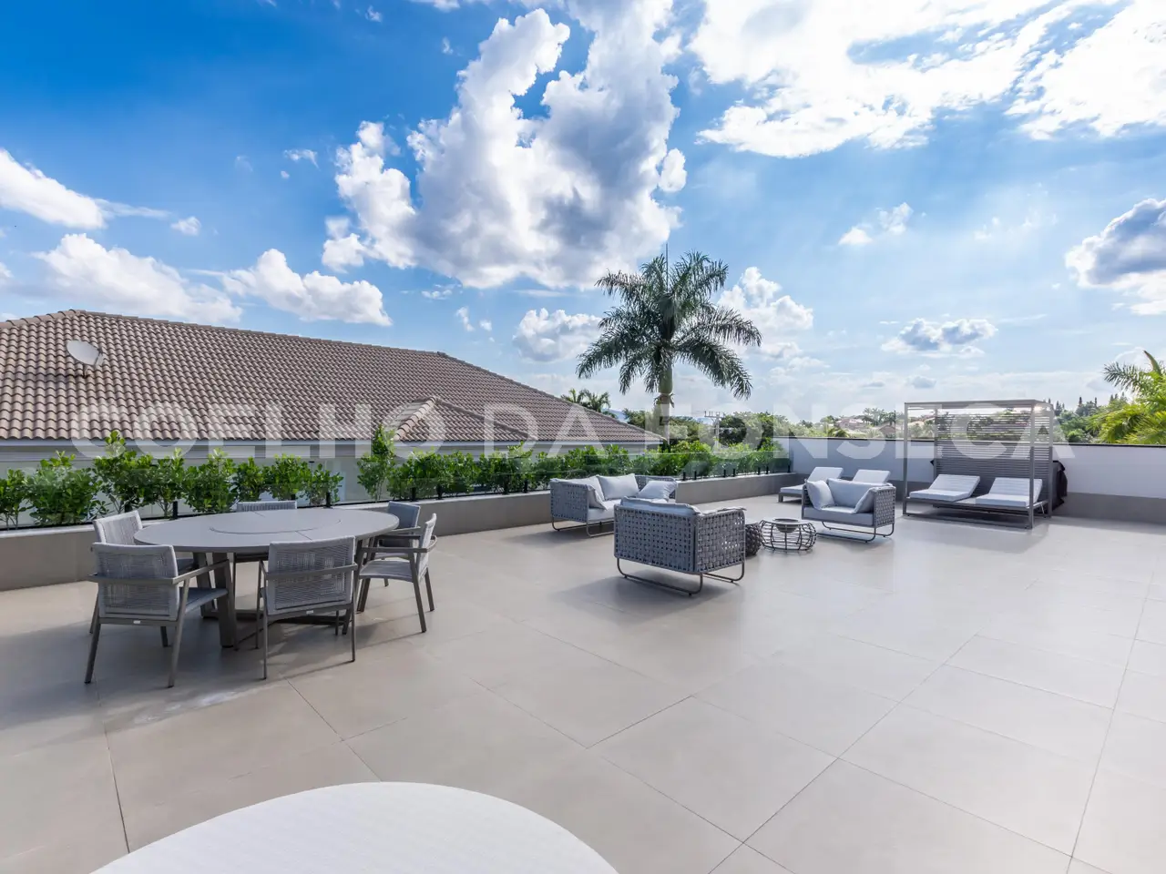 Beautiful and very well located, privileged view, modern and bold design, with a charming façade, fully integrated environments that contemplate harmony and sophistication, 06 suites, 2 with master closet, a wonderful swimming pool, whirlpool, sauna, complete gourmet area, wine cellar for 1000 labels, rooftop with Jacuzzi spa for 8 people, office, vertical landscaping with irrigation and automated lighting, state-of-the-art cinema, Tyssenkrupp elevator for 8 people, garage for 15 covered vehicles with vehicle charger, there is nothing like this, which is one of the best residential complexes in Alphaville, schedule a visit, you will be enchanted!! House in the TAMBORÉ II condominium, with 1469m² built area, 6 bedroom(s), 6 suite(s), 19 parking space(s), 8 bathroom(s), swimming pool, generator, office, sauna, storage room, furnished, air conditioning, employee's room, balcony, elevator, solar heater, double height ceiling.