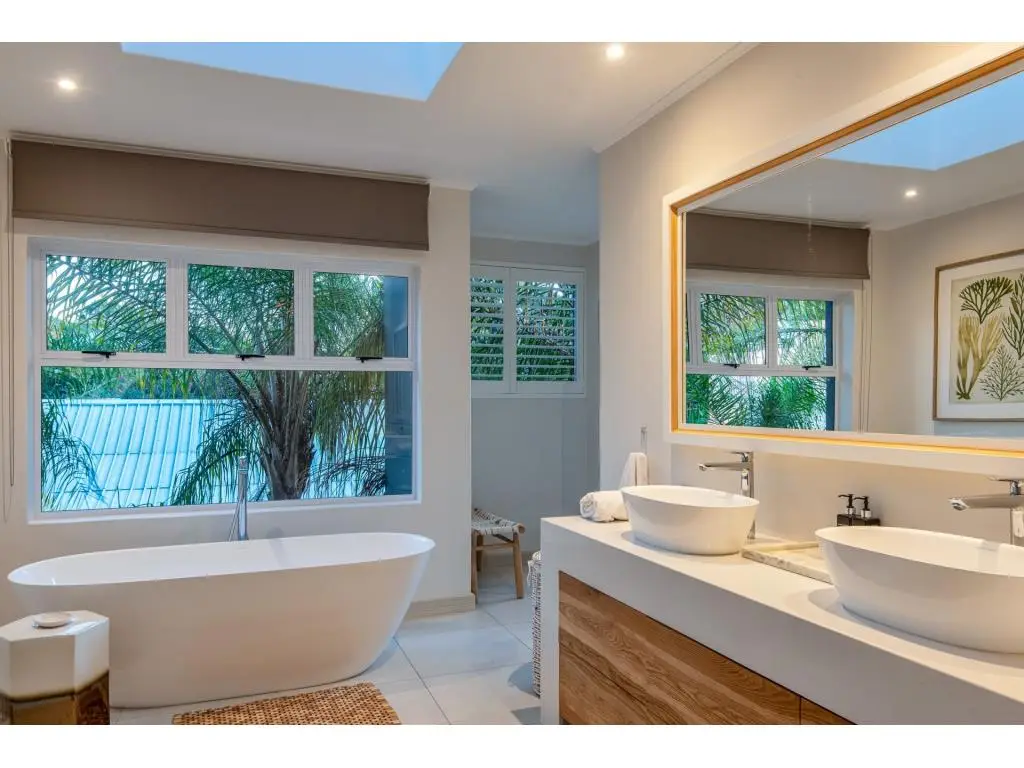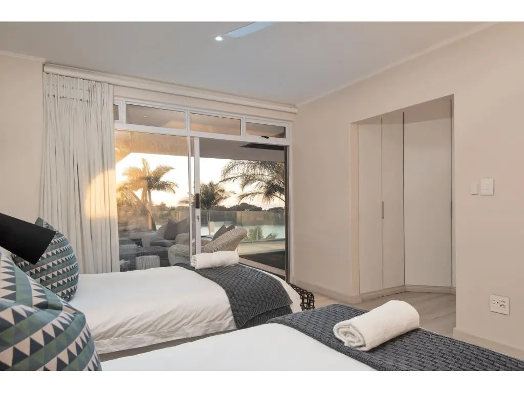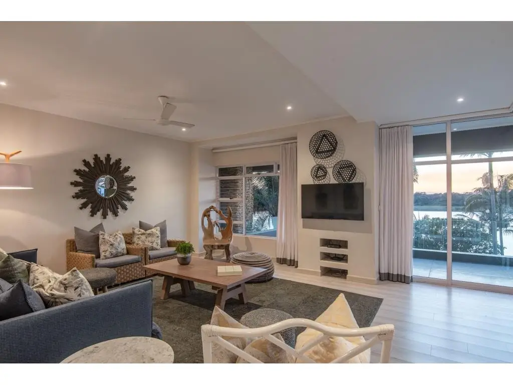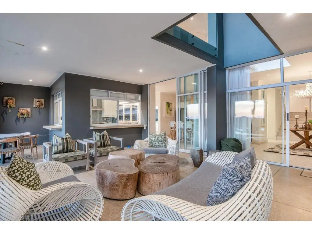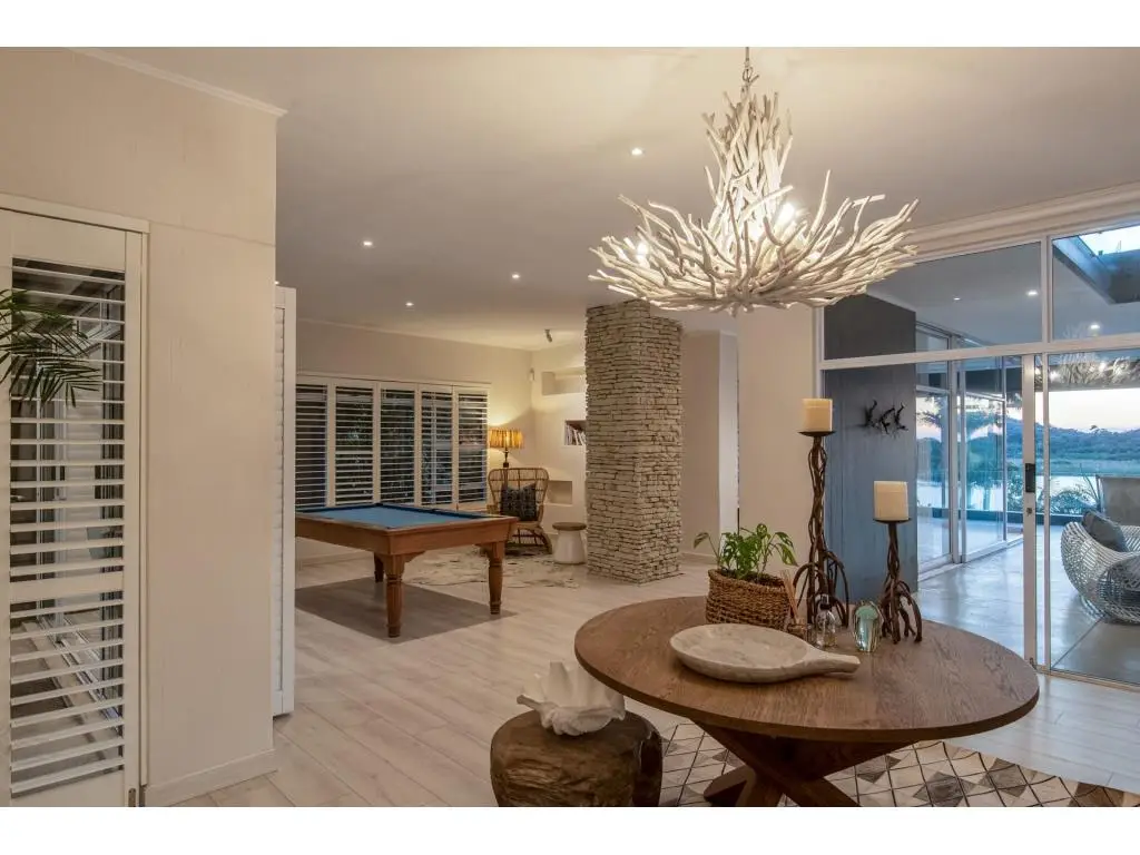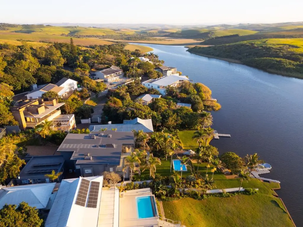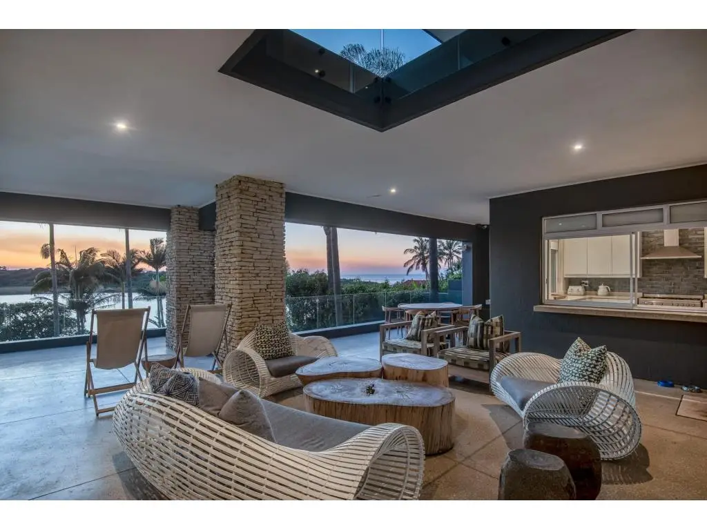 Exclusive to Chas Everitt - Welcome to an extraordinary lagoon-front estate that epitomises luxury and elegance. This once-in-a-lifetime property offers breathtaking views, unparalleled comfort, and exquisite design, perfect for those seeking an exceptional lifestyle. Fit for royalty, the Princess Charlene of Monaco occupied this property for 3 months whilst on an extended visit to South Africa. Grand Entrance As you enter the home, a magnificent, grand entrance hall greets you, featuring a broad staircase that elegantly divides the house into its upper and lower levels. Ascend the staircase to find the luxurious sleeping quarters, or descend to the expansive living areas designed for entertainment and relaxation. Upper Level The upper level houses four beautifully appointed bedrooms. The main bedroom is a sanctuary of indulgence, boasting an en-suite bathroom complete with a freestanding bathtub, double basins, double alfresco showers, and a private toilet. One additional bedroom enjoys a full en-suite bathroom, whilst the remaining two bedrooms share a spacious full bathroom, ensuring comfort and privacy for all residents. All of the bedrooms offer doors leading out to a generous covered balcony which enjoys sweeping lagoon, ocean and coastal forest views. Middle Level The middle level is dedicated to seamless living and entertainment. It features a sophisticated dining area, a cosy TV room for intimate gatherings, and a lively games room for family fun. The front of the home showcases a covered balcony, offering stunning views of the lagoon, while the back of the home includes a protected entertainment area which features a built-in pizza oven and is perfect for year-round enjoyment. The gourmet kitchen is a chef's dream, equipped with a gas hob, electric oven, and extractor. A massive scullery provides ample space for all appliances and additional storage, making meal preparation and clean-up a breeze. Lower Level The lower level is a versatile self-contained flatlet, ideal for guests or extended family. It features a kitchenette, dining area, lounge, en-suite bedroom, and a bunk room with three adult-sized bunk beds. The flatlet also includes a games room and a bathroom with a toilet, basin, and shower. A protected patio overlooks the meticulously maintained gardens and pool area, creating a serene retreat. Outdoor Paradise Step outside to discover an idyllic alfresco dining area at the bottom of the lawn, perfectly positioned to take in the tranquil lagoon views. The property's gardens and pool area are impeccably maintained, offering a lush, private oasis and there is a private jetty on the lagoon for mooring any lagoon-going craft. Additional Features This magnificent property is complete with three garages, a generous carport, ample uncovered parking, a full solar and inverter system, domestic quarters, a comprehensive alarm system, and CCTV for added security. The house is being sold fully furnished and equipped, including two boats and a jet ski, providing the ultimate in luxury living and recreation. Don't miss this rare opportunity to own a truly exceptional lagoon-front estate, where every detail has been meticulously crafted to offer the finest in luxury living.
