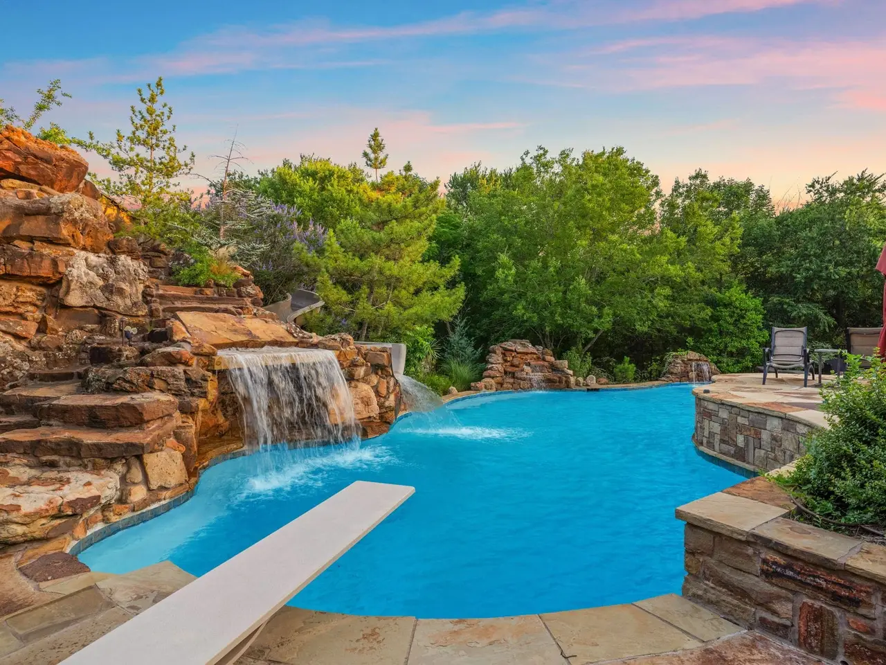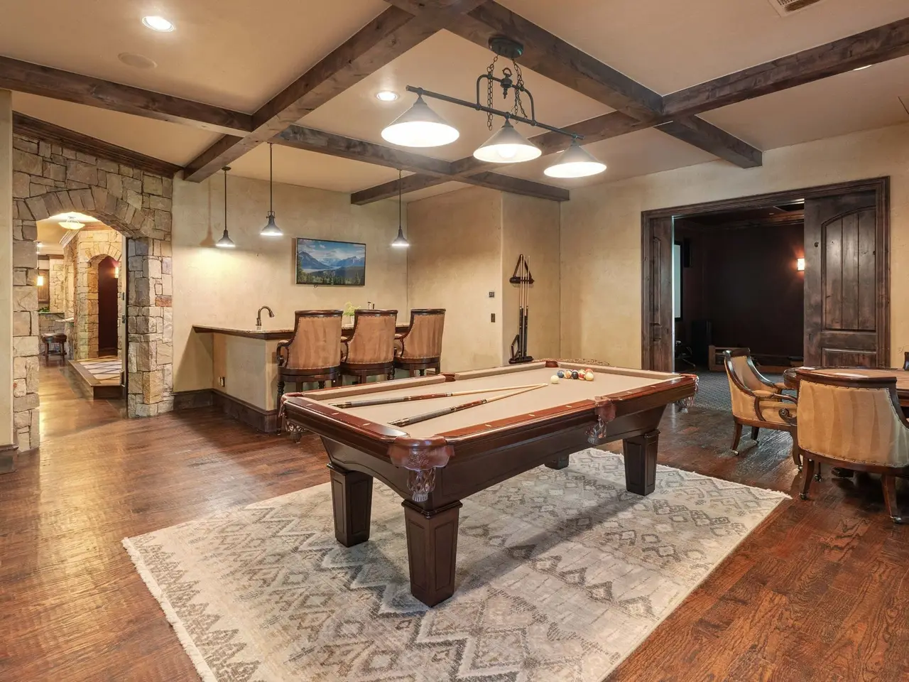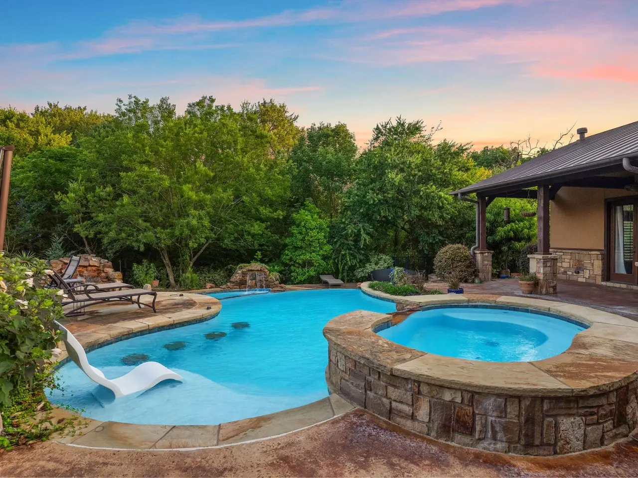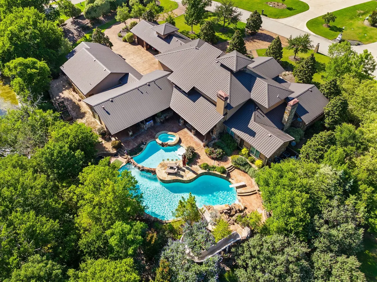 Experience this rare 2.19 acre creek lot and luxury home with rich southwestern and traditional character, a custom built estate by McCollum & Associates in the desirable Lucas, TX. The Creeks of Forest Grove is a gated community, offering extreme privacy and quietness, zone to the exemplary Love Joy ISD schools. Every detail of this high end home has been thoughtfully designed and meticulously crafted to offer both grandeur, warmth, and structural integrity. The heart of the home is the gourmet kitchen, boasting copper sinks, Wolf and Miele appliances, custom decorative panel cabinetry and more. Host unforgettable gatherings in the formal dining room, featuring a gorgeous chandelier, crown moulding, and oversized baseboards. Keep it casual in the oversized breakfast nook with arched stone details and a secondary stairwell, adding a touch of architectural charm. And don't miss your very own wine room underneath the stairs. The living room is an entertainer's dream with soaring ceilings, and a dramatic floor-to-ceiling stone fireplace. The bonus game room downstairs exudes a rustic aesthetic, complete with nailed down hand scraped hardwood flooring, a custom bar with ice maker, beer tap, and a third impressive stone fireplace. For movie nights and game days, the media room offers a built-in projector with screen and ambient sconces. Step outside to your private retreat, a resort-style backyard featuring a 90,000-gallon salt water pool with slide, three waterfall features, and hot tub. Make some core memories in the outdoor kitchen, unwind by the wood-burning fireplace under the covered patio, and enjoy sunsets framed by native Texas landscaping. There's more, with a 7 car garage, you'll never be short of space and storage, especially with it being 25 deep and oversized heights, plus the garage has its very own storage room that has AC. Don't miss out on unmatched craftsmanship, timeless design, and resort-style living in this one-of-a-kind North Texas luxury home.