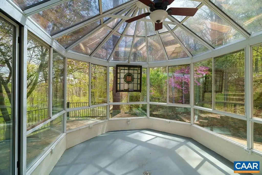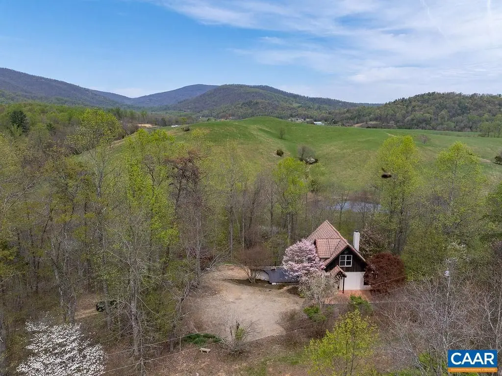 EUROPEAN TUDOR COTTAGE on 22.14 acres in Western Albemarle County. Perched on a knoll, this custom home offers privacy & beautiful mountain views. Outdoor living is in abundance with a lovely front courtyard, primary ensuite deck, terrace patio with water feature, goldfish pond & screen porch. Home was built with distinct & unique details: exposed wood beams, terracotta roof tile, radiant floors (terrace & first floors), high ceilings, built-in storage & a gorgeous glass solarium. The kitchen lends a rustic vibe with KitchenAid gas range, marble counters, scored concrete flooring & wood beams. The residence offers a total of 3 bedrooms & 3.5 baths. First floor with 2 ensuite bedrooms with stunning views from the primary's private deck. Second floor includes a living area, bedroom, kitchen & jack & jill bath. Terrace level offers a spacious, open living/dining area, 2-sided woodstove/fireplace, kitchen, walk-in pantry, small office, laundry, mechanical/utility closet, powder room & tons of storage. With additional grooming and fencing, this property would make a perfect small horse farm.