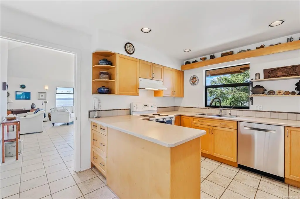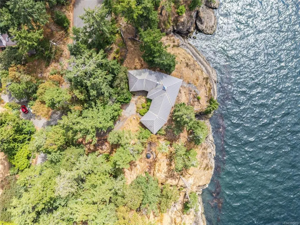 Architect-designed, custom-built oceanfront home bathed in sunlight and nestled at the coveted end of prestigious Scott Point. Perfectly positioned with south-west exposure, this exquisite residence offers breathtaking 180-degree ocean views from all principal rooms. Thoughtfully sited for ultimate privacy and connection to nature, this 1,650 square foot one-level home features two spacious bedrooms, an office/den, and an airy vaulted-ceiling living room with banks of sunlit windows. Cozy wood stove, seismic engineering and passive solar design. Low-maintenance, fenced woodland garden nestled among native trees and plantings, enhanced with drought-tolerant exotics, and custom stonework. Shoreline benches for relaxing, or easily launch a kayak or paddleboard. With community water access and a substantial rainwater collection system, keeping gardens growing. Just minutes from town and the Long Harbour ferry; this property is a great opportunity to experience the best of island living.