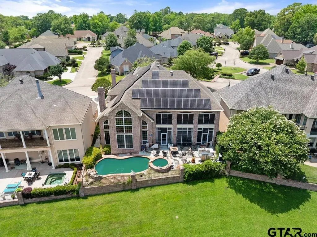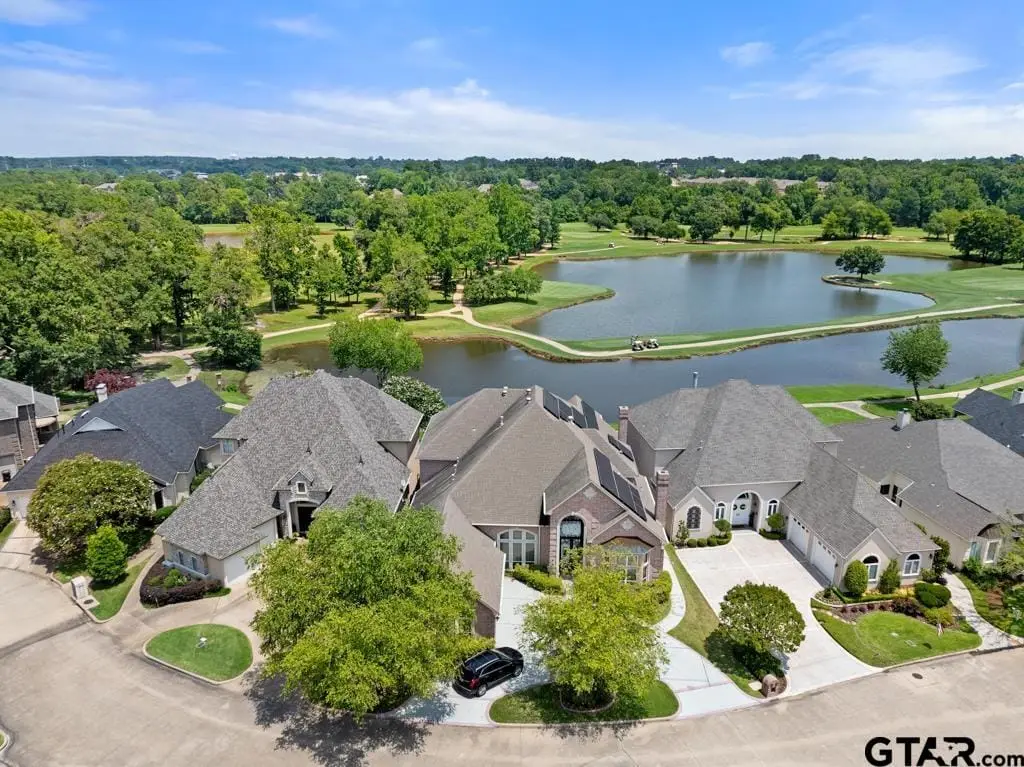 INTERIOR PICS TO BE POSTED AFTER ESTATE SALE. Rare opportunity to own one of only 12 homes in gated Winsford at Hollytree with direct views of the lakes and Hollytree golf course. With multiple living areas and the option for either one or two additional bedrooms this 3 bedroom 4 1/2 bath home is a great fit for a variety of lifestyles. The large primary suite with sitting area looks out to the beautiful views and has direct access to the pool and hot tub. Large primary bath with separate vanities, separate toilets, one with a bidet and his and hers closets have direct access to the utility room. Upstairs bedrooms both have golf course views and access to a large balcony, jack and jill bath and another living area with built-in desk and cabinets. Updates include new roof, gutters and downspouts August, 2025, new 5 ton exterior HVAC unit August, 2025 and new Kitchen Aid double ovens and built-in refrigerator. Don't miss your opportunity to own in one of the most beautiful subdivisions in Tyler, call for your private showing today!