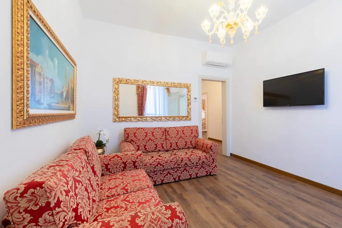 San Marco, calle dei Fabbri, in a few steps from Campo San Luca and from St. Mark's square, second floor apartment, composed of three double bedrooms, two large bathrooms with shower, a service bathroom, one kitchen and a living room. From all rooms you can admire a beautiful canal view and bell tower of San Marco. Independent heating and air conditioning.