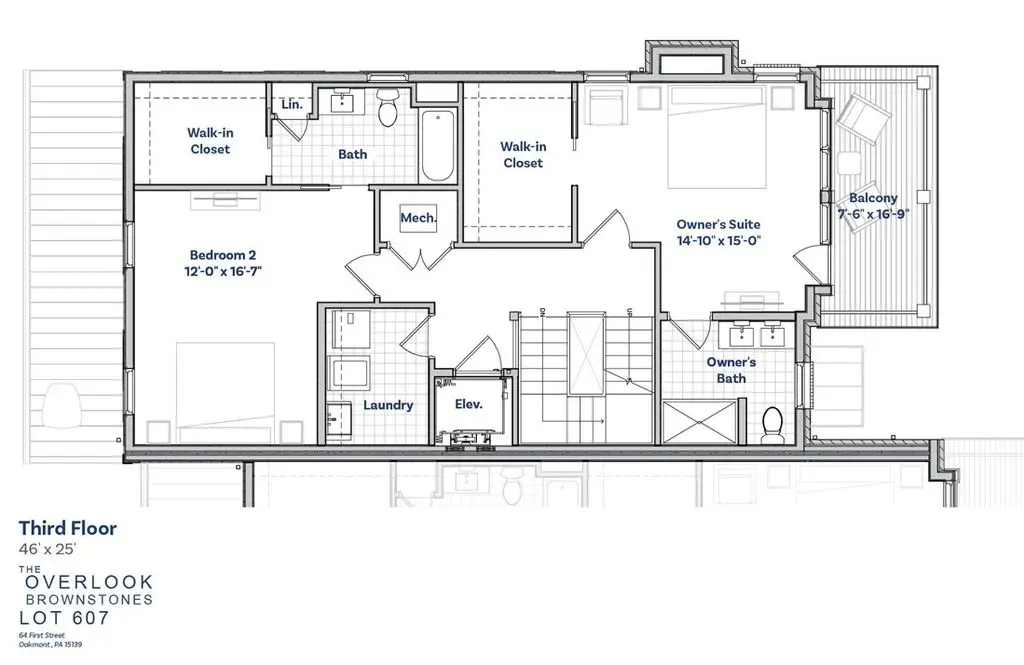 Welcome to the Overlook Brownstones, modern city-style vertical residences within The River's Edge of Oakmont community. This brand-new residence stands tall along the Allegheny River with water views from the multi-level balconies and large top-level terrace with fireplace. As a corner unit, many tall windows make it bright and airy. Interior features include an in-home elevator, open floorplan with 10-ft ceilings on main level, 3C/B?B=4-bedroom suites and bonus room. Finished to drywall stage > buyers can make interior selections and customize to their liking. The riverfront clubhouse for residents includes a fitness center, infinity pool, great room/party room, and fire-pit. Low-maintenance community C/B?B=no more cutting your grass! Paved walking trail along the water. Close to the shop and restaurants of the Oakmont business district. 30 minutes or less to Downtown, Oakland or Bakery Square.
