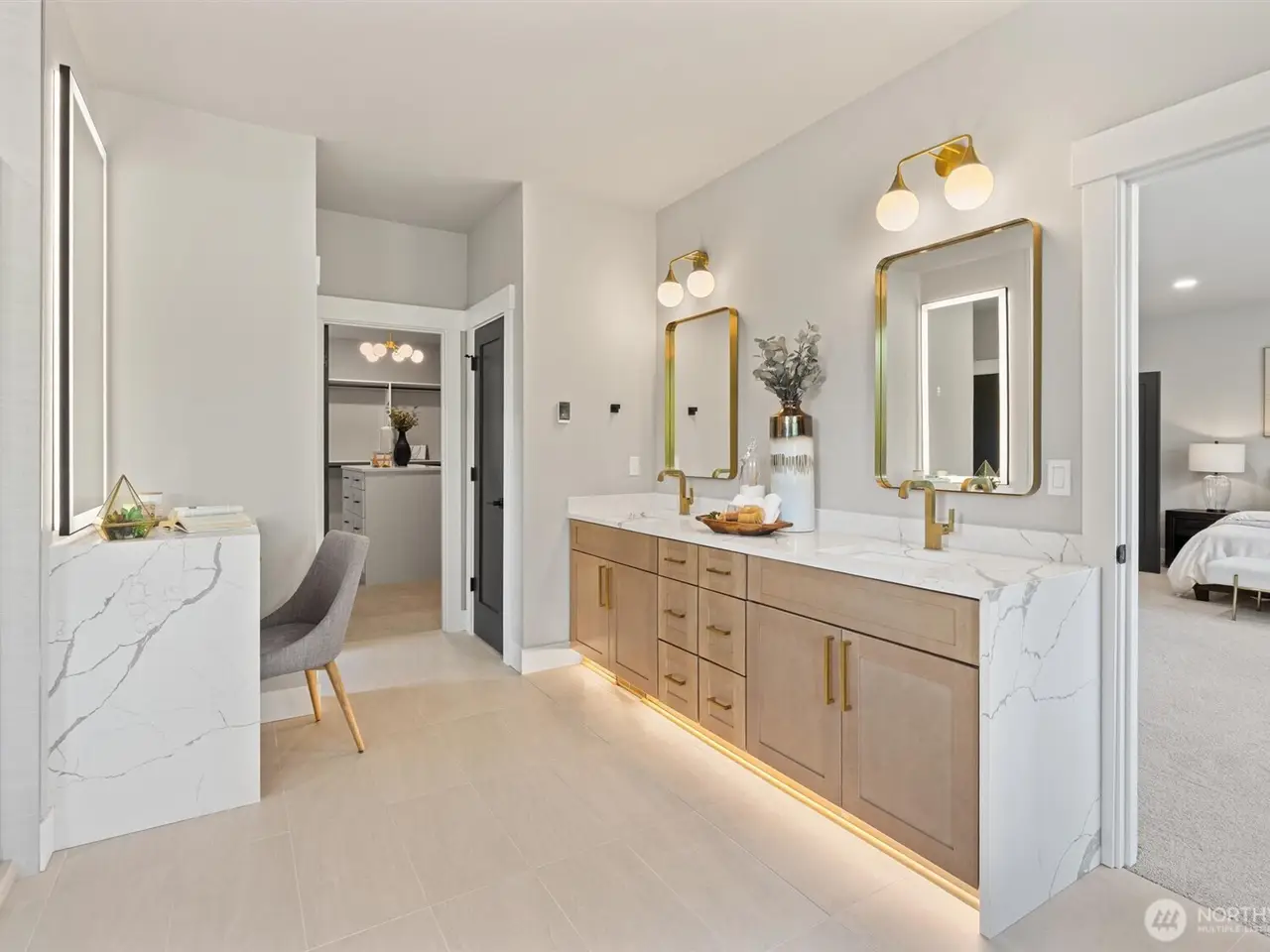 New custom built 3,866 sqft 4 bedroom home on 1/2 acre manicured lot. Relaxing open floor plan with tall ceilings. Bright kitchen has a butlers pantry with beverage fridge & additional walk in pantry. High end appliance package includes gas cooktop. Great room with built in cabinets. Double sliders open to covered patio with gas hook up for bbq. Main floor Jr Primary & den. Primary suite includes double gas fireplace & sitting area. 5 piece primary bathroom has heated tile floors, bidet toilet & soaking tub with fireplace. The primary walk in closet w/ island has access to the Laundry room. 3 of the 4 bedrooms have attached bathrooms. Dedicated mechanical room w/storage. Paver driveway leads to Large 4 car double tandem garage.