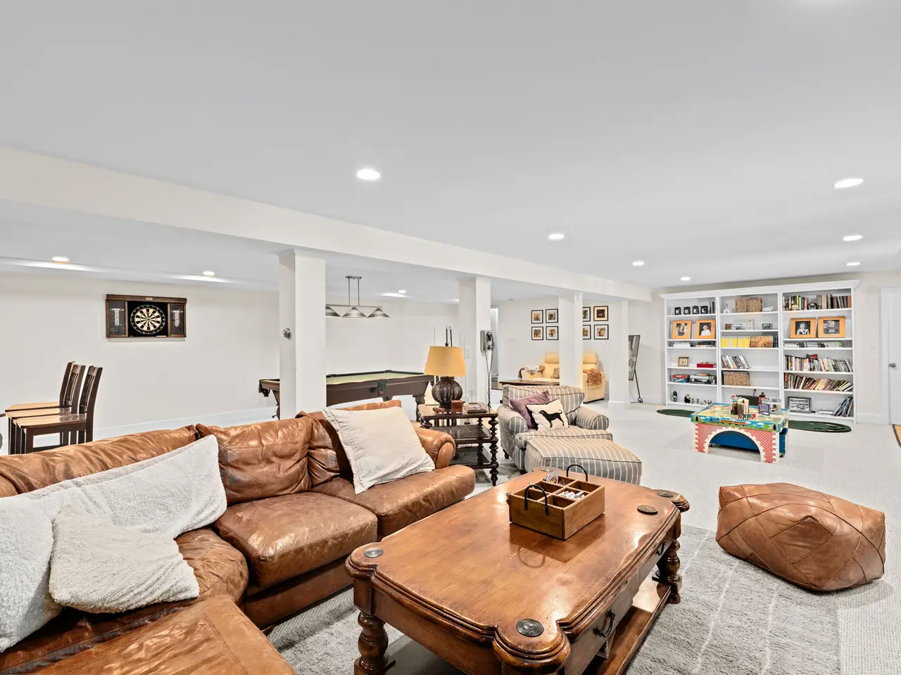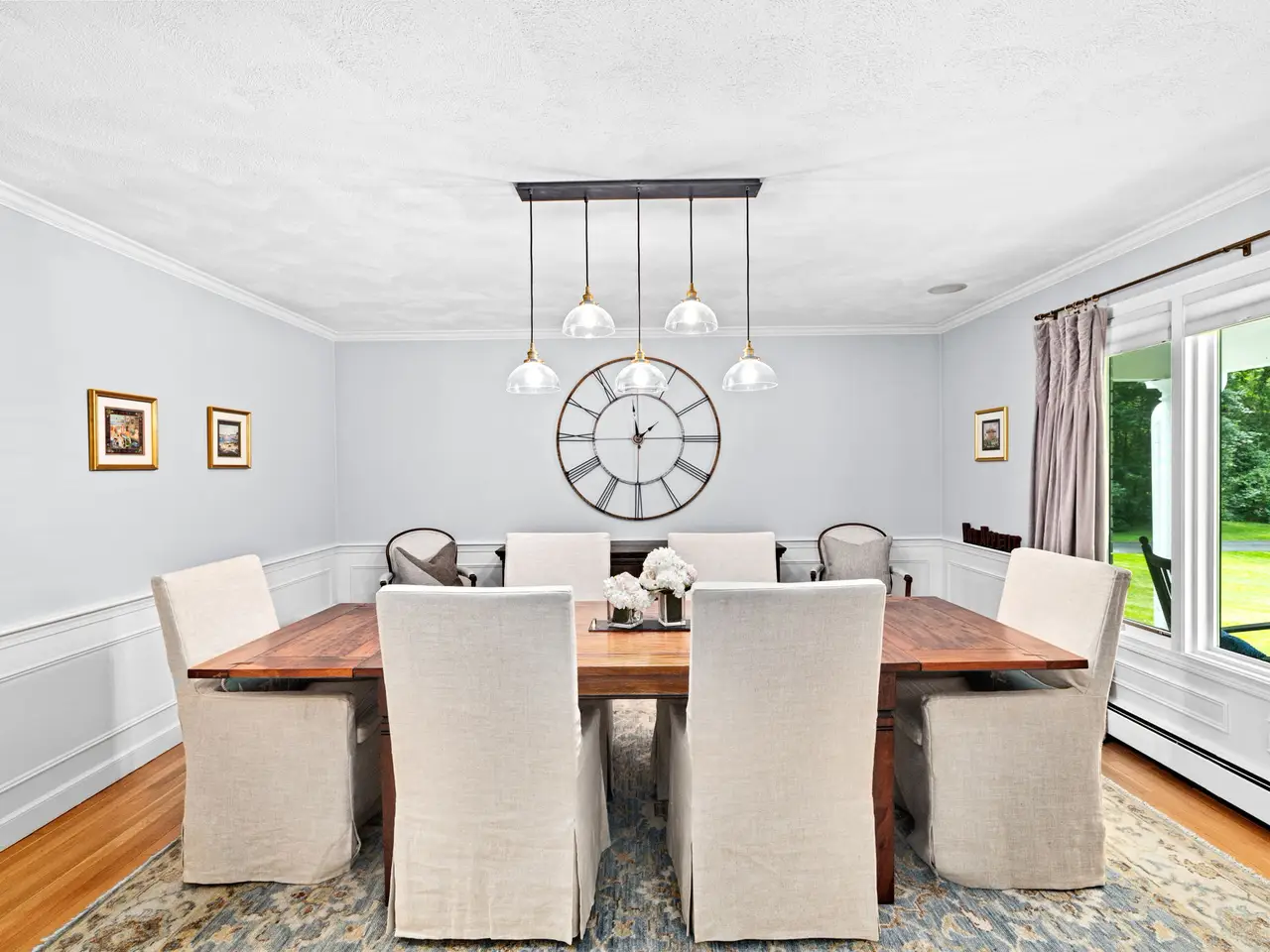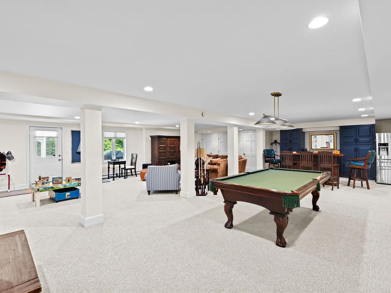 This 5-bedroom, 3.5-bath home is in one of Dover’s most desirable, centrally located neighborhoods. Set on a private 2.2-acre lot with mature landscaping and underground utilities, the home features an open layout with oak hardwood floors, custom area rugs, and flexible living space. The custom kitchen opens to a family room with a wood-burning fireplace, and a butler’s door connects to the dining and sitting rooms. The main floor includes a primary ensuite and two bedrooms with a shared bath; upstairs offers two more bedrooms, a full bath, and unfinished space with potential. The finished basement includes a home gym, entertainment area, and walkout to a covered patio. Additional highlights include a new heating system, 2016 roof, whole-house generator, irrigation system, and decks.