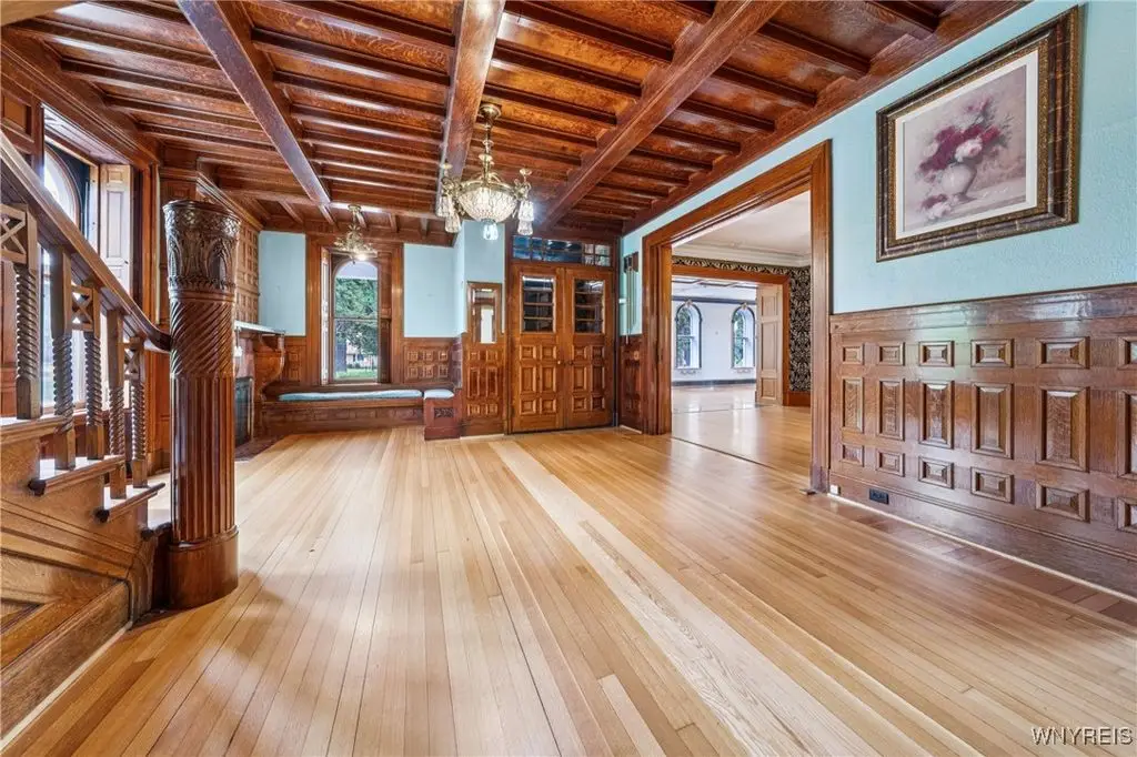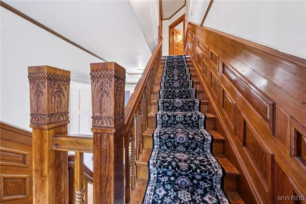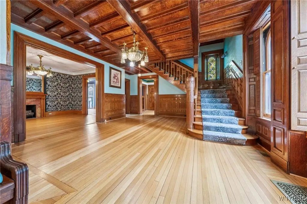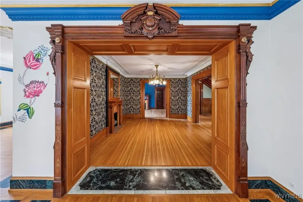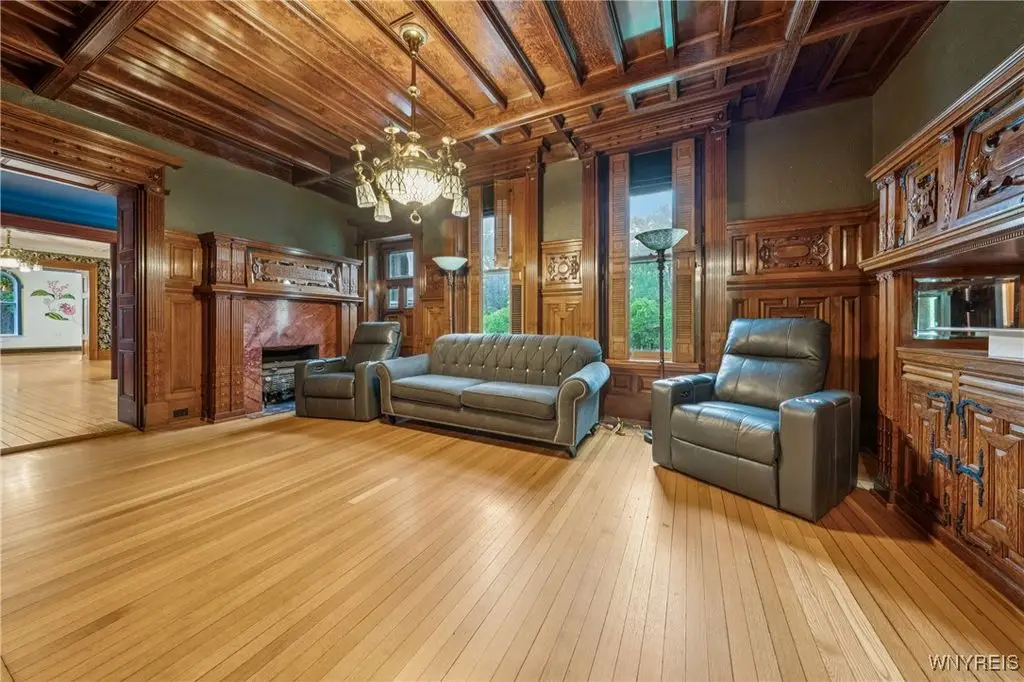 Who wants to live in a mansion that was part of the development of Cheektowaga & helped launch Grover Cleveland's presidential career? 7000 SF masterpiece was built w/ exquisite craftmanship/style/sophistication. As you enter you will notice a huge foyer w/coffer ceiling/natural woodwork/cozy reception area w/FP. The elegant woodwork throughout the home showcases the skilled carpentry of yester years. Formal parlor has gold leaf adorned ceilings & wall of windows great entertainment space that leads to a nice sitting room w/ door. Enjoy a private LR to relax, large eat in kitchen has huge brick FP/plenty of space to cook. 1st floor office room/sauna, plus a 6 car garage, private grounds/outdoor patio for those summer parties, plenty of parking or convert space back to your private tennis ct. 2nd floor features 6 beds, 3 full baths, which is currently being used as a primary en suite Attic can be in-law/attendants quarters, guest suite rec room/or converted to additional bedrooms also perfect for theatre/game room. Great opportunity to live in a piece of WNY history.