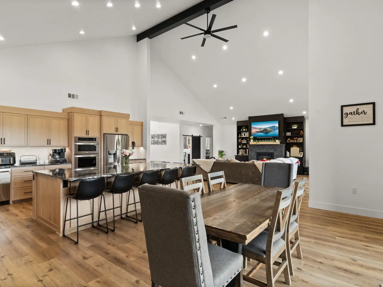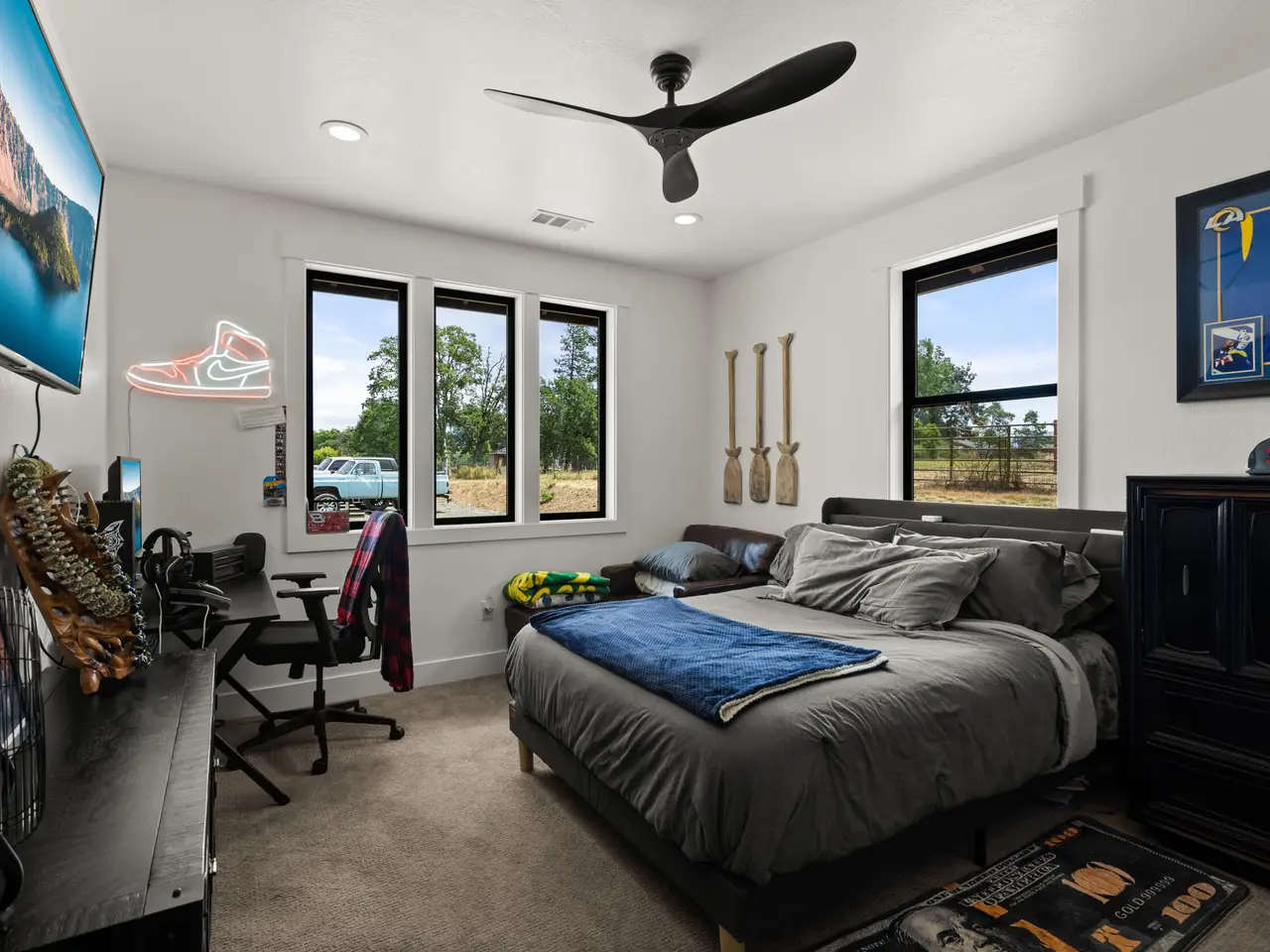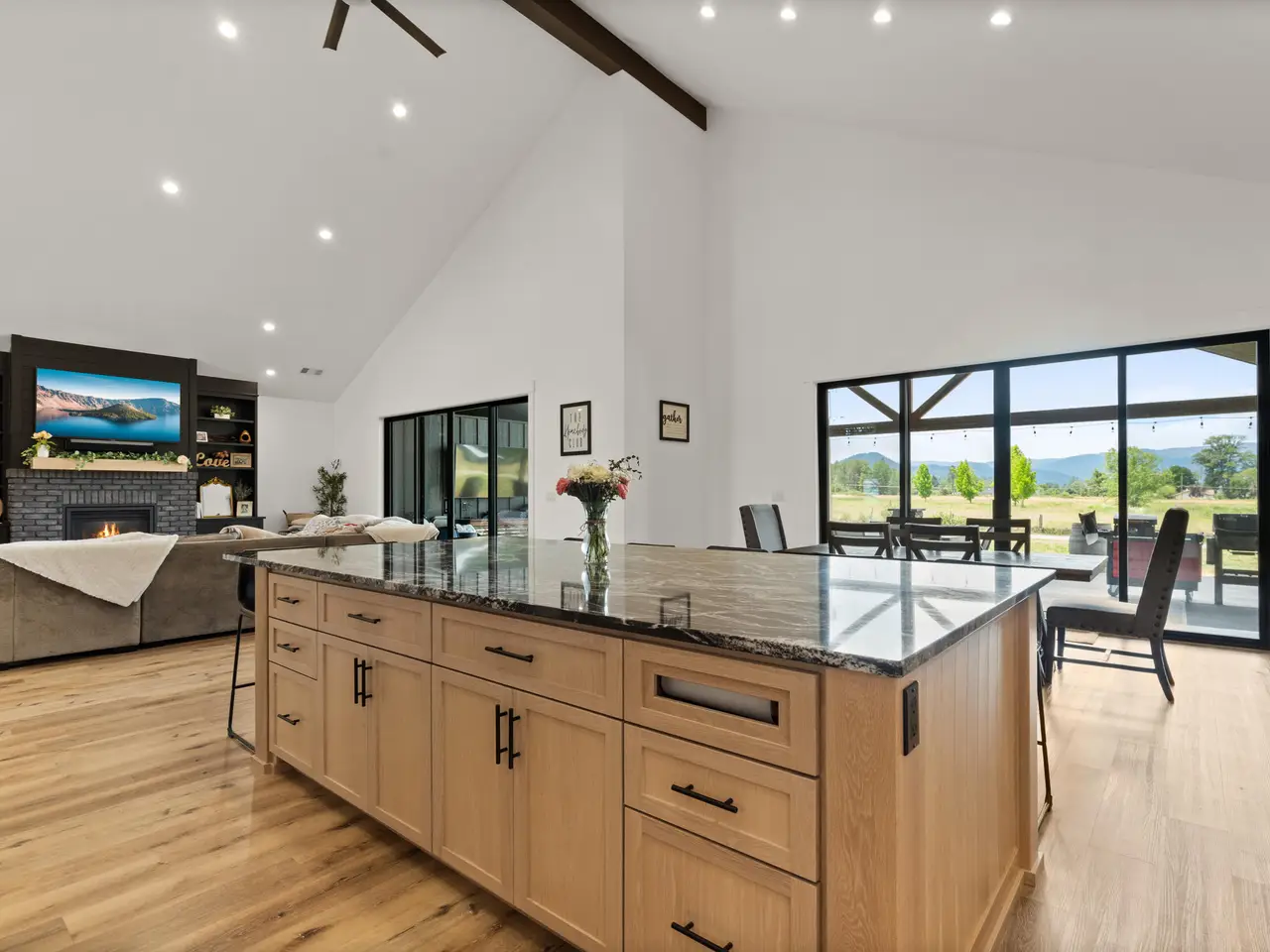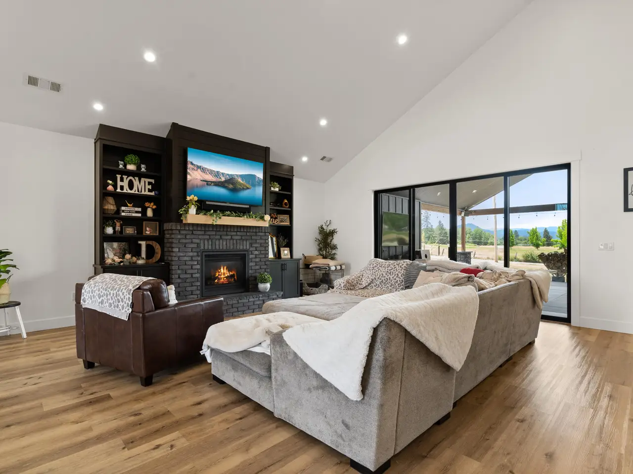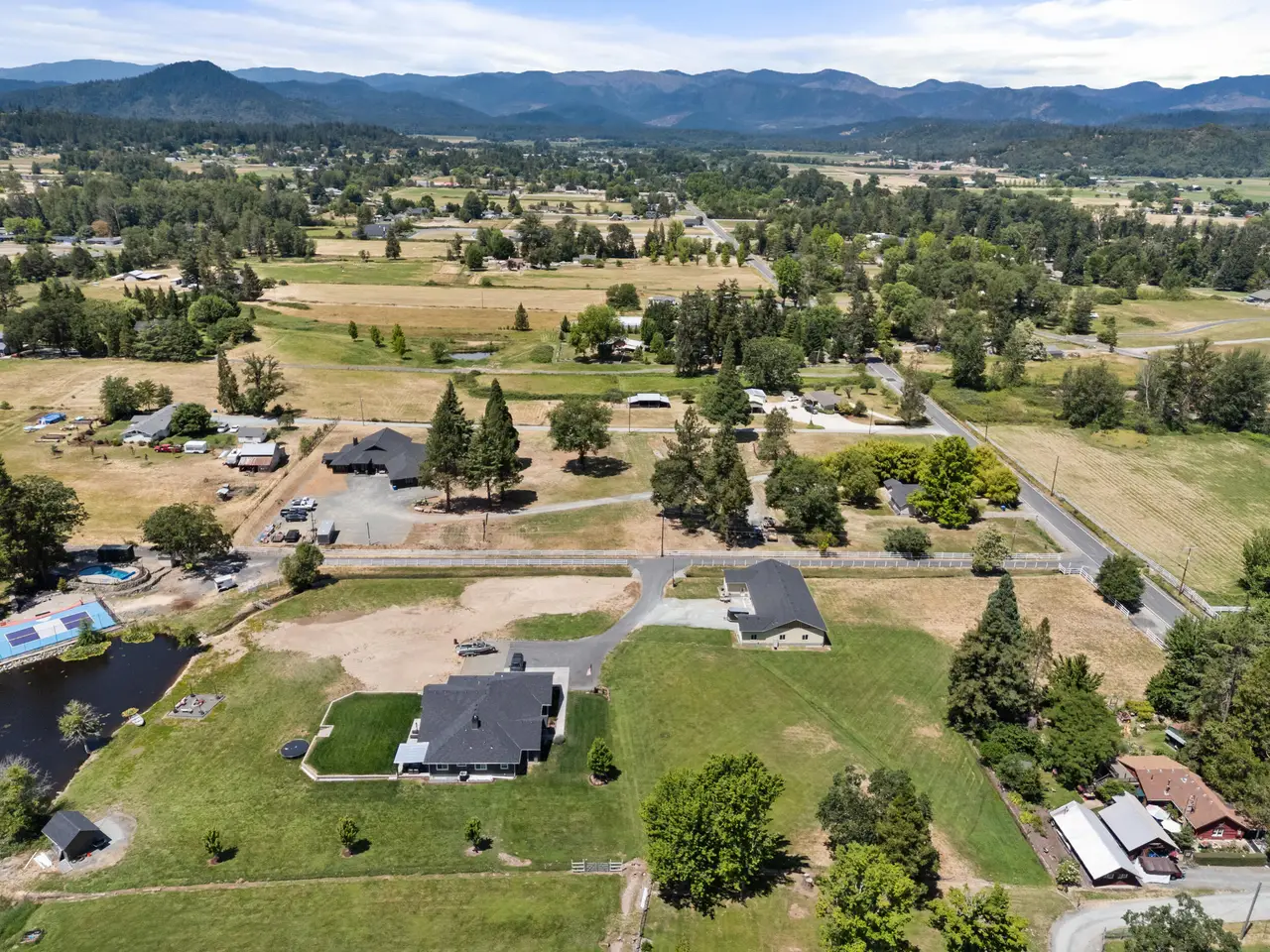 Welcome to 3487 Leonard Rd--a stunning custom-built estate finished in 2024, offering nearly 3,200 sq ft of luxury living on just under 4 usable acres. This thoughtfully designed home features three spacious en suite bedrooms, ideal for multi-generational living or hosting guests in comfort. The grand entry welcomes you with soaring vaulted ceilings and an open floor plan that seamlessly blends elegance and functionality. The gourmet kitchen is a chef's dream with a large island, premium finishes, and ample space for entertaining. Enjoy over 1,500 sq ft of covered patio, perfect for year-round outdoor living and taking in the serene surroundings. A three-car garage provides plenty of storage for vehicles and toys. Don't miss this rare combination of style, space, and modern craftsmanship just minutes from the heart of Grants Pass.