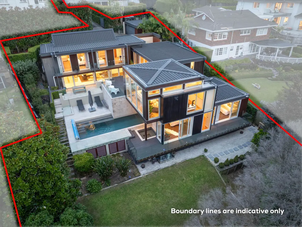 Welcome to one of Remuera’s most prestigious addresses—Arney Road, where this exceptional residence offers a rare blend of architectural pedigree, refined living, and expansive grounds. Designed by the award-winning Newman Smith and Associates, and reimagined under the expert eye of Russell Cannon Architecture, this luxurious estate unfolds over an impressive 1205sqm of land and boasts approx. 408sqm of interior living. Originally built in the 1960s and exquisitely renovated to today’s standards, the home exudes a graceful harmony of mid-century character and contemporary design excellence. The result is a sanctuary of light, warmth, and understated grandeur. From the moment you step through the door, there’s a sense of calm sophistication. Solid timber ceilings and walls of glass dissolve the boundary between indoors and out, where the north-facing entertaining terrace, heated swimming pool, spa, and fully equipped pool house invite year-round enjoyment. Every detail speaks of quality, from the rich materiality of natural finishes to the home’s warm, tactile ambiance. Inside, space unfolds with generosity and grace. Upstairs features three expansive bedrooms, including a master suite with walk-in wardrobe, elegant ensuite, and private balcony overlooking treetops and city lights. Two further bathrooms, each with underfloor heating, complete this level. Downstairs, two more bedroom suites open to a shared balcony, while a large laundry and separate storage room offer practicality without compromise. Thoughtfully future-proofed, the home includes fibre internet, a built-in video and music system, underfloor heating in all bathrooms, and central heating throughout. Every space is intentional. Every finish is considered. And every view, especially at sunset, is unforgettable. This residence celebrates scale, serenity, and sophistication. Zoned for Auckland Grammar and Epsom Girls Grammar and moments from leading private schools, this home is not just a place to live, but a statement of success. Arney Road awaits. CV $7,900,000 (2024).