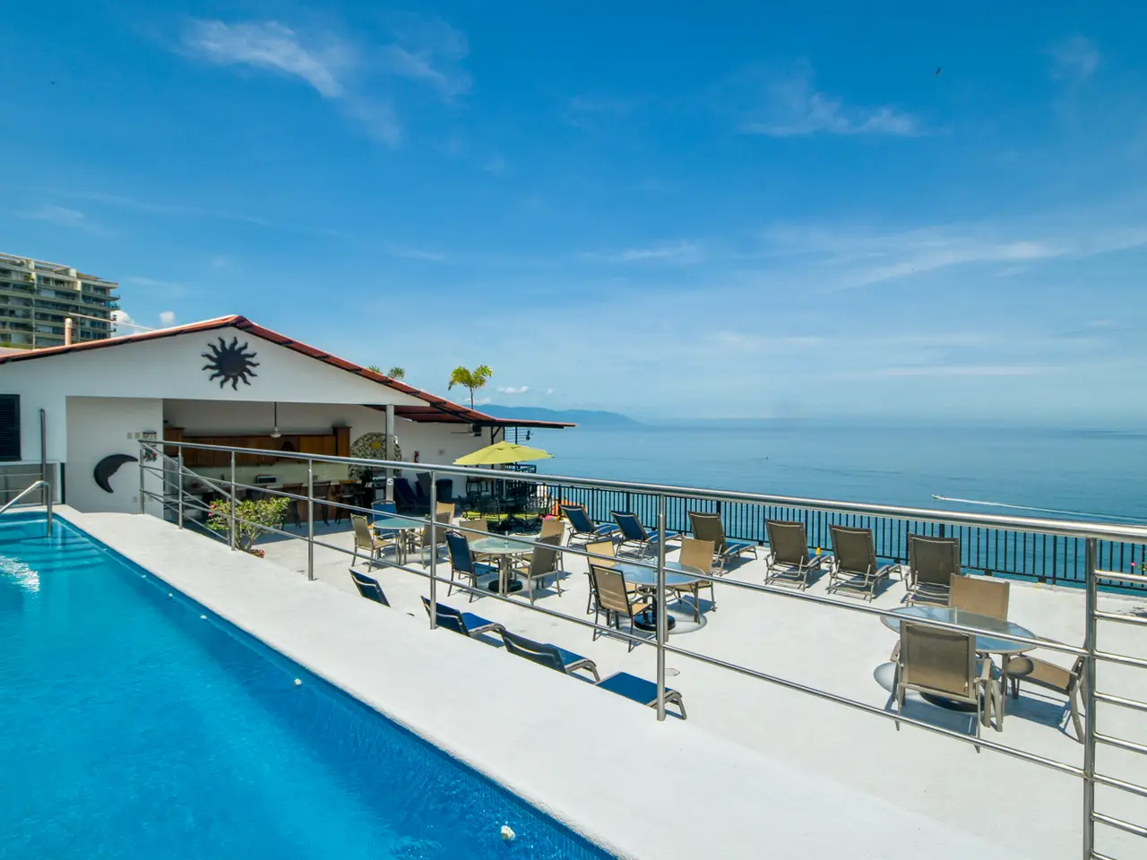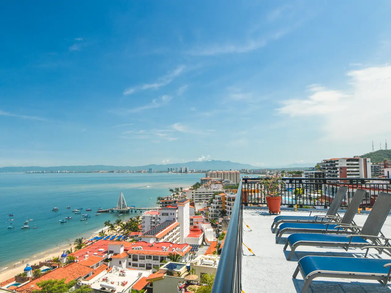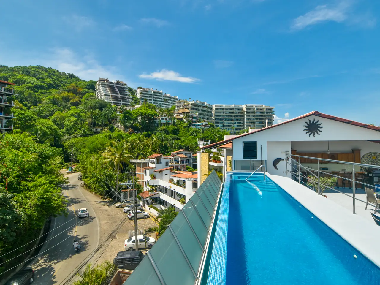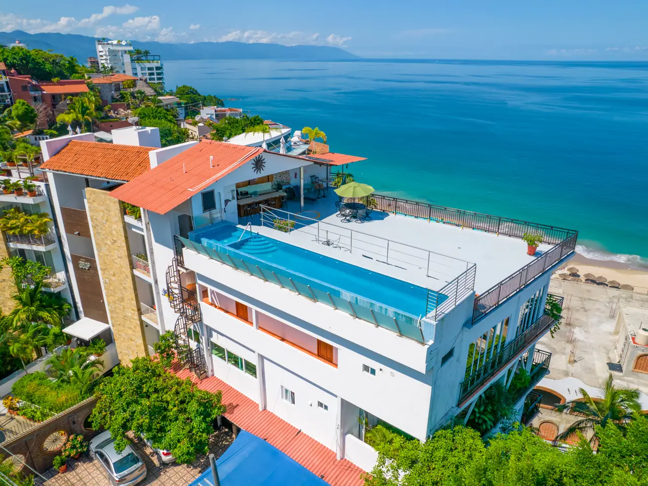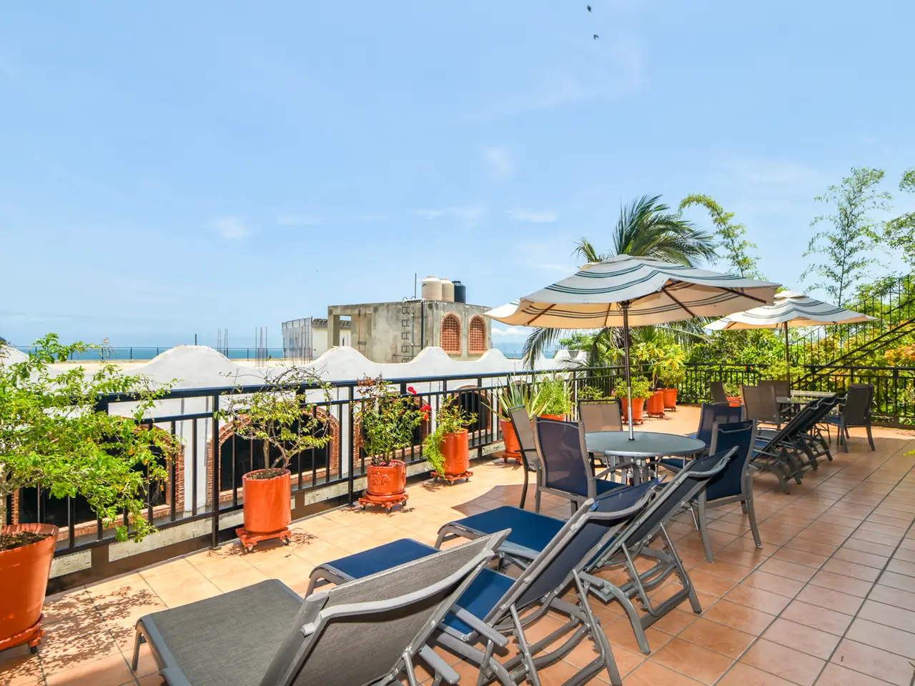 Villa Olivia is an investor’s dream on the Southside of the Romantic Zone ready to be turned into a boutique hotel, B&B; corporate retreat or a family building with income suites. It comprises 22 large studios, 2-2 bedroom apartments; a large 2 bedroom Penthouse; rooftop terrace with pool, bar area and covered sitting spaces; large kitchen breakfast/dining area; reading lounge; professional laundry; gym; sauna and additional sundeck terrace. Gated upper parking. A block away from Playa Los Muertos and Blue Chairs.