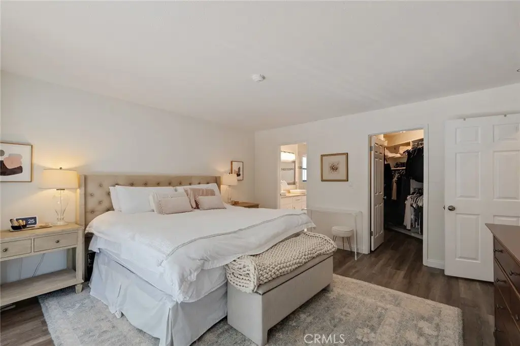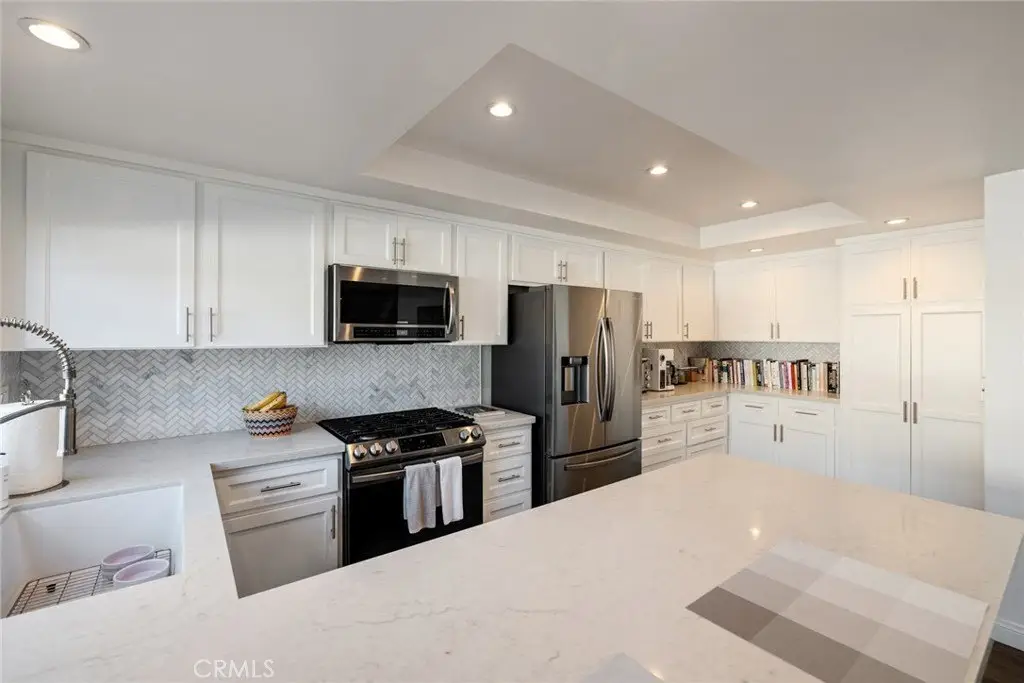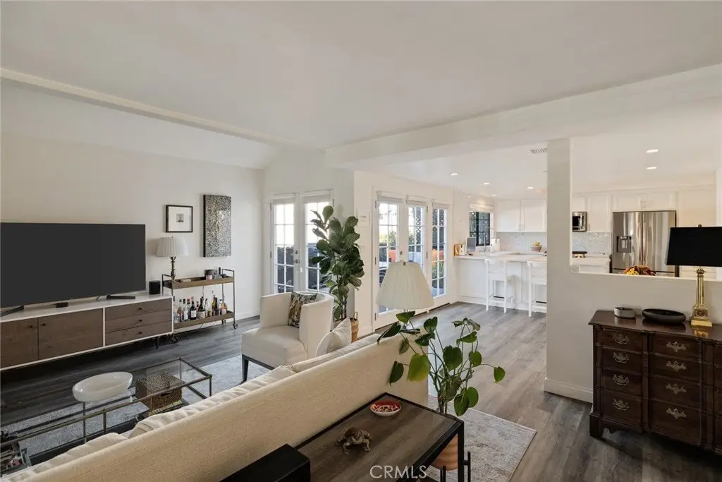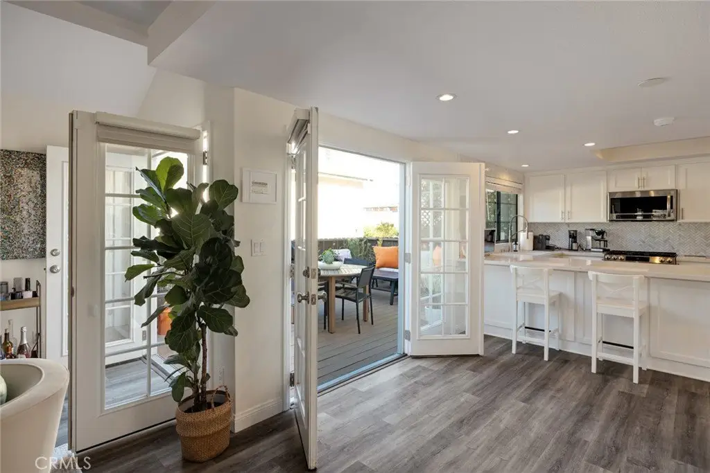 FULLY FURNISHED home for sale! Welcome to this bright and airy 3 bedroom/3-bathroom home that boasts 1900 square feet of comfortable living space, is West of PCH & a very short walk to the beach, pier, strand, restaurants, shopping, nightlife and comes fully furnished! What a package!! Just pack your bags and move right in! The main floor features a large and gorgeous fully remodeled kitchen with quartz countertops; quartz sink and Samsung appliances. Loaded with tons of cupboard space and a pantry. The super cozy living room comes equipped with a corner fireplace, beautiful waterproof oak-style flooring and a comfortably sized powder room. Upstairs you will find 2 bedrooms, each with their own en-suite bathrooms and vaulted ceilings. The primary bedroom has a walkout balcony and dual sinks in the bathroom. On the lowest level you will find an additional large bedroom which could also be used as a home office, home gym or a playroom for children! The home has direct garage access as well!