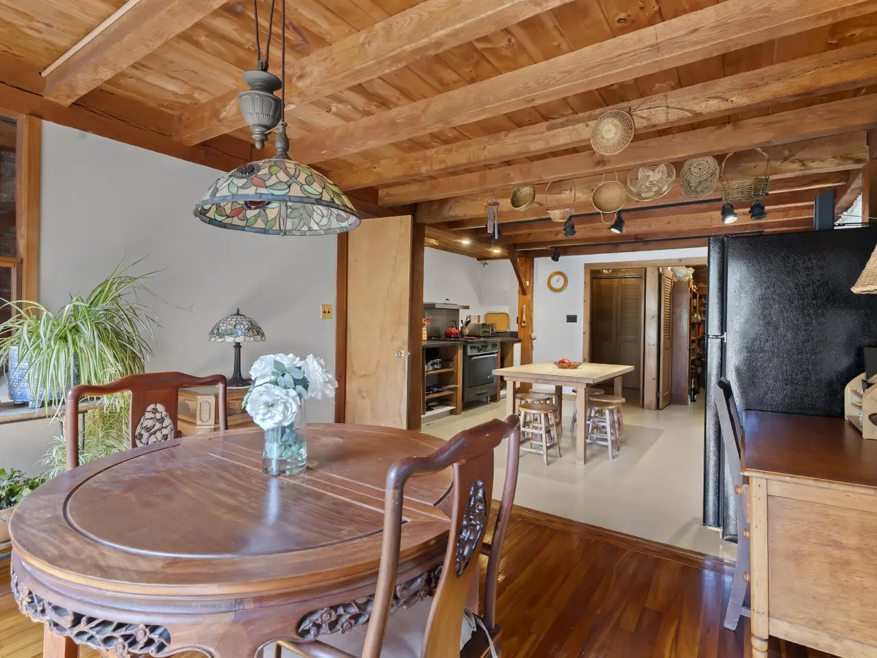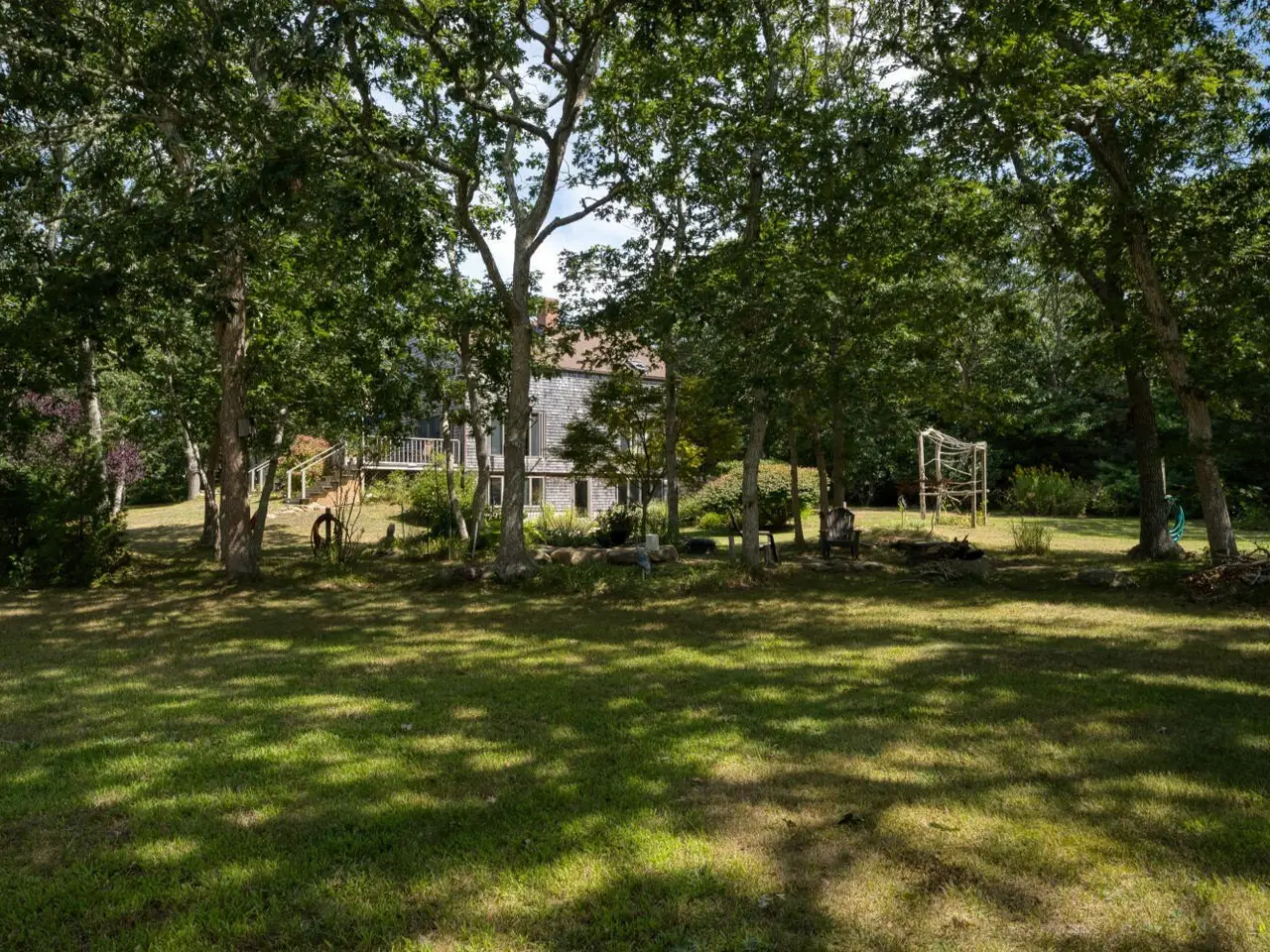 Tucked away behind association common land, this year-round compound offers the perfect blend of privacy, space, and flexibility. The post-and-beam main house features four bedrooms and combines timeless character with functional design, ideal for everyday living or seasonal enjoyment. A separate two-bedroom guest house with a welcoming farmer's porch is thoughtfully sited to ensure privacy and independence, complete with its own driveway and parking. The detached garage, with a loft above, adds even more versatility-ideal for storage or future finished space. Situated on one of the largest parcels in the Smith Hollow Association, the property enjoys a tranquil, park-like setting. With direct access to the bike path at the end of the road, you're just minutes from Edgartown and all down-island amenities. More than just a house-this is a place to call home.