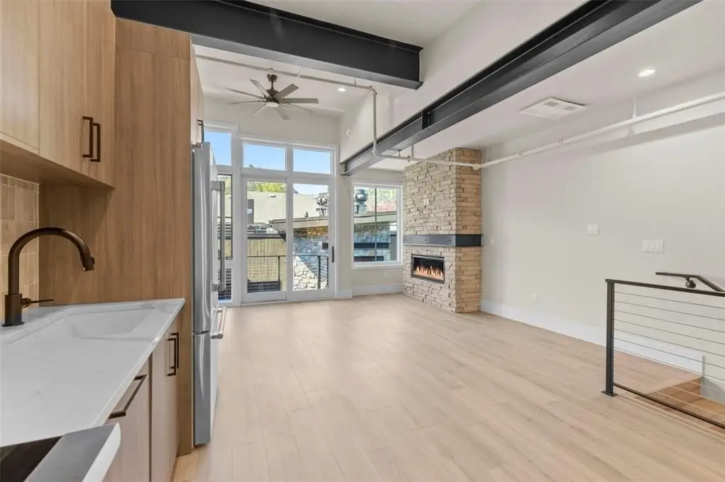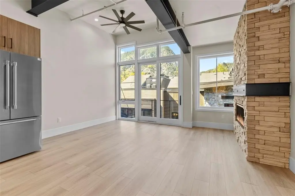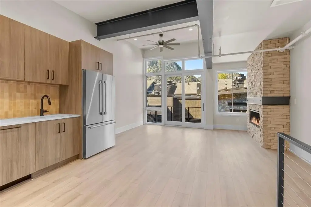 Experience urban mountain living with sweeping views from Buffalo Mountain to Peak 1. from the balcony of this one-bedroom residence. Features include a Thermador kitchen, powder room, full bath, and laundry. Parking includes one covered space and a heated gear garage. This Main Street condo is centrally located in Prospectors Marketplace. The marketplace combines local eateries including Crepes A La Carte, Back to Texas BBQ, Fresh Press’d, Kanto x Wasabi, Chucky’s Burgers, Chimayo Grill, Lazo Empanadas and Groovy’s Mac n’ Cheese with McCoy’s Bar on the lower-level location and another bar on the upper-level complete with arcade games and a rooftop patio. The marketplace is tastefully designed and inspired by the rich mining history of Summit County. Just steps away, enjoy all that Main Street has to offer including shops, additional dining, casual bars and bus stops, with easy access to Copper, Vail, and the rest of Summit County.