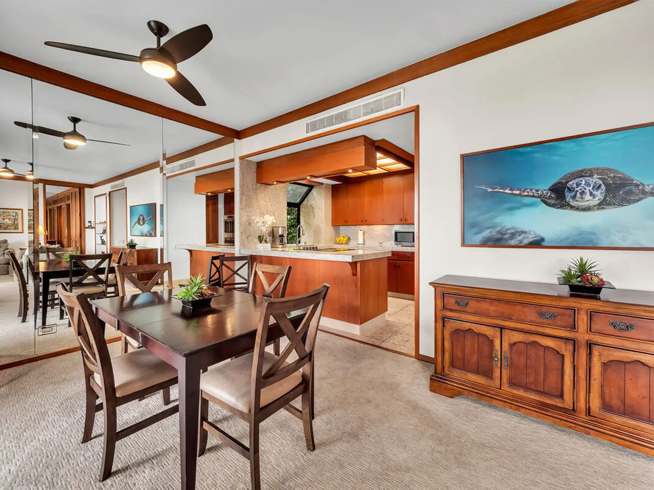 FABULOUS LISTING PRICE AND A MOTIVATED SELLER FOR A QUICK OFFER/QUICK CLOSE DUE TO A 1031 TIMELINE! Discover outstanding value in Mauna Lani Terrace Unit D201, a smartly upgraded corner residence that offers stunning views of the ocean, coastline, sunsets and ancient Hawaiian fishponds. Featuring 1,407 square feet of interior space and an additional 330 square feet of lanai, this luxury residence delivers generous living areas and seamless indoor–outdoor flow—perfect for both investment renters and lifestyle owners. Both bedroom suites are spacious with granite counters, tiled walk-in showers and private lanais; the primary suite with ocean vistas, and the guest suite lanai framed by lush tropical foliage. From the 9-foot Mahogany shutters, teak cabinetry, Mahogany trim, granite and quartz countertops to the concrete construction that provides for exceptional soundproofing and privacy, D201 offers refined comfort and an idyllic luxury lifestyle. Timelessly designed, beautifully built and nearly oceanfront, D201 is perfectly situated between the newly renovated Auberge Hotel and the Mauna Lani Beach Club. Whether you want to bike, walk or drive your golf cart, you are close to shopping, dining, championship golf, and stunning white sand beaches that boast some of the best snorkeling on the Big Island. Mauna Lani Terrace Amenities include peaceful walking paths, a newly renovated community pool area, with a large heated pool, kiddie pool, Jacuzzi, and sauna as well as a community kitchen, gas BBQ grills and a picnic area. Investment-ready with STVR - D201 boasts a stellar 9.8/10 rating from their VRBO reviews. It comes fully furnished, equipped with beach gear, and is turnkey-ready for either personal enjoyment or income generation. With a motivated seller navigating a 1031 exchange timeline, this unit is thoughtfully priced for a quick close. No need for staging or upgrades—you can move in, rent out, or enjoy the lifestyle from day one.