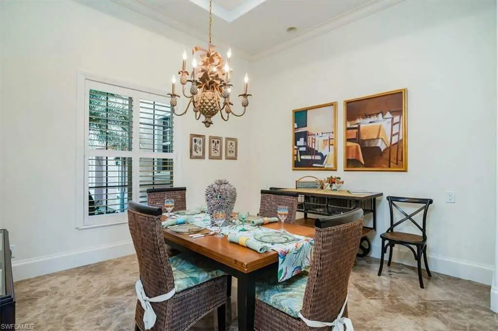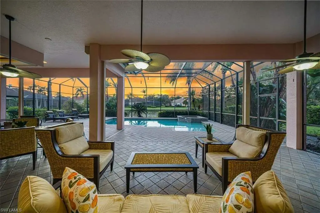 Nestled behind the gates of the prestigious Vineyards Country Club, this custom-built residence is a rare gem that showcases exceptional craftsmanship, thoughtful design, and a host of luxury upgrades that set it apart. December 2023 NEW ROOF!! Nestled behind the gates of the prestigious Vineyards Country Club, this custom-built residence is a rare gem that showcases exceptional craftsmanship, thoughtful design, and a host of luxury upgrades that set it apart. Designed by a discerning builder for personal use, the home offers numerous high-end extras not commonly found, including soaring ceilings that create a grand sense of space and scale, extensive custom millwork, and refined architectural details throughout. From the moment you arrive, the curb appeal is striking-with a stately governor's paver driveway, side-entry 3-car garage, and lush, mature landscaping enhanced by fresh mulch, all situated on a quiet, oversized cul-de-sac lot offering unmatched privacy and picturesque lake views. Inside, the elegant marble-floored foyer opens to a gracious living room with coffered ceilings and seamless flow to the expansive screened lanai, ideal for indoor-outdoor living. The home's layout is both functional and inviting, with formal and casual dining areas, an updated white kitchen with solid-surface countertops, a breakfast bar, and a glass-enclosed breakfast room bathed in natural light. The oversized family room and outdoor summer kitchen make entertaining effortless. Each guest suite is a private retreat, with luxury vinyl "wood look" flooring, custom double closets, and individual bath access that have been remodeled and updated. The owner's wing is a sanctuary, offering two walk-in closets, lanai access, and a spa-inspired bathroom with a walk-through shower and dual vanities. An additional flexible space serves as a fourth bedroom or office, and the third garage bay has been transformed into an air-conditioned bonus room, ideal as a game room, gym, or "mancave." A prime location within one of Naples' most established and amenity-rich communities, this residence is the perfect blend of elegance, comfort, and thoughtful upgrades.