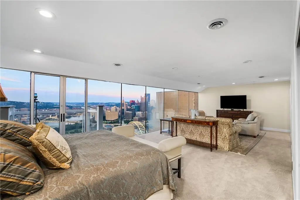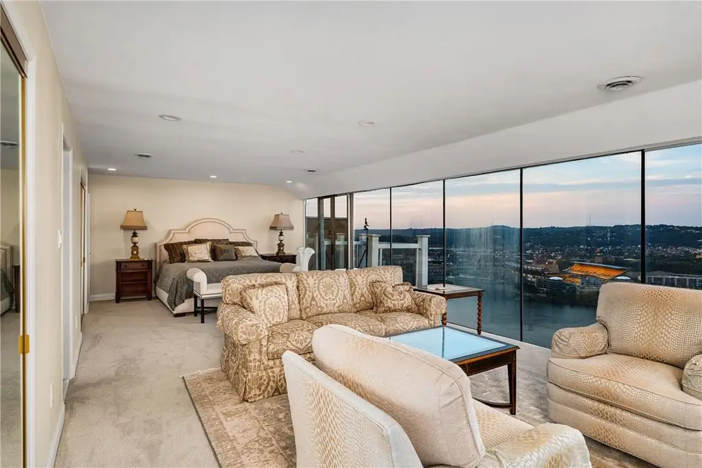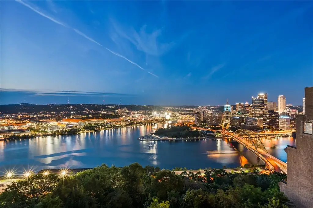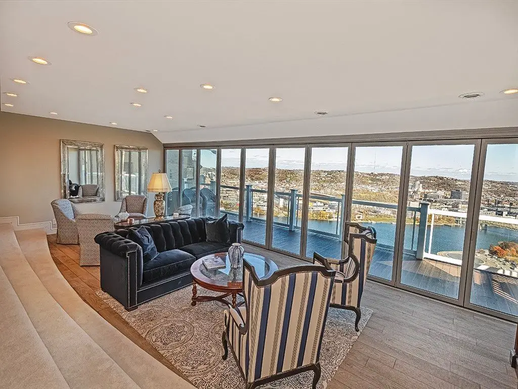 Experience luxury living in this stunning Mt. Washington condominium offering panoramic views of Pittsburgh's skyline, rivers, and stadiums. This spacious home features a sunken living room with floor-to-ceiling windows and balcony access, perfect for soaking in the cityscape. The open dining area flows into a fully equipped, step-saver kitchen. With three generously sized bedrooms - including a captive room ideal for a home office - and a luxurious primary suite with spa-like ensuite and private balcony, comfort meets elegance throughout. Enjoy the convenience of second-level laundry and an oversized car garage. Located just steps from the Incline, restaurants, and entertainment, this home offers a rare blend of peace, style, and city access. Wake up every day to million-dollar views and vacation-like living. Don't miss your chance to own this exceptional property on Grandview Avenue!