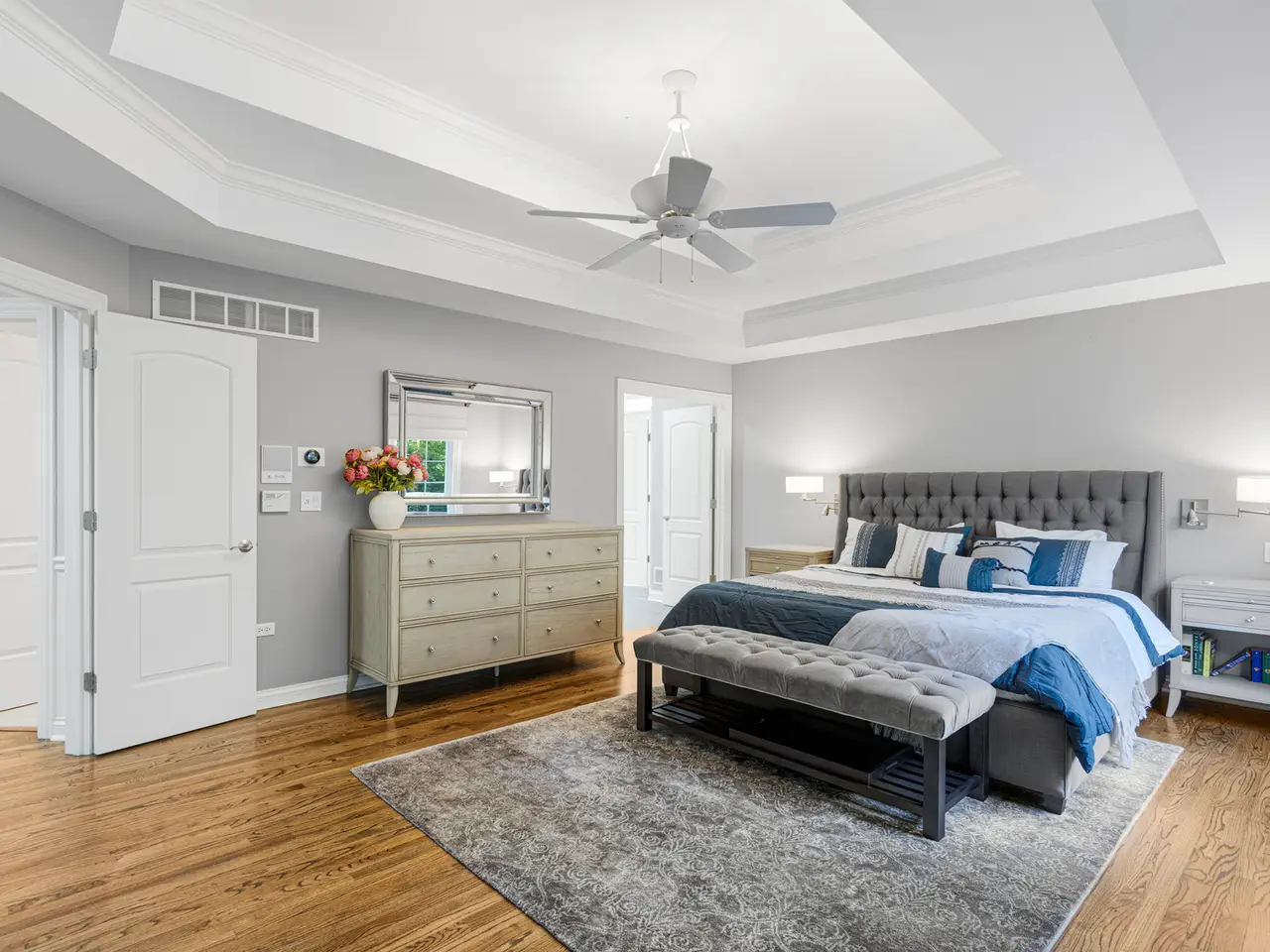 Welcome to this luxurious, stunning home that epitomizes elegance and comfort. Featuring five spacious bedrooms with four full baths and two half baths, this home has it all. A very large two-story foyer. Two sets of stairs going up to the second level—one from the foyer and another from the family room. Separate formal dining with butler pantry. Master suite with sitting area and a balcony, also boasts a huge bathroom with luxury porcelain and marble tiles, double sink vanity, oversized bathtub, and a very large walk-in closet. All bathrooms updated with quartz countertops. The guest bedroom includes its own private bath with a walk-in closet. It has a large finished basement with huge recreational area, the gym, wet bar, bathroom. The home features hardwood floors throughout, four fireplaces, updated kitchen, a bright sunroom cum informal dining area. Enjoy the excellent backyard with fire pit—perfect for relaxation and entertainment. A brand new roof. Top-rated Naperville schools. Excellent location near downtown Naperville, restaurants. Home is truly a gem. Agent is related to the seller.