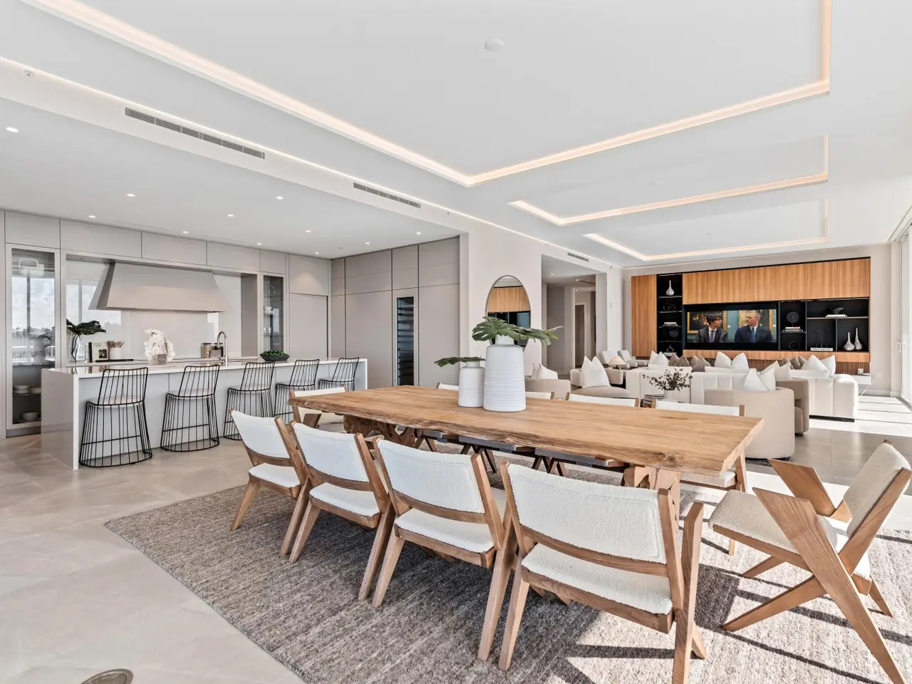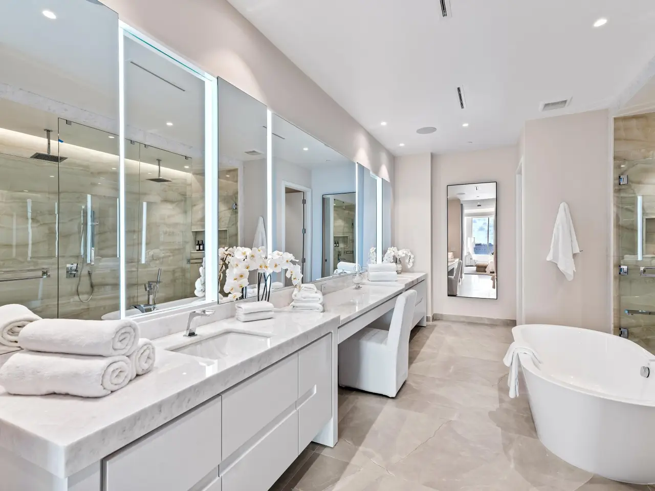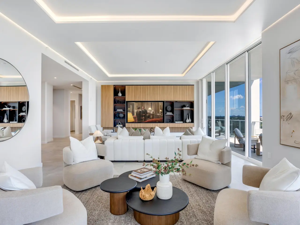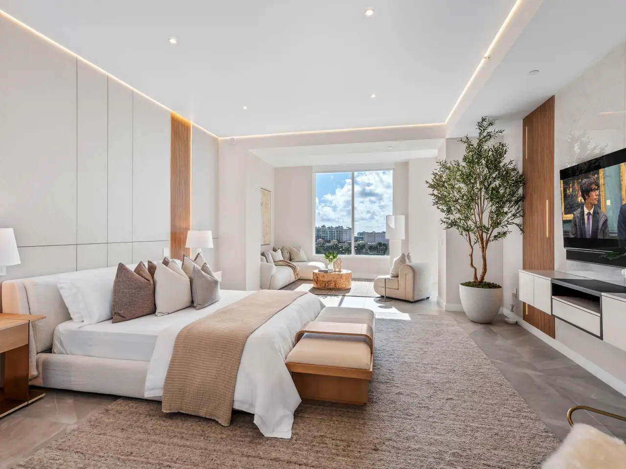 220 South East Mizner Boulevard, Boca Raton, Florida. Ideally situated in the heart of downtown Boca Raton, Alina 220 stands as a landmark of contemporary sophistication overlooking the posh Boca Raton Resort's verdant green fairways and the azure ocean beyond. Created by one of New York's most renowned developers, this nine-story architectural masterpiece encompasses 152 exclusive private residences surrounded by 8.5 acres of lush, artfully landscaped grounds.Residents enjoy immediate access to the city's most desirable destinations: Royal Palm Place, Mizner Park, fine dining, upscale galleries, and couture boutiques, only steps away. The resort-style amenities include an elegant lobby, elite-performance fitness center, club and game rooms, private yoga studio, ... continued ... Occupying the uppermost floor of Alina 220, this brand-new, fully custom finished southeast-corner Penthouse represents the pinnacle of modern Boca Raton living. Spanning 5,151± total square feet, the three-bedroom, split-plan residence combines dramatic architectural volume with ultra-luxury appointments throughout. Expansive walls of floor-to-ceiling glass capture panoramic breathtaking views of The Boca Raton Resort’s emerald fairways and the azure Atlantic Ocean, seamlessly invite the captivating, serene vistas of the natural surroundings infused into the interior living spaces. The expansive great room, encompassing living, dining, and media areas, is bathed in natural light and framed by 11-foot± tray ceilings with concealed recessed linear lighting, creating a sense of airy grandeur. Adjacent to the light infused great room, a tailored den with tailored cabinetry and wet bar complements the designer European-style kitchen, a true showpiece featuring a cascading-edge island, custom cabinetry, porcelain countertops, Gaggenau appliances, and a spacious walk-in pantry. The primary suite serves as a private sanctuary, offering dual walk-in closets, a private sitting room, and a spa-inspired marble bath with freestanding soaking tub, dual vanities, large glass-enclosed multi-head shower, and two water closets — all oriented toward sweeping views of the golf course, skyline, and ocean. Two additional guest suites provide equally stunning vistas. Additional features include a powder room, laundry room, summer kitchen, two garage spaces, private elevator access, Savant Smart Home automation, premium Samsung TVs, Lutron lighting, and a full security system.
