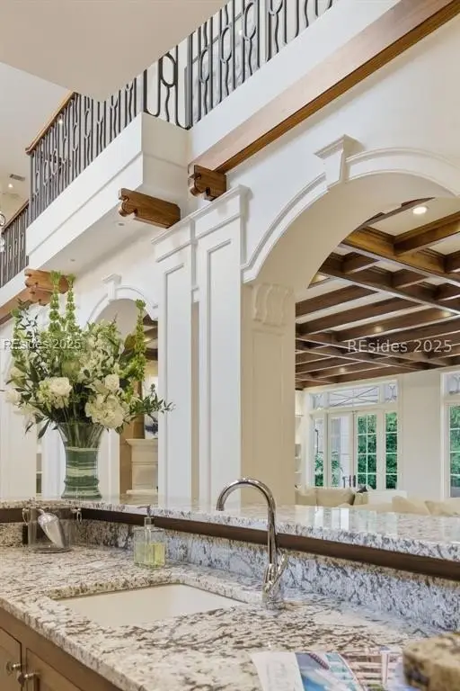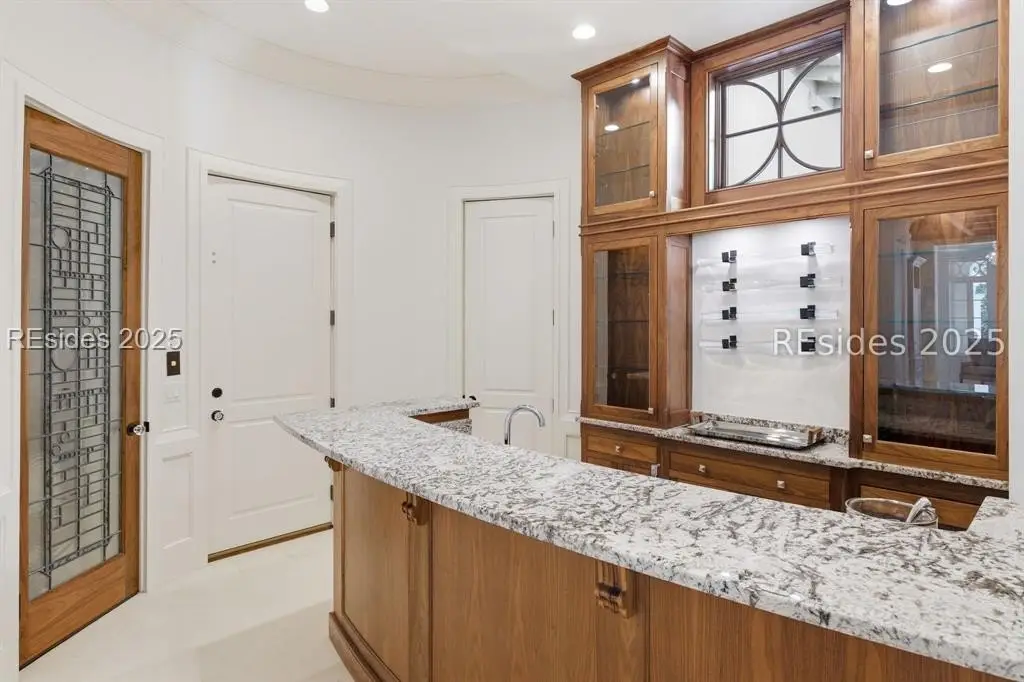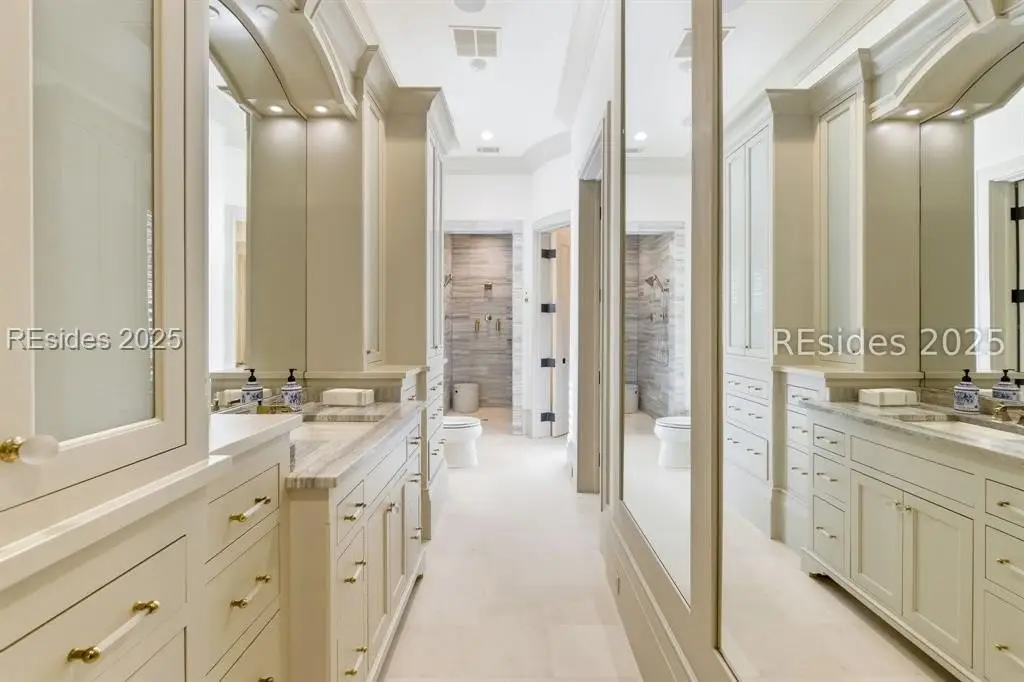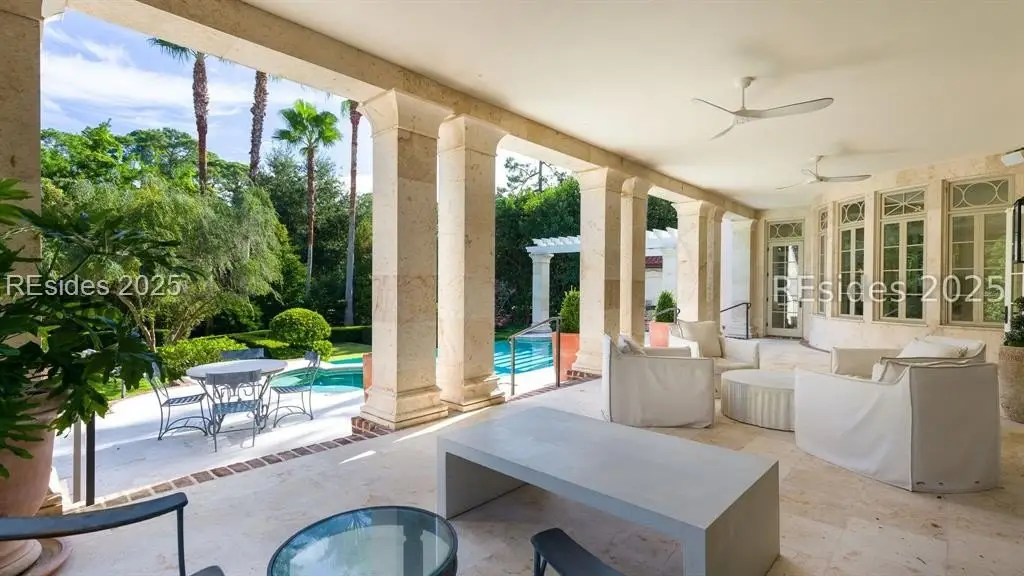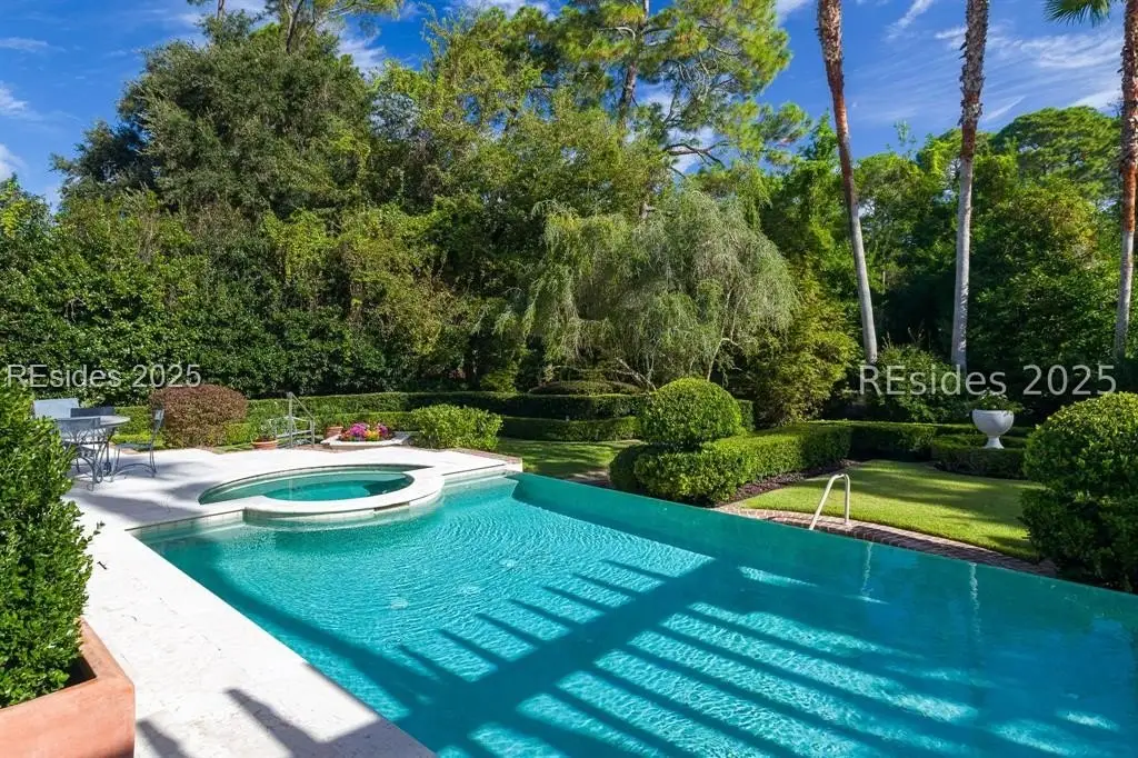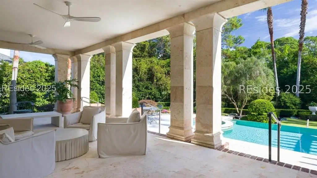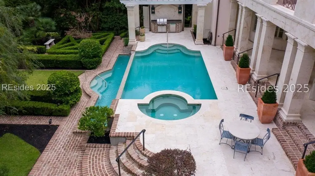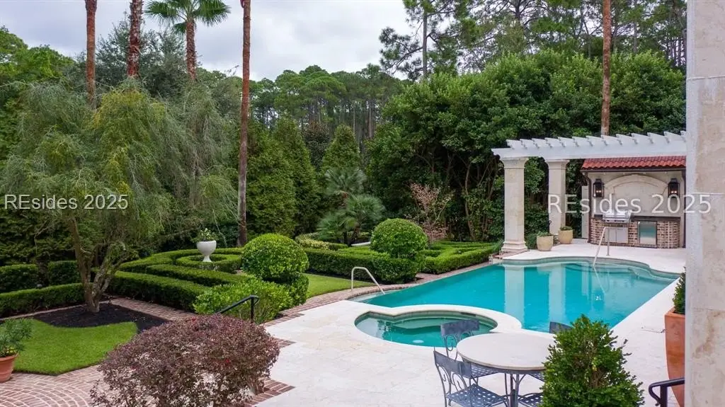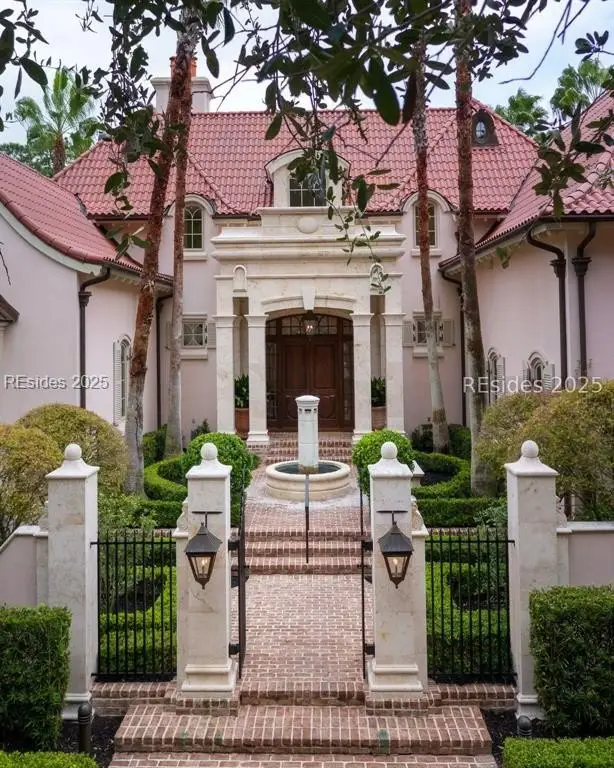 15 Harrogate Drive presents a rare opportunity to own a 6,828-square-foot masterpiece in the heart of Wexford. Built with concrete and steel framing, finished in stucco and stone with a terracotta tile roof, this residence showcases extraordinary construction quality and timeless design. Inside, the open living space, complete with a grand fireplace, flows seamlessly into the chefs kitchen with a butlers pantry, a well-equipped granite-topped bar, and dedicated wine closet. Elegant travertine and hardwood floors, exquisite millwork, designer lighting, and refined details elevate every corner. The main-level primary suite is a true sanctuary, featuring stunning suede wallpaper, a striking gas fireplace, lanai access, a sitting area, dual baths with multiple showers and water closets, a soaking tub, a private laundry, and separate walk-in closets. Upstairs, three generously sized en-suite bedrooms offer space and privacy. One includes a sitting area, oversized bath, and an extra-large seasonal closet, and two enjoy direct access to the upper deck. A morning kitchen, full second-floor laundry room, and a 4-stop elevator add everyday convenience. The three-car garage, with direct elevator access, ensures effortless movement across all levels. Outdoor living is equally remarkable, with a picturesque English garden and a private pool setting the stage for refined Lowcountry living. A covered lanai, pool bath, and grilling station complete this unmatched entertaining space.Custom, high-end furniture by Seasons Interior Designs is also available for purchase outside the sale, offering a turnkey opportunity to enjoy this homes beauty immediately.As a Wexford resident, youll enjoy premier amenities including a private marina, championship golf, tennis, pickleball, croquet, clubhouse dining, community firepit, and a resort-style pool complex. Even more exciting, a newly expanded Clubhouse and brand-new Harbour Center are under construction, with completion expected in April 2026 - further elevating Wexfords reputation as Hilton Heads most distinguished private community.15 Harrogate Drive is stunning inside and out - an exceptional Wexford residence where extraordinary design meets world-class amenities.