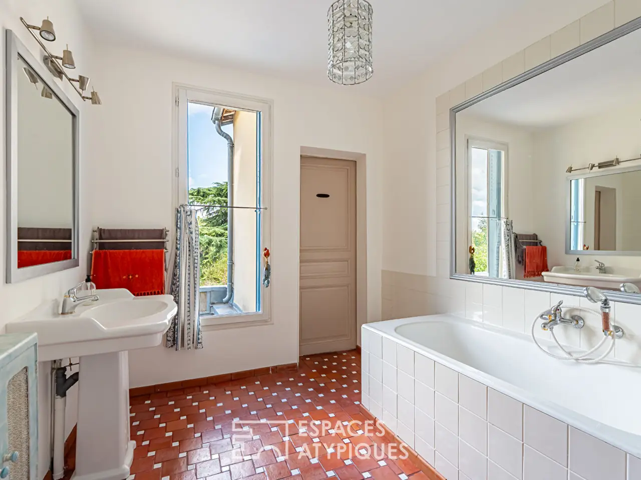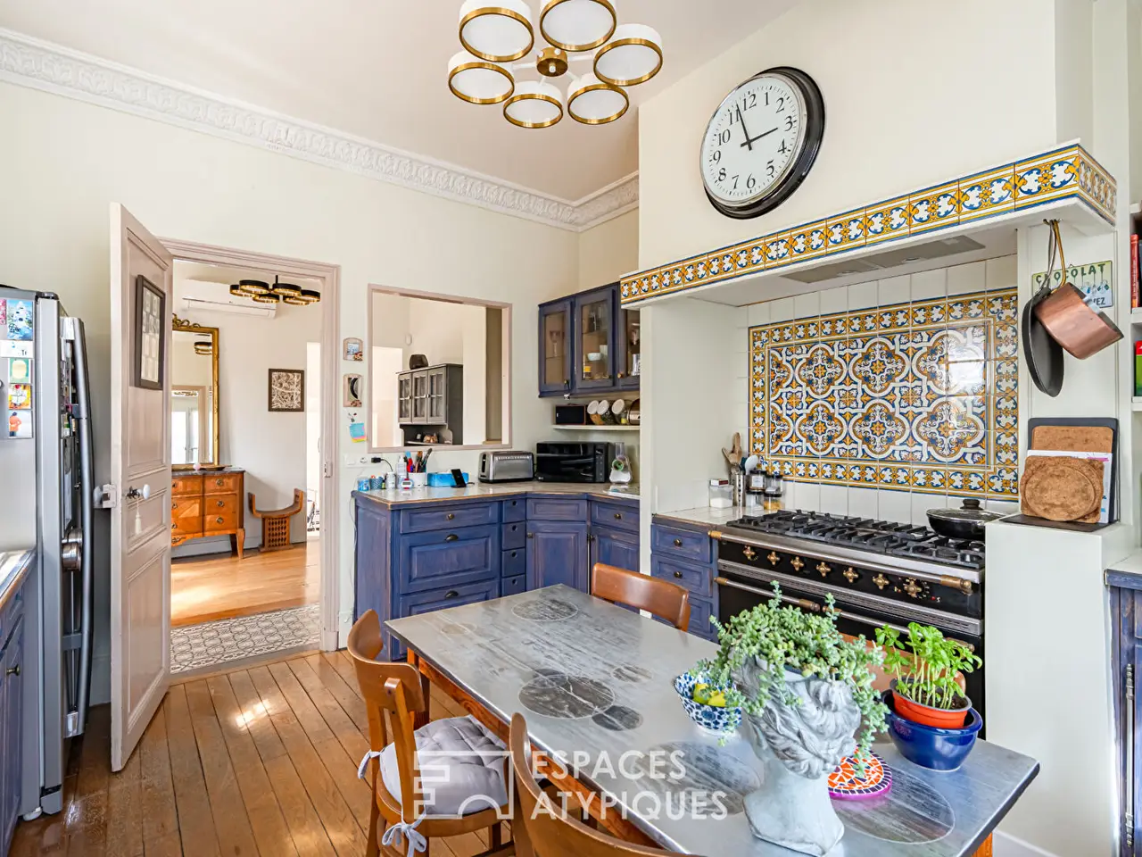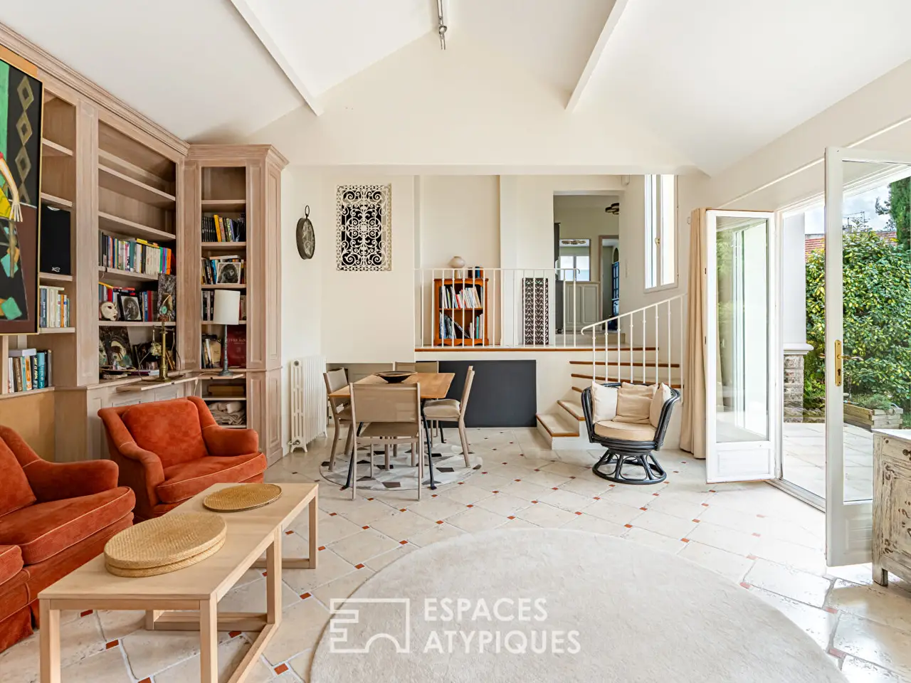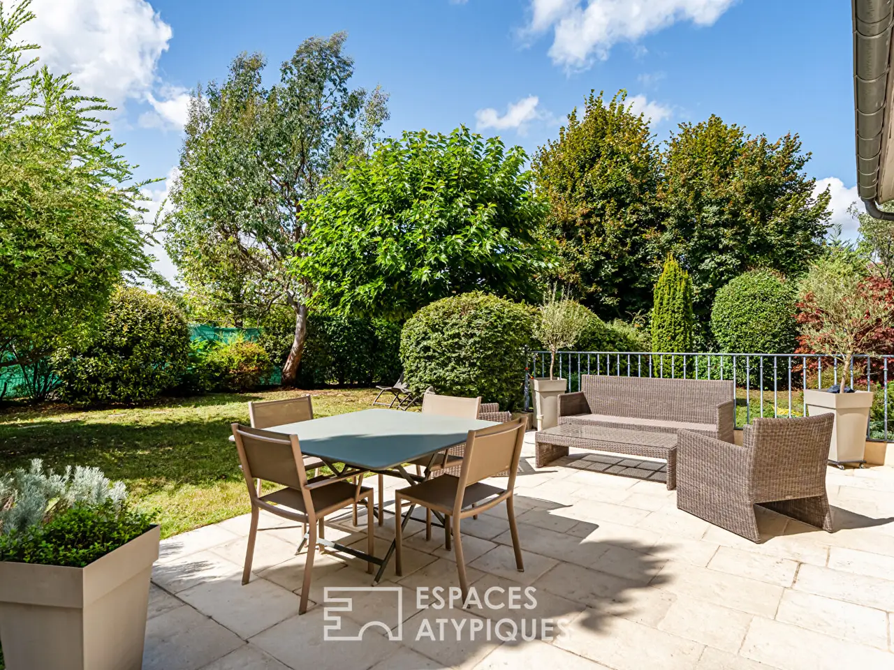 In a sought-after area, hidden from view, this pretty bourgeois house has benefited from a beautiful extension that opens onto a 722 sqm garden, enclosed and quiet. After a flight of steps, the wide entrance, decorated with cement tiles and old parquet flooring, offers a charming independent kitchen with triple exposure, then continuously, a 17 sqm bedroom which benefits from a shower room. The reception room of 44 sqm bathed in light, decorated with its fireplace, opens onto a large terrace surrounded by its garden beautifully arranged with flowers and shrubs subtly shaded. The lower level has a generous bedroom/workshop of 44 sqm facing its private terrace. This beautiful volume can easily be organized into a suite with its bathroom or into an office for an independent profession, with its exterior access. The first floor is organized around the landing which distributes three pretty bedrooms of 11, 12 and 17 sqm which share a bathroom. The last floor consists of a landing which leads to a large bedroom with storage of 23 sqm, an office and an attic games room of 18 sqm. Finally, the basement includes a boiler room, cellar and two storage rooms. The garden allows two above-ground parking spaces (electric terminal). A rare property, combining character, comfort and prime location, in a calm and green environment, in the immediate vicinity of many amenities. ENERGY CLASS: E / CLIMATE CLASS: E. Estimated average amount of annual energy expenditure for standard use, established from 2021 energy prices: between EUR5,040 and EUR6,880 Nursery and elementary schools 3 and 5 min walk away. N 13, A14 5 min by car, Tram 13 9 min on foot, International High School 9 min on foot, REF. 12700 Additional information * 8 rooms * 6 bedrooms * 1 bathroom * 1 bathroom * Outdoor space : 722 SQM * Parking : 2 parking spaces * Property tax : 3 294 € Energy Performance Certificate Primary energy consumption e : 278 kWh/m2.year High performance housing
