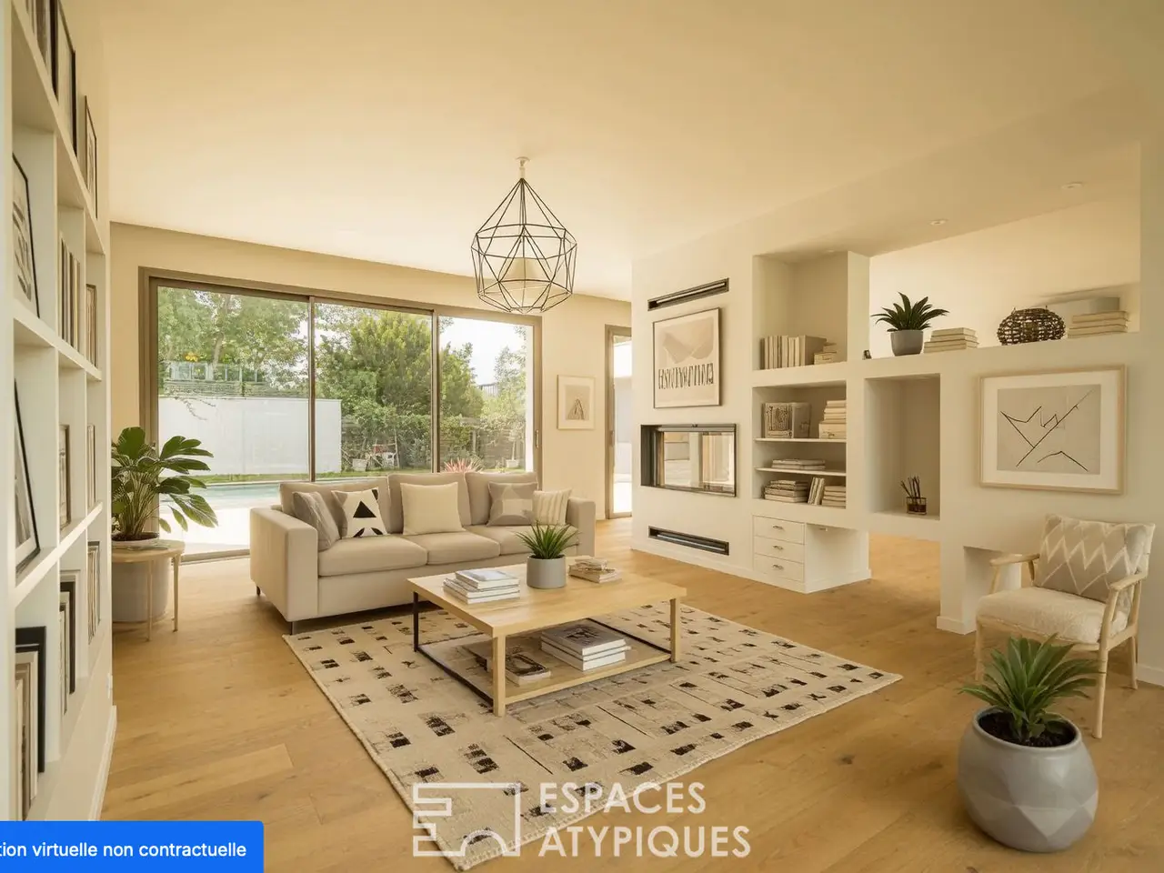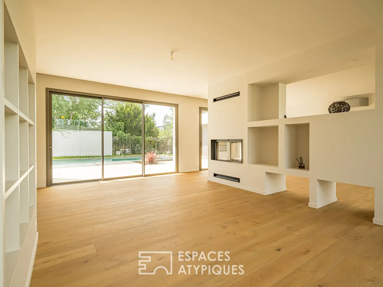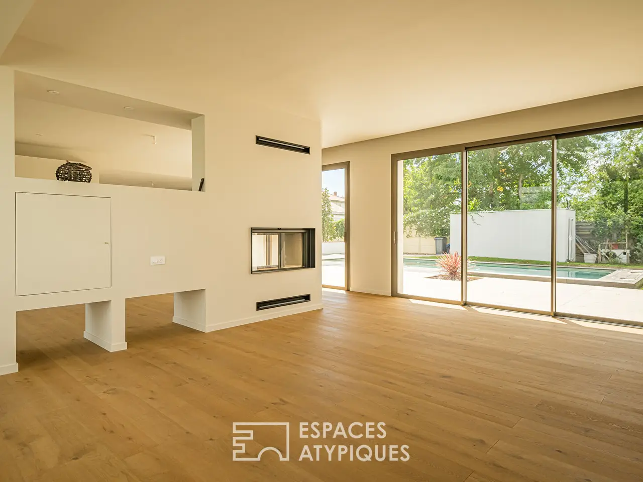 This sumptuous architect-designed house from 2024, perfectly new and designed to combine comfort, aesthetics and energy performance, sits on a beautiful plot of over 1,200 sqm. It offers 226 sqm on one level and benefits from a double garage as well as several parking spaces on the plot. Upon entering, a vast vestibule with adjoining laundry room welcomes you, extended by an office space. The fully equipped high-end kitchen, with its central island and adjoining pantry, opens onto an exceptional double living room. The latter, bathed in light thanks to its large bay windows, offers a warm atmosphere enhanced by a central fireplace and direct access to the terrace and the heated swimming pool. The night area offers three comfortable bedrooms with dressing room, bathroom and shower room, as well as a spacious master suite with separate dressing room and shower room with double shower. In terms of amenities, nothing has been left to chance: high-end materials, oak parquet flooring with underfloor heating in the living area, new generation carpets in the bedrooms, not to mention an A/A DPE, guaranteeing an ultra-efficient and energy-efficient house. A rare and exclusive property, designed for elegant and serene family life. ENERGY CLASS: A/ CLIMATE CLASS: A. Estimated average amount of annual energy expenditure for standard use, established from 2021 energy prices: between 580 and 840 euros. Alison Gaudicheau (EI) Commercial Agent: 06 84 57 11 59 / RSAC number: 832 220 636 Bordeaux. REF. BORDEAUX-2157EABX Additional information * 5 rooms * 4 bedrooms * 1 bathroom * 2 shower rooms * Outdoor space : 1200 SQM * Parking : 4 parking spaces * Property tax : 2 600 € Energy Performance Certificate Primary energy consumption a : 31 kWh/m2.year High performance housing