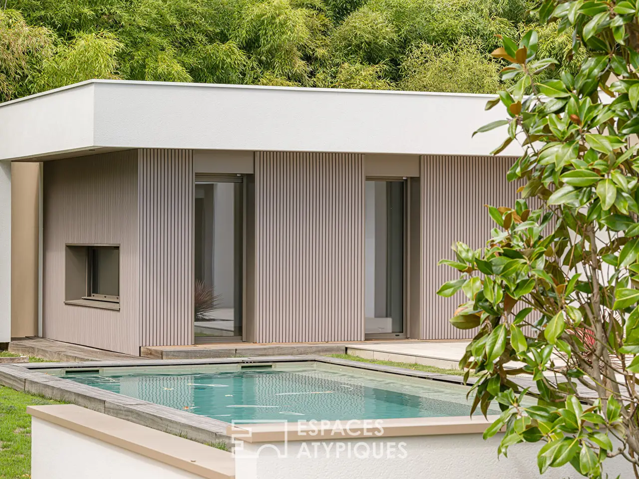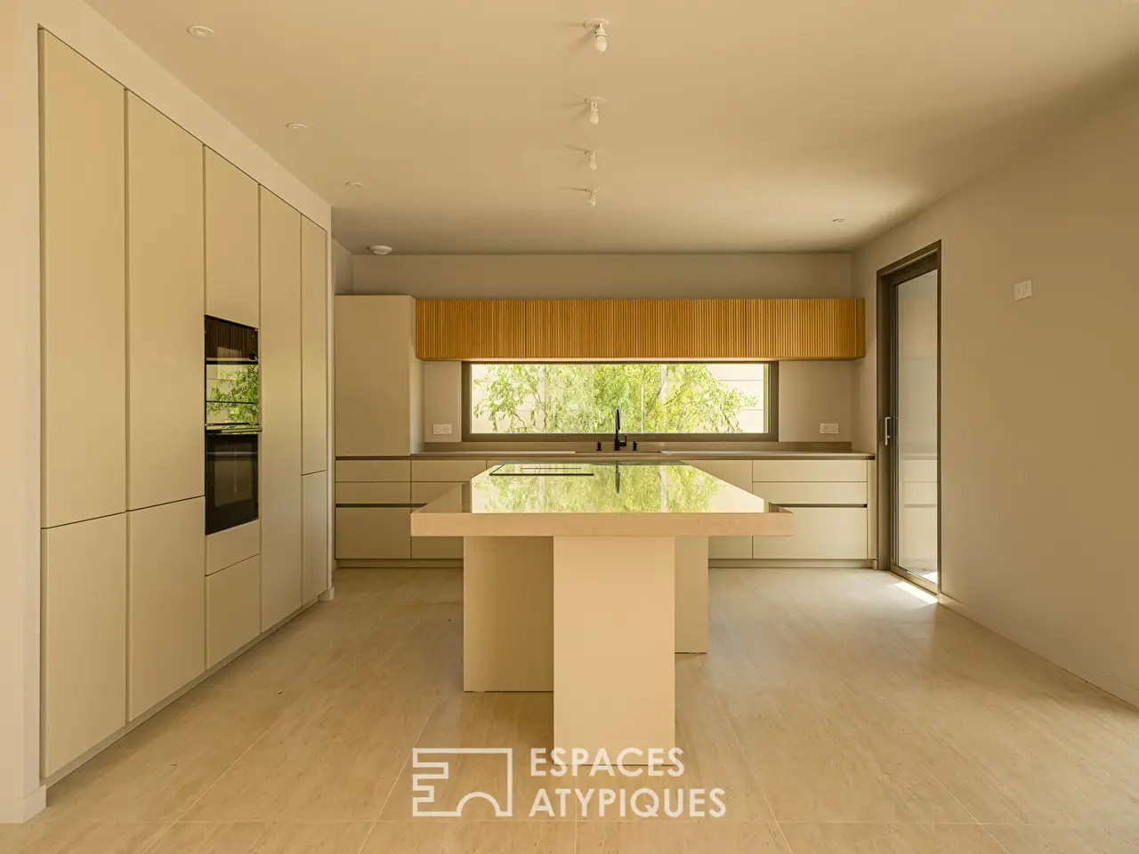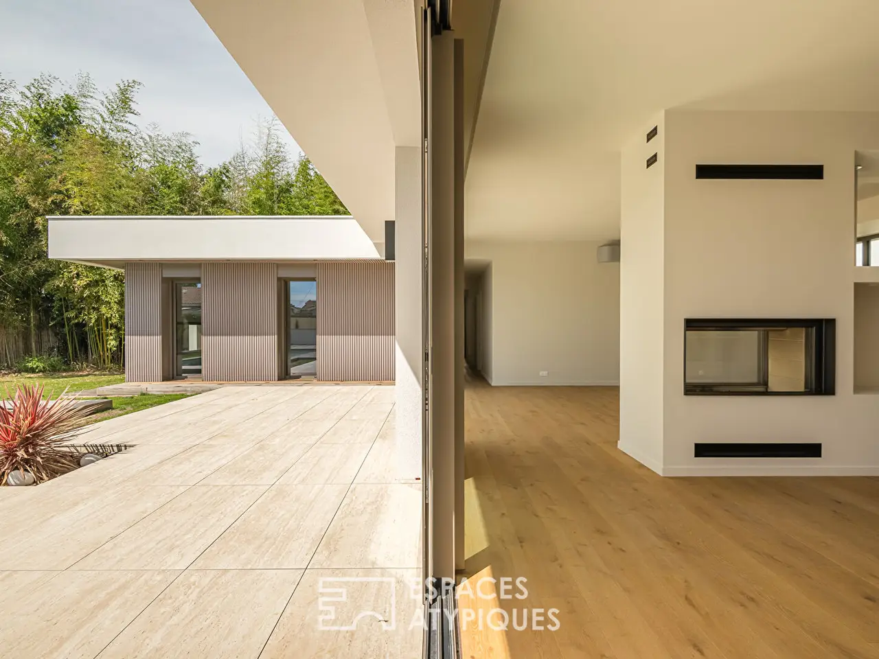 This sumptuous architect-designed house from 2024, perfectly new and designed to combine comfort, aesthetics and energy performance, sits on a beautiful plot of over 1,200 sqm. It offers 226 sqm on one level and benefits from a double garage as well as several parking spaces on the plot. Upon entering, a vast vestibule with adjoining laundry room welcomes you, extended by an office space. The fully equipped high-end kitchen, with its central island and adjoining pantry, opens onto an exceptional double living room. The latter, bathed in light thanks to its large bay windows, offers a warm atmosphere enhanced by a central fireplace and direct access to the terrace and the heated swimming pool. The night area offers three comfortable bedrooms with dressing room, bathroom and shower room, as well as a spacious master suite with separate dressing room and shower room with double shower. In terms of amenities, nothing has been left to chance: high-end materials, oak parquet flooring with underfloor heating in the living area, new generation carpets in the bedrooms, not to mention an A/A DPE, guaranteeing an ultra-efficient and energy-efficient house. A rare and exclusive property, designed for elegant and serene family life. ENERGY CLASS: A/ CLIMATE CLASS: A. Estimated average amount of annual energy expenditure for standard use, established from 2021 energy prices: between 580 and 840 euros. Alison Gaudicheau (EI) Commercial Agent: 06 84 57 11 59 / RSAC number: 832 220 636 Bordeaux. REF. BORDEAUX-2157EABX Additional information * 5 rooms * 4 bedrooms * 1 bathroom * 2 shower rooms * Outdoor space : 1200 SQM * Parking : 4 parking spaces * Property tax : 2 600 € Energy Performance Certificate Primary energy consumption a : 31 kWh/m2.year High performance housing