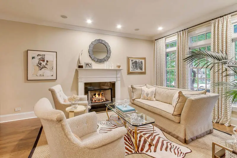 Beautifully maintained 5-bedroom, 3.1 bathroom, 4,000 sq ft home in the heart of Roscoe Village and within the desirable Audubon School District! Thoughtfully designed for both elegant living and effortless entertaining, this residence features a bright interior with abundant natural light-even in the lower level-and a seamless layout that enhances everyday functionality. A sophisticated formal dining room sets the tone for gatherings, offering an elevated space for hosting with style. The chef's kitchen is appointed with high-end finishes, custom cabinetry, granite countertops and backsplash, large island, and premium Viking appliances, while the adjacent great room showcases a custom built-in bookcase and designer lighting. Rich white oak flooring with espresso finish carries throughout the home, complemented by custom drapery, Hunter Douglas blinds, and upgraded energy-efficient can lighting. The serene primary suite offers a true retreat with a spa-inspired en suite bath, featuring double vanity, and a luxurious shower and soaking elements designed for relaxation. Enjoy zoned comfort with Nest thermostats and a Control4 sound system throughout the home. The lower level impresses with radiant heat potential, a Vinotemp 182-bottle wine cellar, guest suite, and flexible recreation space ideal for work or extended-stay living. Exceptional outdoor living includes a professionally built rooftop Trex deck with cedar pergola over the 2-car detached heated, finished garage with epoxy-sealed floor and custom storage panels, a gas-line-connected grill, and a paved backyard oasis. Recent updates include freshly repainted iron gate, fencing, and stair railings (Sept 2025), plus newer dishwasher (2017), washer/dryer (2018), and garbage disposal (2025). With walkable access to Roscoe Village's beloved restaurants, boutiques, coffee shops, and community amenities, this home delivers an unmatched lifestyle in one of the city's most charming neighborhoods. A rare opportunity for turnkey luxury just moments from parks, schools, and all the vibrancy of Roscoe Village living!