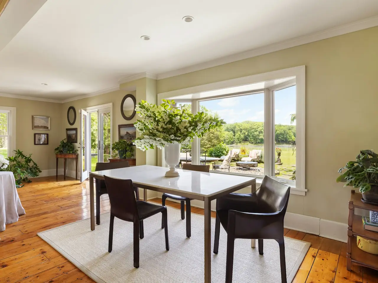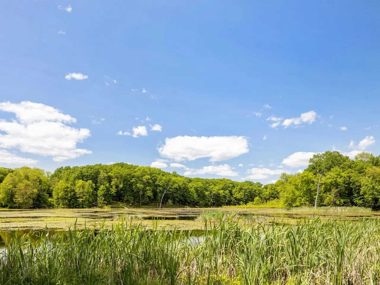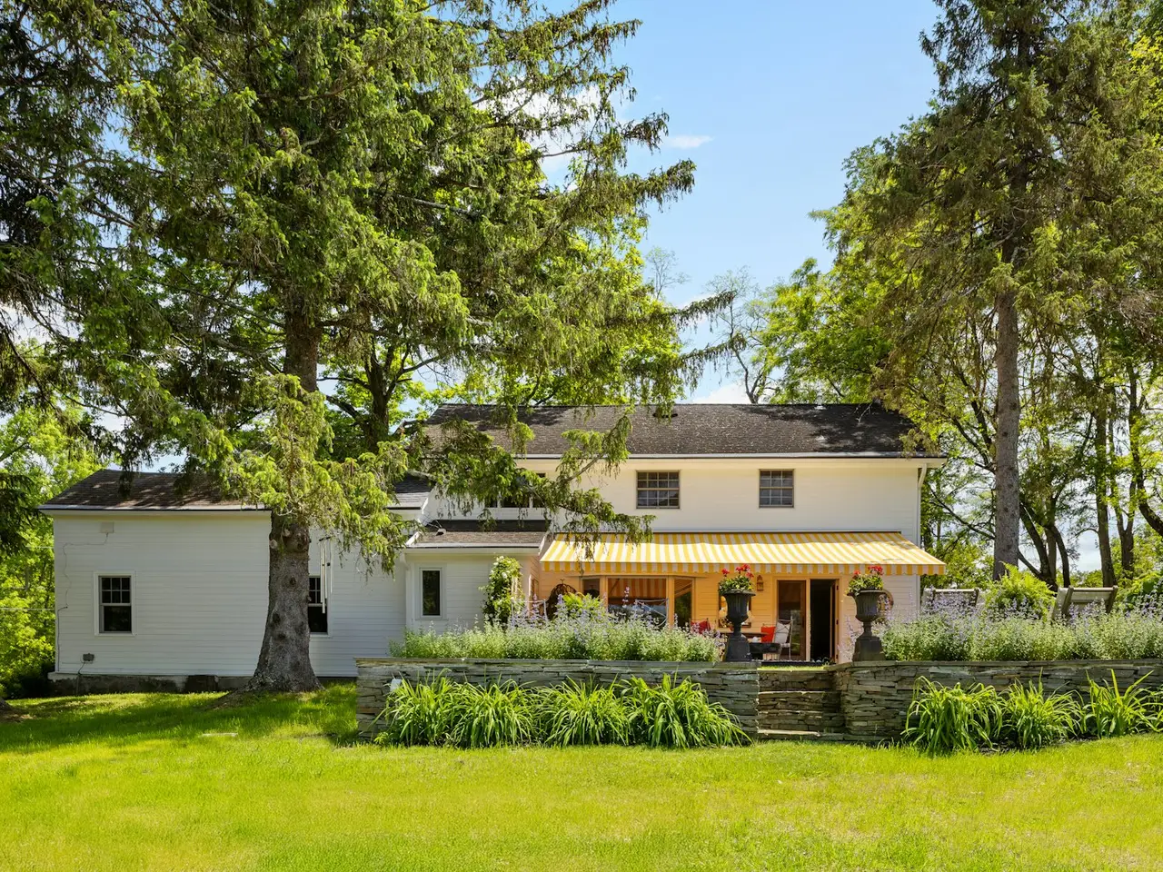 Hawkskill is a rare offering- a quintessential Hudson Valley farmhouse set far back off a country road amidst 40 serene acres and accessed by a long private tree lined driveway. In the front of the house, which stands on a rise framed out by stately trees, a bubbling brook winds its way through a meadow and off towards the Roeliff Jansen Kill. At the back of the house a large flagstone terrace -with lovely established plantings and millstone fountain- leads towards a gentle sloping lawn revealing an expansive and magical view out over a romantic eight acre private lake. The lake, meadows, stream and surrounding woods are rich with wildlife from turkey to deer, heron, owls and water birds of all kinds not to mention turtles, fish and the occasional fox sighting. Hawkskill is referred to as a Livingston tenant house, one of four in the area built by the Livingston family in 1859 as gifts to some of their more valued tenant farmers. The English Crown granted a large patent of land to Robert Livingston in 1684. This land grant became known as Livingston Manor and made the family the controlling manorial family in southern Columbia County for generations. By the mid-19th century when Hawkskill was built, the manor system was fading after tenant revolts and American expansionism westward, making a handsome home on a large tract of land an appropriate gift to a valued worker. The heart of the original home remains, with a welcoming front porch, center hall construction, lovely new paned windows to let the light stream in and beautiful wide plank pine floor boards. Upstairs are three sun filled bedrooms and two bathrooms renovated in a classic style. Downstairs the living room, with a wood burning fireplace and French doors out to the terrace, opens into a dining area that flows into the open plan country kitchen- making for a wonderful entertaining floor. A recent renovation to the ground floor addition is lined with windows and boasts a soaring cathedral ceiling with architectural wood beams, built in bookcases and media center, plus a third full bathroom. This space is currently used as a library/den but could certainly serve as a fourth, ground floor bedroom as well. A secret door off of the dining room leads to a large, full basement with an ample ceiling height and housing the updated systems for the house that includes central air conditioning throughout. Additionally there is an original barn structure, which has been updated to create a three bay garage with electronically controlled doors downstairs and a stair built to the second floor, providing additional storage or the space to create a charming guesthouse. Hawkskill is a peaceful retreat surrounded by rolling farmland and open spaces. The property is just minutes away from all that is on offer in neighboring Red Hook, Tivoli or Germantown, and equidistant to the trains at Hudson or Rhinebeck for easy access in and out of Manhattan.