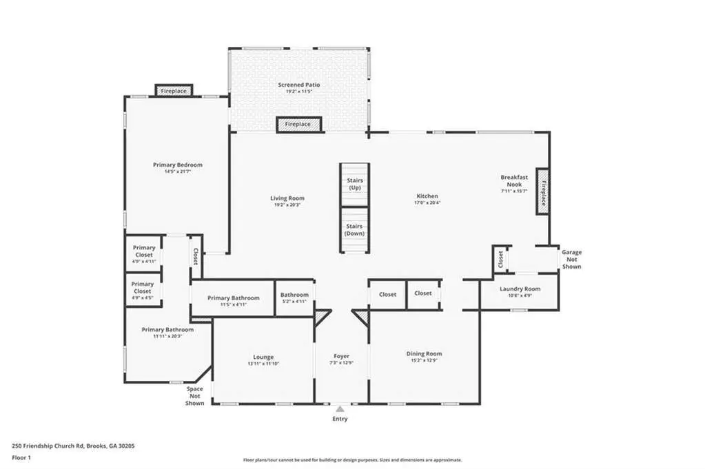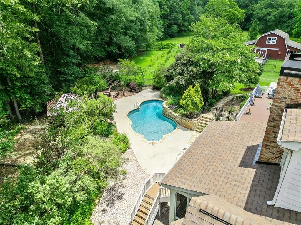 Experience peaceful country living on 12 private acres in charming Brooks, GA. This spacious 6-bedroom, 4.5-bath home offers over 5,900 square feet of thoughtfully designed living space. A welcoming front porch leads into a beautiful foyer flanked by a dedicated office and formal dining room. The living area features soaring ceilings and a cozy gas fireplace, while the open-concept kitchen impresses with slate gray and black appliances, a large island, and a breakfast/sitting area with its own brick fireplace. The main-level suite provides comfort and convenience with abundant natural light, dual walk-in closets, heated flooring, a tiled shower, garden tub, and double vanities. Upstairs includes three additional bedrooms-one with a private en-suite and two connected by a Jack-and-Jill bath. The finished basement expands the living space with a second living room, kitchenette, two more bedrooms, and a full bath. Step outside to enjoy the screened porch, expansive Trex deck, saltwater pool, and poolside firepit. A detached barn offers garage or hobby space with an upstairs loft. With beautifully maintained gardens, fruit trees, and unmatched privacy, this property blends luxury, functionality, and natural beauty. With 12 acres this home also qualifies for the Conservation Use Valuation Assessment! **Please refer to written disclosures for septic information**