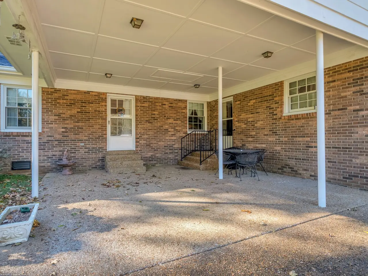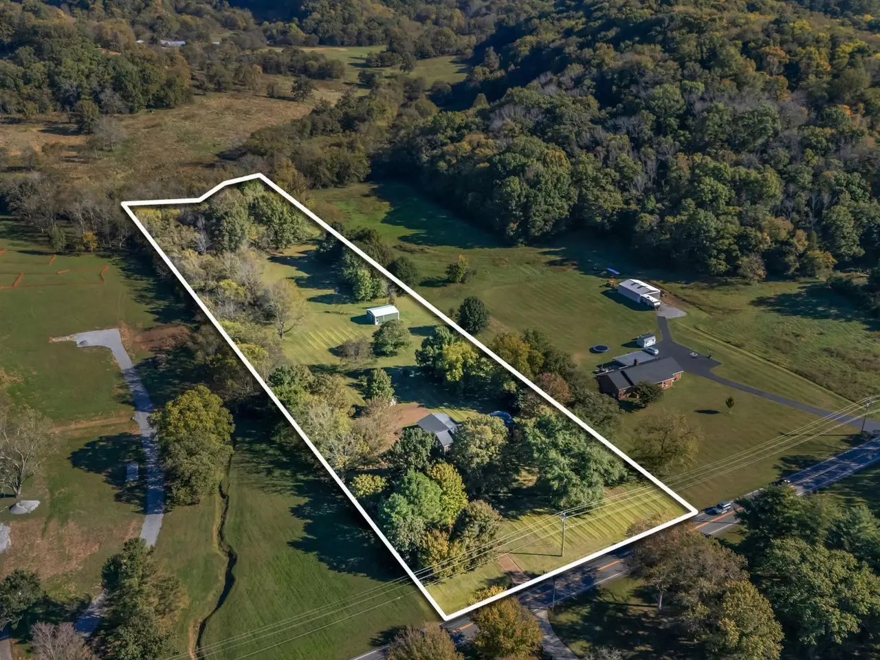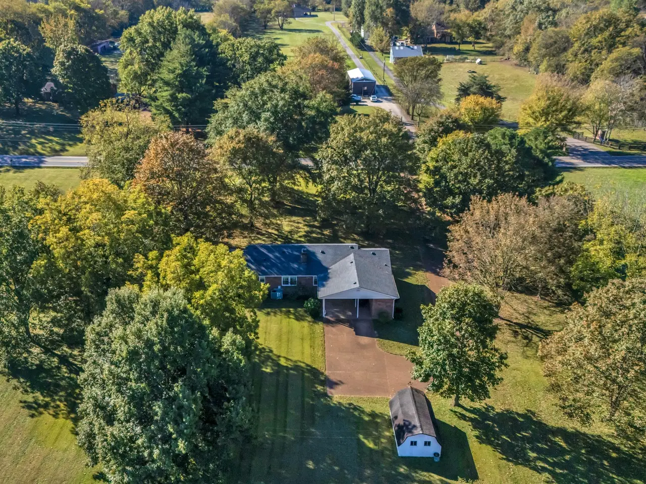 One level living on 5.9 beautiful acres of flat, Williamson County land. Priced at Appraised Value. Ten minutes from downtown Franklin and one mile to Southall Farm & Inn. The land tells a beautiful story of a local family riding their tractor from historic Leipers Fork to this family land in Franklin back in the day and planting acorns from their father's travels along the eastern property line. Irises that have continued to grow for 100 years. Wildlife to be seen and arrowheads to be found along the spring-fed creek. The home is warm and welcoming with plenty of space including a formal living, dining room and den. The eat-in kitchen holds a vintage Frigidaire refrigerator. The laundry room is spacious right off the kitchen with an additional utility room and access to the back patio and carport. The large, primary suite welcomes the morning light and has a private bathroom and walk-in closet. Two additional buildings are on the land including a large workshop/barn and a storage shed.