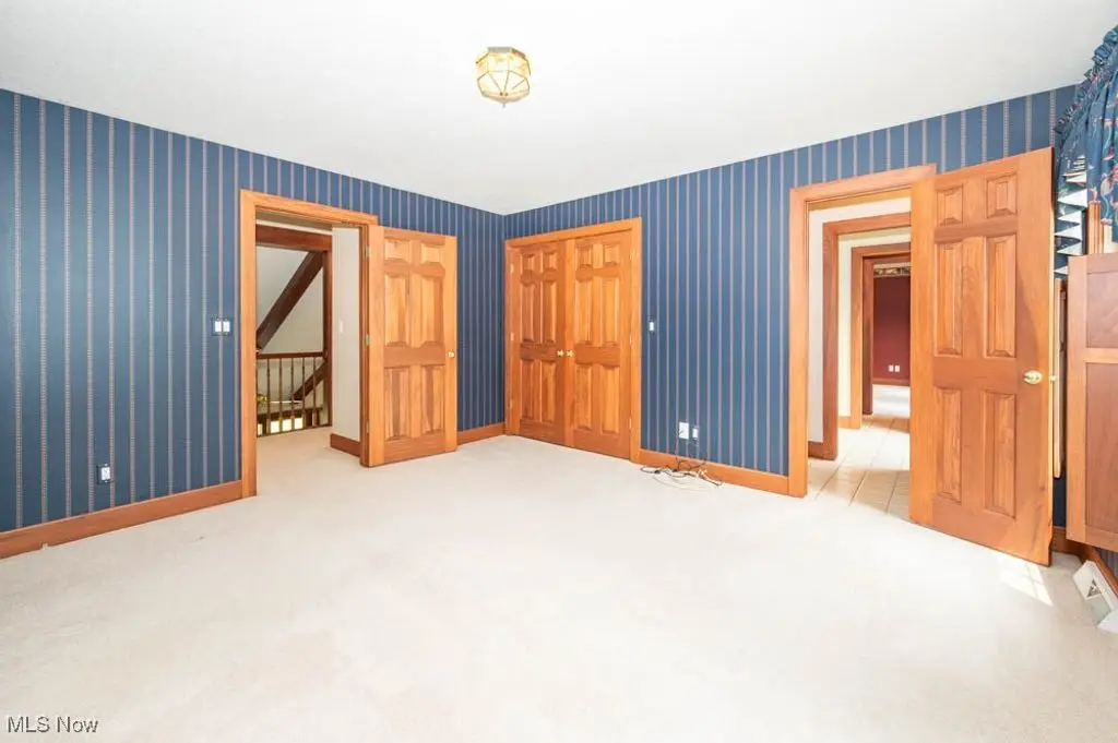 Welcome to your private oasis at the end of a picturesque driveway offering complete 360-degree privacy, peace, and serenity. This custom cedar-sided home sits on a breathtaking property with spectacular views of a large pond featuring a dock, paddle boat, and excellent fishing. Step inside to find soaring vaulted ceilings, solid wood doors, and custom details throughout. The expansive great room features a beamed ceiling, fireplace, and sliding doors that open to a large deck with an O'Neil awning overlooking the water. The first-floor primary suite offers the same tranquil views, two closets (including a walk-in with built-ins), and a spa-like ensuite with a jacuzzi tub, walk-in shower, and private water closet. Enjoy entertaining in the tile eat-in kitchen with handmade cabinetry, double ovens, a wet bar, and direct deck access. The formal dining room boasts hardwood floors, two built-in buffets, and beautiful crown molding. A cozy office/den with built-ins, fireplace, and front porch access, plus a large laundry/half bath combo and huge pantry, complete the main level. Upstairs features three generously sized bedrooms with fresh carpet, custom shutters, built-ins, and two full bathrooms one being a Jack-and-Jill with private vanities. A separate upstairs office/workout room provides flexibility. The finished basement with walk-up access to the 3rd car garage adds even more living space with new LVT flooring, a full bath, and a full wet bar with refrigerator. Additional features include geothermal heating, extensive storage, and a large metal-sided outbuilding for hobbies or equipment. This is a truly rare opportunity for privacy, luxury, and nature all in one property.