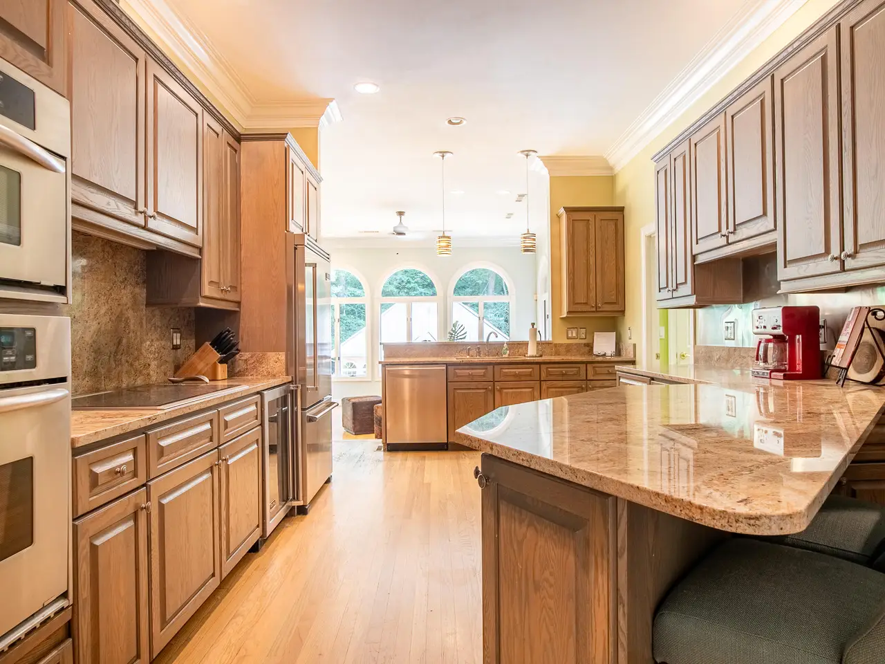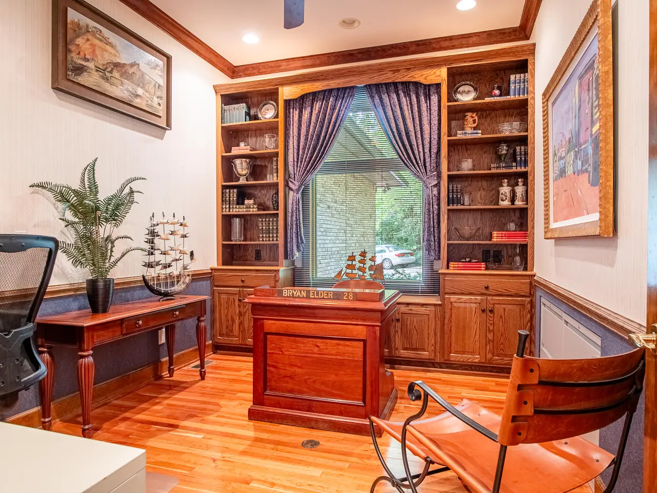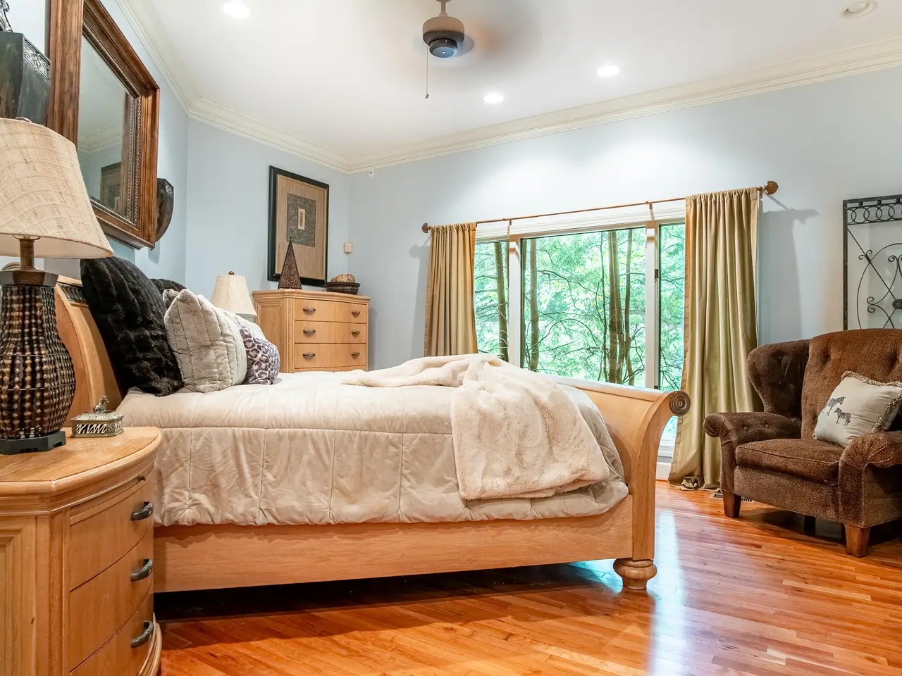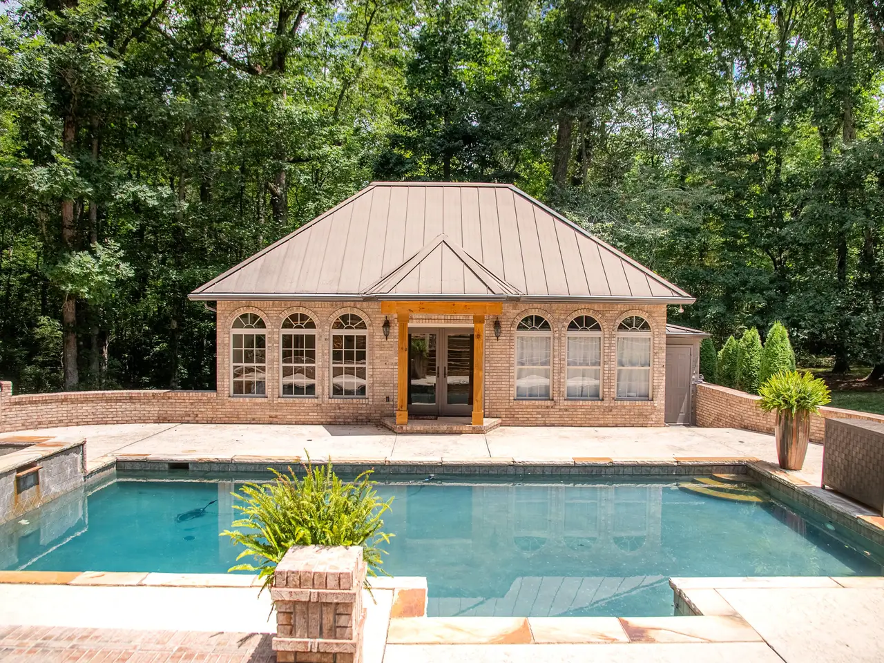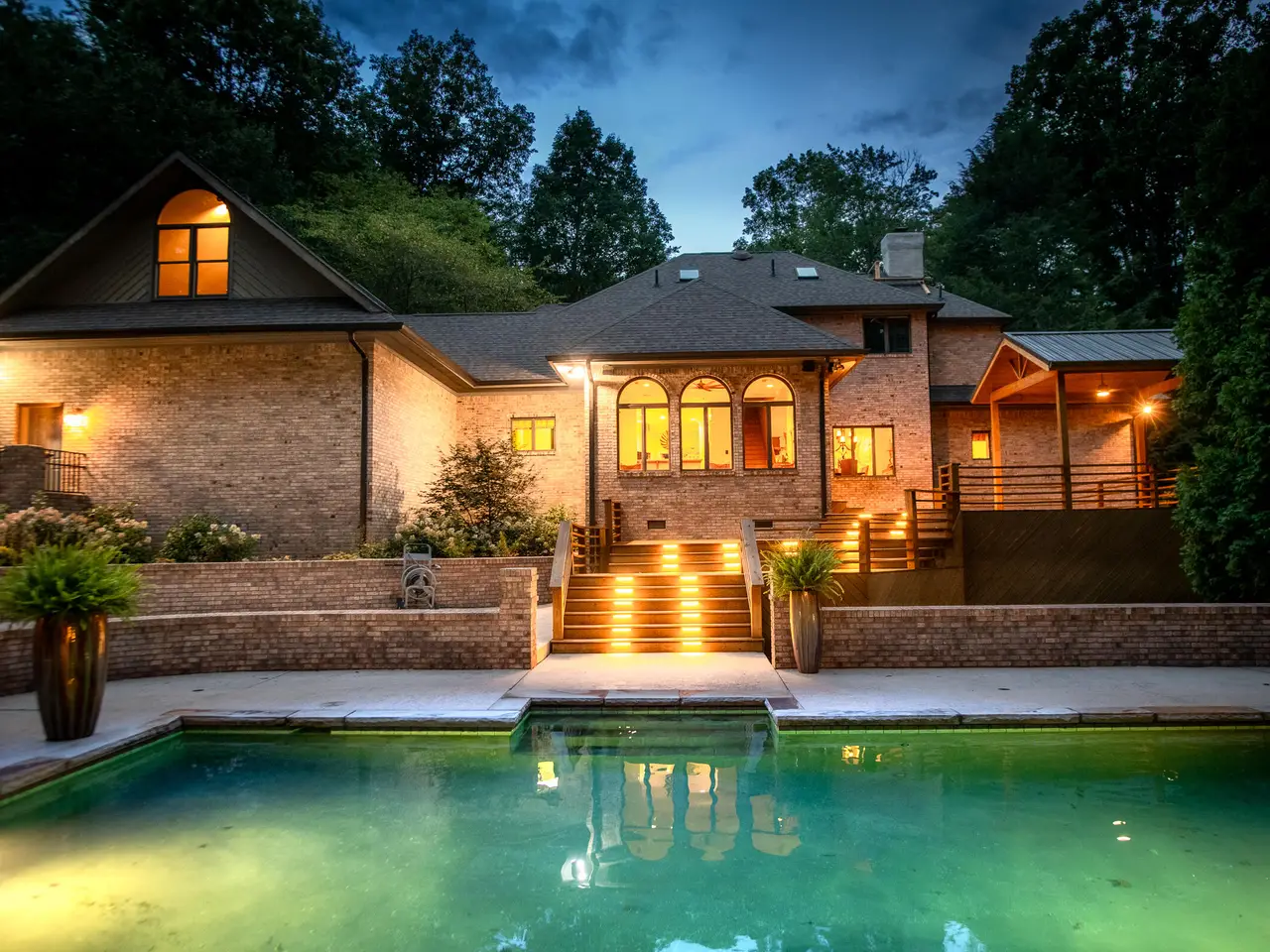 Fabulous estate property on 3.3 acres in the heart of Signal Mountain, offers both privacy and luxurious resort-style living. A long driveway through lush grounds leads you to the home. The all brick home features 10 foot ceilings, hardwood flooring, fireside den and living room, dining room, kitchen, office with built-ins, powder room, spacious primary bedroom on the main level with new Calacatta tile shower, chef's kitchen with Viking, Wolf and Kitchen Aid appliances, custom cabinetry and granite countertops. A most inviting sunroom overlooks the salt water pool, spa, 3 tiered decking with Pergola, outdoor fireplace, gathering and grilling area and pool/guest house - a true oasis to come home to! Upstairs are 2 additonal bedrooms each with ensuite bath. A separate stairway leads to the light filled 4th bedroom/bonus room and bath. There is a main level 3 car garage and a lower level gym/workshop. The main house has 3,989 square feet with an additional 584 square feet in the lower level gym space. The 710 square foot poolside studio guest house offers a fireside living area, kitchen with all Kitchen Aid Appliances and Laundry and 5th bedroom and bath. The grounds are truly stunning - and so very private. a year round spring runs parallel to the back yard for added privacy. Beautiful hardwood trees and native plants provide a lush setting. There is a charming garden shed in the backyard and an additonal building with garage door that has a car lift for working on cars/storage and workshop. The entire backyard is fenced and there is a separate fenced area for dogs. Zoned for top rated Signal Mountain schools, 72 Cool Springs is more than a home, it is a lifestyle!