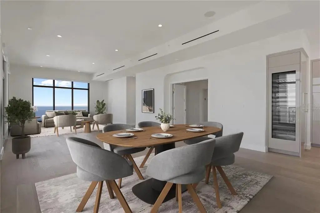 One or more photo(s) has been virtually staged. Now complete and move-in ready, this full floor home at The Nolen St. Pete offers an exceptional blend of luxury, privacy, and design within a 23-story boutique tower of only 31 residences. The elevator opens directly into a spacious foyer with a storage closet and double-door entry revealing breathtaking views of Old Northeast, Tampa Bay, and the Vinoy Basin. The chef’s kitchen is equipped with Gaggenau appliances, an induction cooktop, double ovens with convection microwave, a Blanco sink, two refrigerators, two freezers with ice makers, a large wine fridge, and an expansive waterfall island with quartz countertops and abundant pantry space. The open living area flows seamlessly to a 38-foot terrace that spans from the living room as well as a second terrace on the south side spanning the primary suite, showcasing sunrise and sunset views. The primary suite offers a spa-inspired bath with a soaking tub, walk-in shower with rain head and bench, dual vanities with LED illuminated mirrors, a makeup station, and an expansive walk-in closet. Both guest bedrooms feature en-suite baths, one guest room featuring terrace access. Additional highlights include a bonus study, powder bath, large laundry room with extra cabinetry, and generous storage throughout. Enjoy resort-style amenities including a saltwater pool and spa, fitness center, club lounge, fire pit area, outdoor grill space, and concierge service. The residence includes a private two-car garage within the parking structure and climate-controlled storage unit with its own mini-split AC. This is your opportunity to own a brand-new, never-lived-in residence at one of downtown St Pete's best locations. The Nolen is a thoughtfully designed, NGBS-certified green building, offering an elevated, maintenance-free lifestyle just steps from Beach Drive, waterfront parks, marinas, and downtown’s best dining and shopping. A new award-winning coffee shop is now open on the ground level — making it easier than ever to enjoy your morning routine or unwind just an elevator ride away. At The Nolen, downtown is downstairs — with the city’s finest restaurants, culture, fitness studios, and entertainment all within walking distance. The Nolen #2001 perfectly blends modern elegance, thoughtful design, and the timeless charm of St. Petersburg’s waterfront lifestyle. Come and view it today!