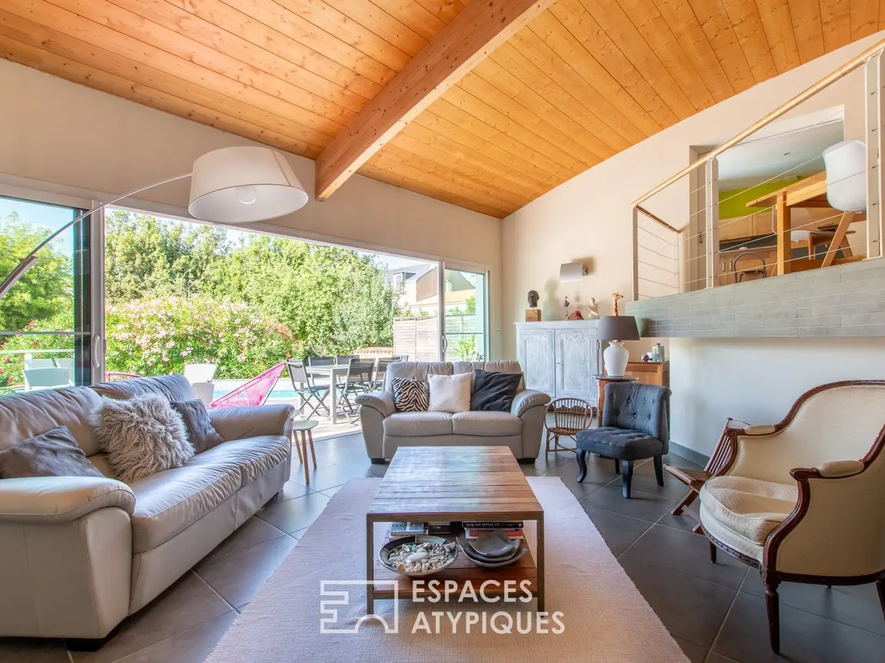 Located in the highly sought-after Pentagone district of La Roche-sur-Yon, this exceptional bourgeois residence offers nearly 292 sqm of living space on a generous plot of nearly 1,000 sqm.This rare property is distinguished by a bold contemporary extension, designed like an upturned boat hull, topped with zinc and largely open to the landscaped park. A unique architecture that enhances the classic soul of the house, creating a subtle dialogue between tradition and modernity.From the entrance, the tone is set: period parquet floors, moldings, ornamental fireplaces The charm is instantly felt. On either side of the hall, a vast, bright office and a generously sized bedroom hint at the promise of the place. The hallway leads to the living room, where the magic happens: bathed in light, it extends over two levels, offering a striking perspective with the dining room overlooking the living room. All framed by a huge bay window, mirroring the pool whose reflection dances on the ceiling. A separate kitchen with a utility room completes this level. Upstairs, a suite with a private shower room, an additional bedroom, and a bathroom create an elegant and comfortable sleeping area.The top floor houses two further bedrooms, a games room, and a convertible attic. A basement and cellar complete the ensemble. On the garden side, the show continues: a large south-facing terrace, a private swimming pool, and a lush landscaped park featuring an old glass roof seeking rebirth. A confidential and poetic property, designed for those seeking beauty, exception, and soul in the heart of a dynamic city. Just a stone's throw from the shops, schools, and the city center's covered market, it combines city life with the art of living away from prying eyes.REF. SA4644Additional information* 10 rooms* 5 bedrooms* 1 bathroom* 1 bathroom* Floor : 2* 2 floors in the building* Outdoor space : 999 SQM* Property tax : 2 710 €Energy Performance CertificatePrimary energy consumptionc : 226 kWh/m2.yearHigh performance housing*A*B*226kWh/m2.year34*kg CO2/m2.yearC*D*E*F*GExtremely poor housing performance* Of which greenhouse gas emissionsd : 34 kg CO2/m2.yearLow CO2 emissions*A*B*C*34kg CO2/m2.yearD*E*F*GVery high CO2 emissionsEstimated average annual energy costs for standard use, indexed to specific years 2021, 2022, 2023 : between 3280 € and 4510 € Subscription IncludedAgency feesThe fees include VAT and are payable by the vendorMediatorMediation Franchise-Consommateurswww.mediation-franchise.com29 Boulevard de Courcelles 75008 ParisInformation on the risks to which this property is exposed is available on the Geohazards website : www.georisques.gouv.fr