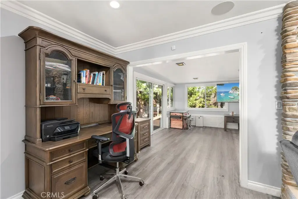 Welcome to 1170 Gleneagles Terrace, nestled in the highly desirable Costa Mesa Bluffs community. This home offers charming peek-a-boo ocean views from the front porch. Step inside to an open-concept floor plan that seamlessly connects the living, dining, and kitchen areas. At the heart of the home is a brand-new quartz island kitchen featuring a sleek design, stainless steel appliances, and abundant storage. The oversized breakfast bar adds both functionality and the perfect spot for casual dining or entertaining. Modern upgrades are showcased throughout, including waterproof flooring, dual-pane windows, updated recessed lighting, and surround-sound ceiling speakers in the living room, anchored by a striking stone fireplace. A spacious bonus room offers versatility as an office, media room, or additional family room, with dual sliders opening to the lush backyard. The hall bathroom was renovated with new plumbing, an oversized shower/tub, modern vanity, and designer fixtures. Each bedroom features recessed lighting, new ceiling fans, vinyl flooring, and fresh paint. The primary suite boasts a refreshed bathroom with a new tiled shower enclosure, modern vanity, fog-less mirror, and premium bidet toilet. Additional highlights include upgraded plumbing and a new 200-amp electrical panel, ideal for anyone considering a second story that could capture breathtaking panoramic ocean views. Outdoors, enjoy a spacious landscaped backyard with outdoor speakers and a covered patio, perfect for entertaining or relaxing with your morning coffee. For outdoor enthusiasts, Talbert Nature Reserve and Canyon Park are just minutes away with miles of walking and biking trails. The location is unbeatable, with PCH, the beach, Fashion Island, and Huntington Beach's Pacific City all nearby, along with highly rated schools in the Newport Mesa School District. This is truly a can't-miss opportunity to enjoy the coastal lifestyle in one of Costa Mesa's most sought-after neighborhoods.