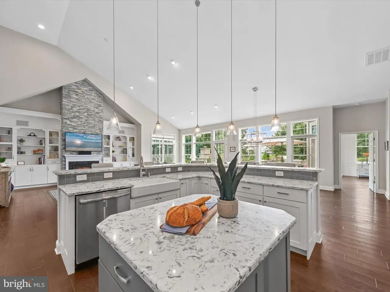 • Gourmet kitchen with Quartz countertops and custom cabinetry