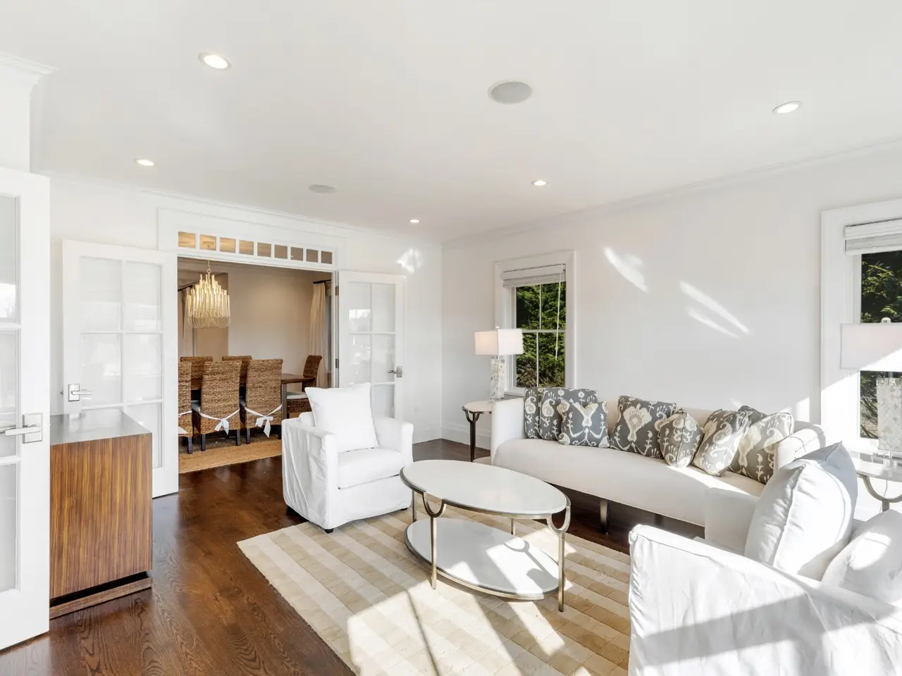 Custom built 5 bedroom, 5.5 bathroom home on highly sought-after Gingy Lane moments to Town and north shore beaches offers the perfect blend of modern luxury and timeless island charm. The light filled open plan naturally flows to side deck and patio. Versatile layout that offers the lower level as a separate "apartment" or an extension of the house. Gorgeous built-ins and millwork throughout.