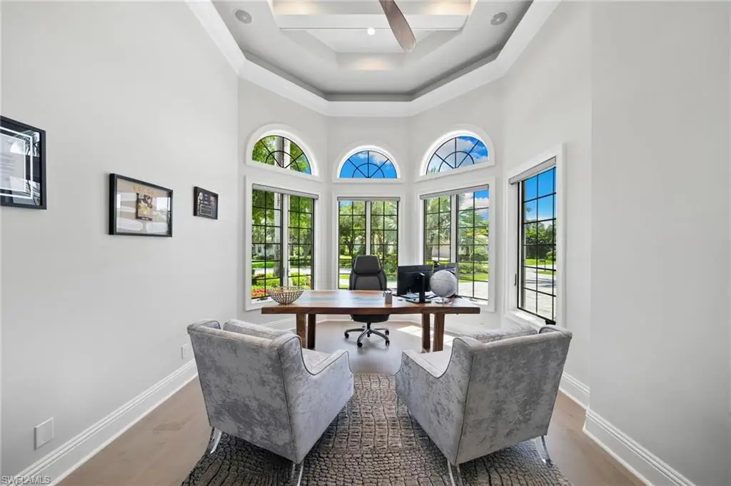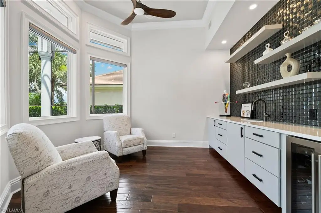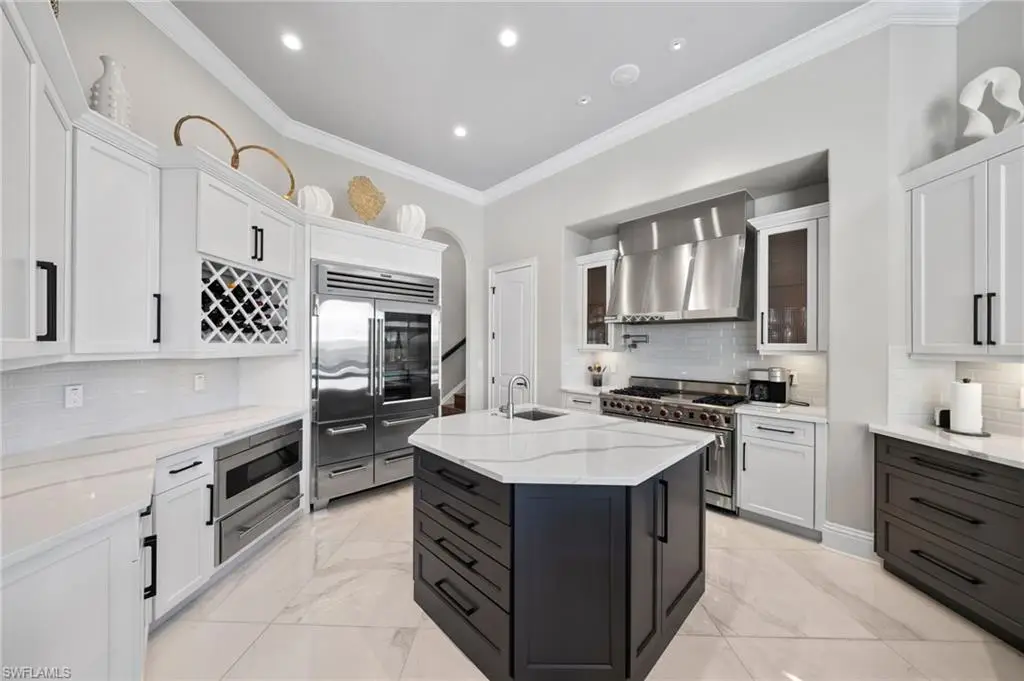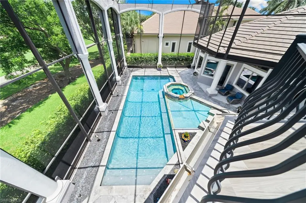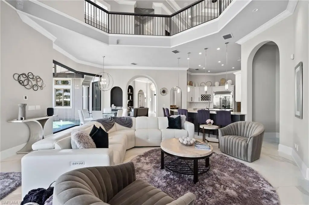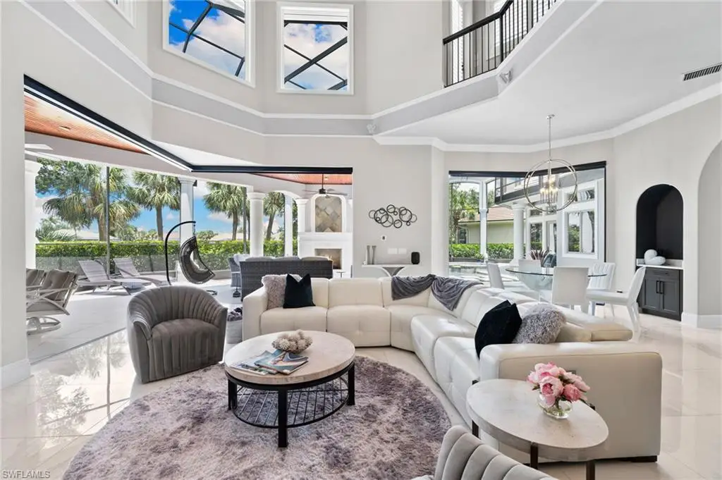 Welcome to this magnificent custom estate in Shadow Wood at The Brooks, where timeless design meets modern luxury. Spanning two floors of elevated living, this home has been meticulously updated inside and out over the past three years, offering the perfect blend of sophistication, comfort, and functionality. Set on a premier golf course lot with tranquil lake views, this residence features over 5,300 sq ft of air-conditioned living space and an exceptional outdoor lifestyle - complete with three verandas, a cozy fireplace, summer kitchen, and a resort-style pool and spa. All exterior elements have been refreshed or replaced, including the roof, driveway, front porch, pool equipment, screen enclosure, outdoor tile, landscape lighting, and irrigation. The outdoor living areas are fully integrated with smart features, including app-controlled pool systems, exterior security cameras, and smart garage openers. Inside, the home is just as impressive. The oversized kitchen has been updated with refinished cabinetry, new custom doors, and commercial-grade Sub-Zero and Wolf appliances, along with a large center island ideal for gathering. A stylish wet bar opens to the formal living room, while the adjacent dining room offers elegant space for entertaining. The family room's 90-degree zero-edge sliders disappear to reveal seamless access to the outdoor living area, creating a true indoor-outdoor experience. The first floor also includes a spacious study, powder bath, guest suite with private pool bath, and a generous laundry room. The primary suite is a retreat of its own, complete with a morning room and coffee bar, his-and-hers walk-in closets, and a spa-inspired bath with walk-through shower and jetted Roman tub. Upstairs, a billiards room with full bar overlooks the living space below, and two additional guest suites - each with private baths and balcony access - offer comfort and privacy for visitors. Throughout the home, you'll find all-new tile flooring (no overlays), fully renovated bathrooms, Emtek hardware, updated lighting, power shades, Lutron lighting controls, beverage coolers, and ice makers - all lightly used and beautifully maintained. Furnishings are included, with everything less than three years old. This is luxury living redefined - where every detail has been considered, and every finish speaks to quality.