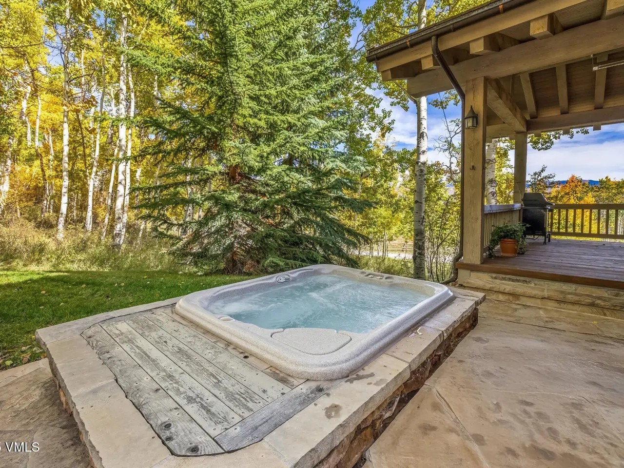• Heated stone patio with built-in hot tub