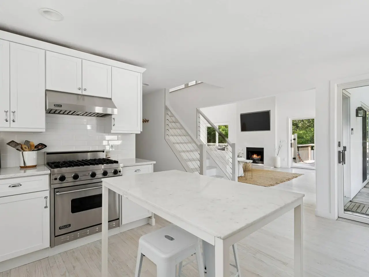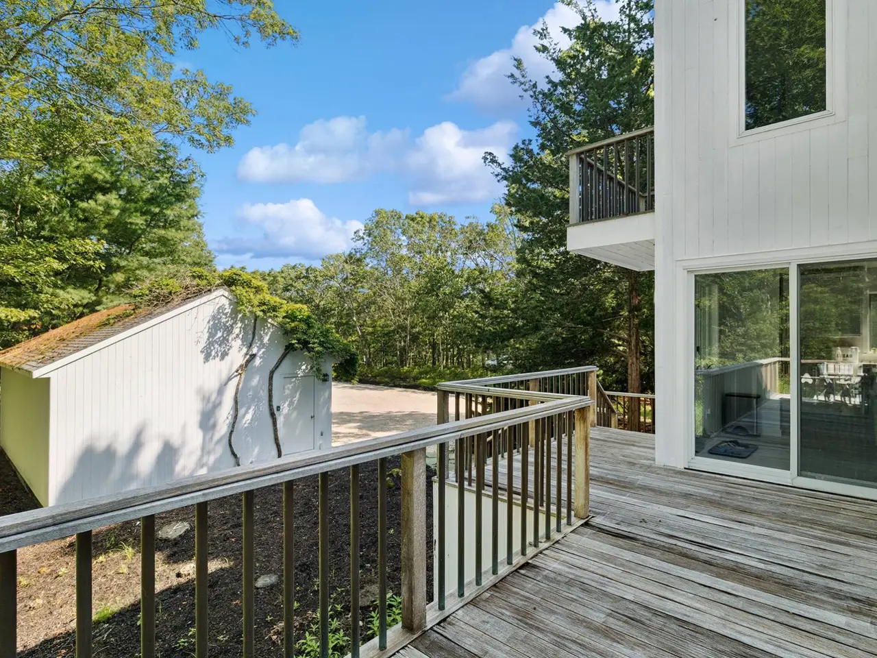 Tucked away on a private and serene 0.94 +/- acre setting, this renovated contemporary residence offers a seamless blend of style, comfort, and indoor-outdoor living in a prime Wainscott location. Spanning approximately 1,800 square feet plus a detached garage of 650 square feet, the two-story home features 3 spacious bedrooms and 2 full bathrooms, thoughtfully updated in 2020. The sun-filled great room is the heart of the home, boasting a vaulted ceiling with skylights, a wood-burning fireplace, and an open dining area-all surrounded by glass sliders that open to a generous wraparound deck. Perfect for entertaining or relaxing, the deck includes dedicated lounge and dining spaces that overlook the heated gunite swimming pool and beautiful grounds with natural beach grasses and mature plantings. The modern kitchen is fitted with professional-grade stainless steel appliances and elegant marble countertops, ideal for both everyday living and hosting. Total expansion potential for first, second, and lower levels is 3,900 sf and plans by architect Brian Glasser RA are included. Conveniently located with easy access to both East Hampton and Sag Harbor Villages, as well as the famed Atlantic Ocean beaches, this turnkey home offers a stylish escape in one of the Hamptons' most desirable areas. A rare combination of privacy, design, and location. Listing ID: 922012