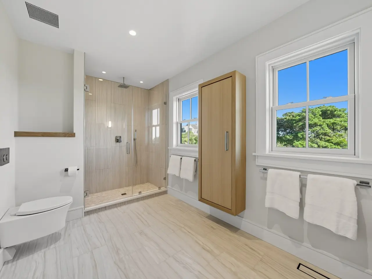 Your Beach and Entertaining Lifestyle Estate awaits! With breathtaking views of the ocean, unsurpassed access to the popular surfing beach of Nobadeer, and over 8,000 sf of high end, new construction, executed with a smart contemporary aesthetic, 51 Weweeder ticks every box. Imagine being able to grab a towel and walk out your backyard to the beach located less than 200 yards away. With six en suite bedrooms in the main house, including an entire nanny apartment located on the lower level, plus a separate studio apartment above the two car garage, there is plenty of room to accommodate large groups of family and friends. The exterior entertainment spaces abound. The generous pool (38' x 20') and spa (10' x 8) are a focal point, framed on one side by the first and second floor decks of the house and on the other side by the cabana. Choose between an intimate propane-fired fire pit located on the bluestone patio conveniently sited between the spa and cabana, or put your feet in the sand, while sitting around the 6' wood-fired fire pit built into a sand dune. The manicured lawn is an ideal location to set up a volleyball or badminton net, toss a football, or kick the soccer ball. Inside the main house, the entertaining spaces continue, with living rooms on three levels, accessed by a glass elevator or by a beautiful gently winding white oak and glass staircase. Additional bonus spaces include a game room with a bar, a home gym, and a 500 bottle-wine cellar, all located on the lower level.