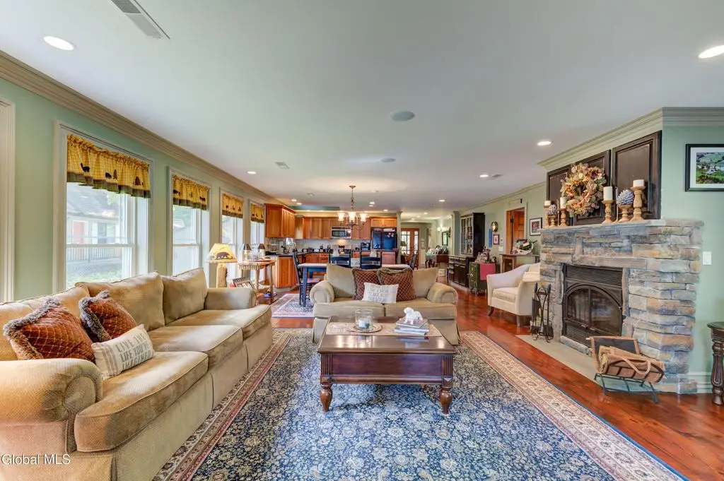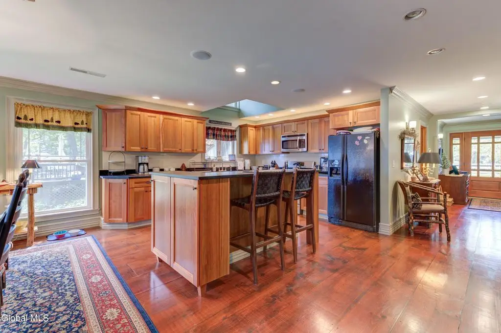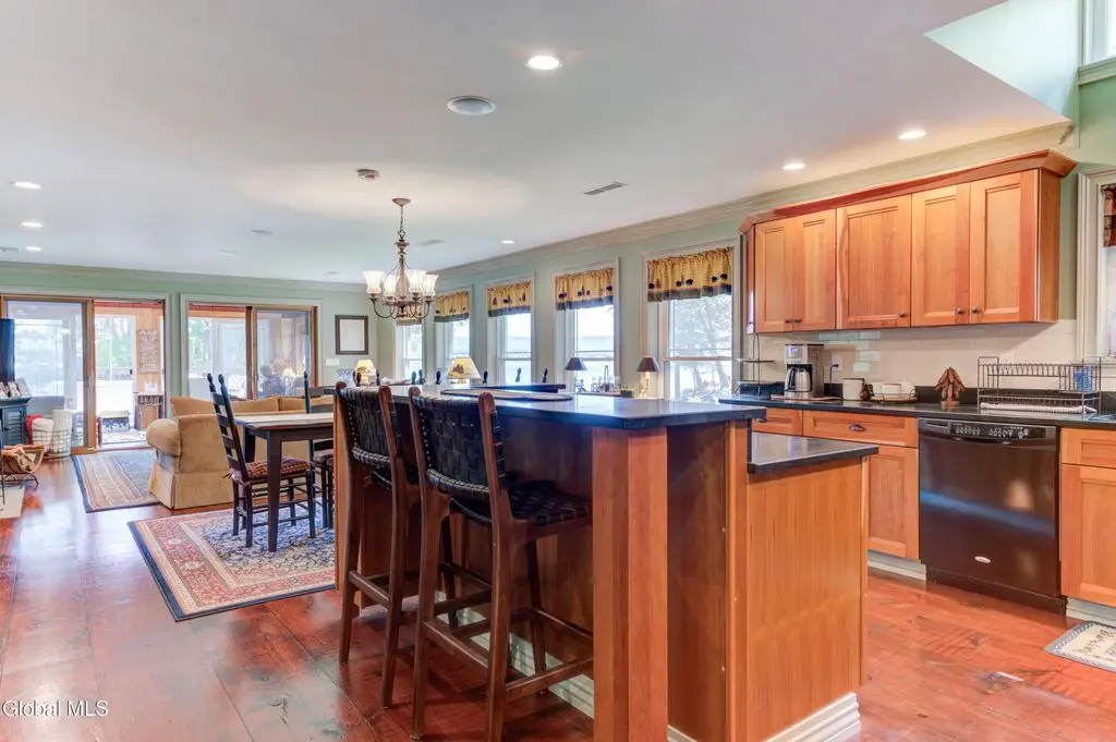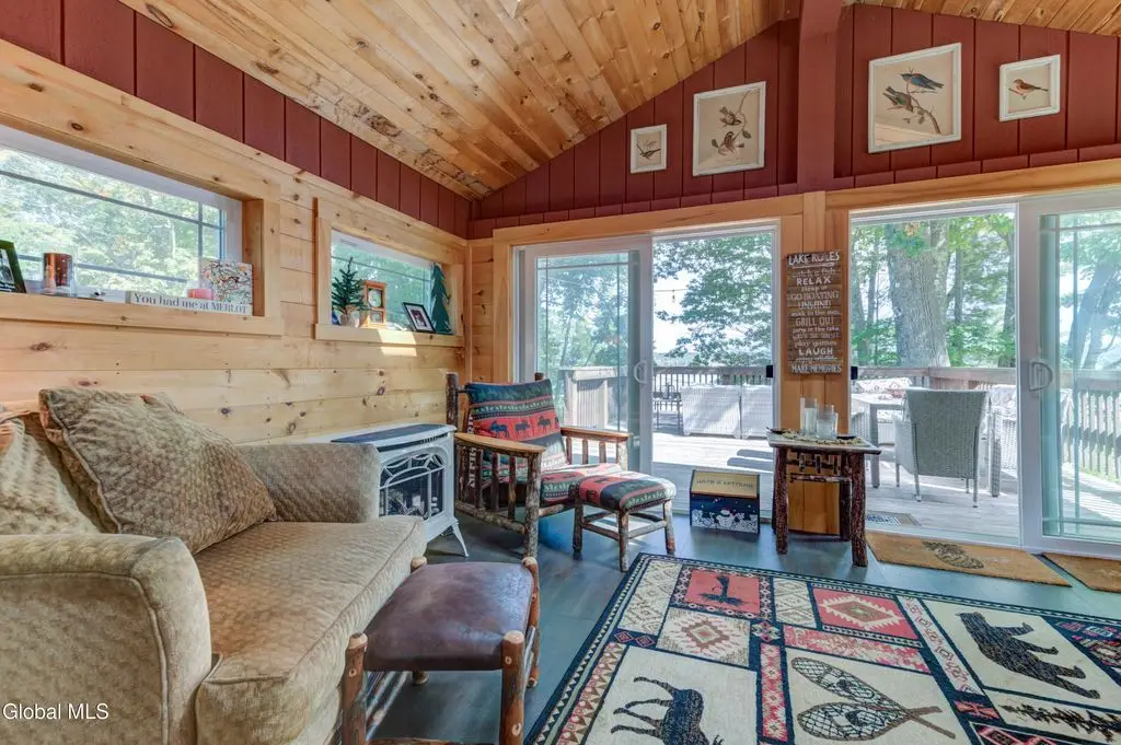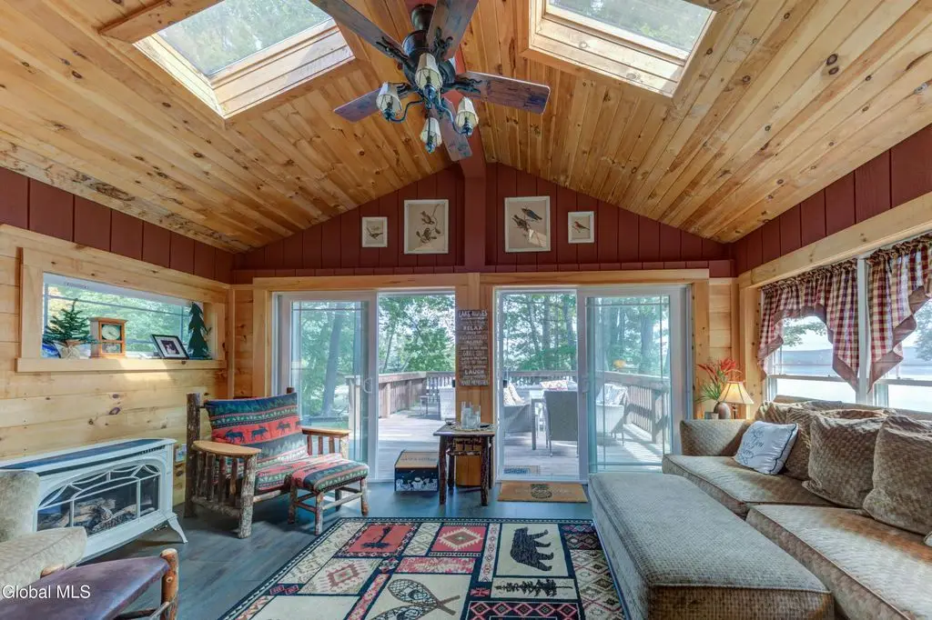 Enjoy year round lakeside living with 112' of HRBRRD lake permit on Great Sacandaga Lake with deep water for boating. This home was fully gutted and redone recently with tasteful updates throughout. It offers 2 spacious bedrooms, one facing the lake. The family room could easily be changed into a 3rd bedroom with a fireplace by adding two sets of doors. The kitchen shines with cherry cabinetry and soapstone countertops, adding warmth and ambiance to the great room. The living room, dining area, main bedroom, and enclosed porch all overlook the lake. The wide plank pine floors add to the warmth of the house and cozying up to the fireplaces or propane stove is perfect for taking the chill out. Step outside on the open deck for gorgeous views of the lake and mountains. This beautifully finished lake house is move-in ready. Just pack a bag and start enjoying the spacious yard and deck which are perfect for entertaining. Hop on a snowmobile or ice fish and enjoy the GSL year round.
