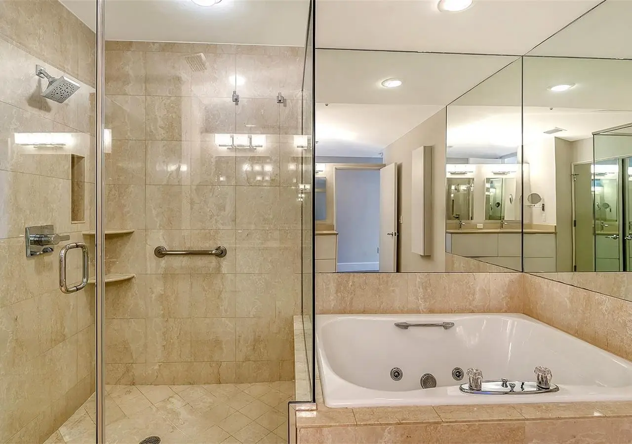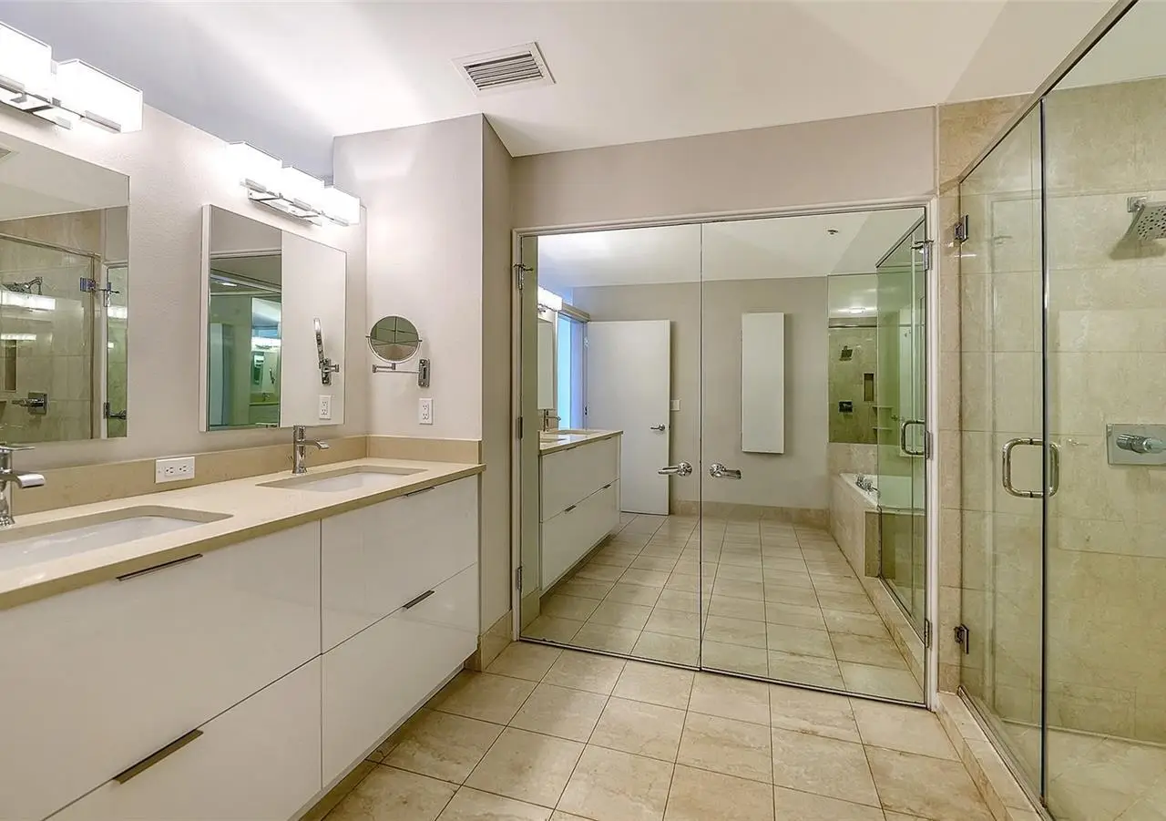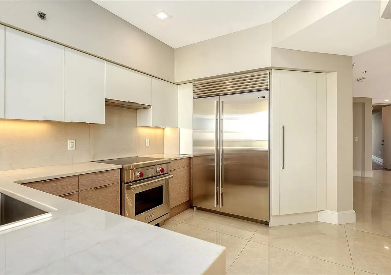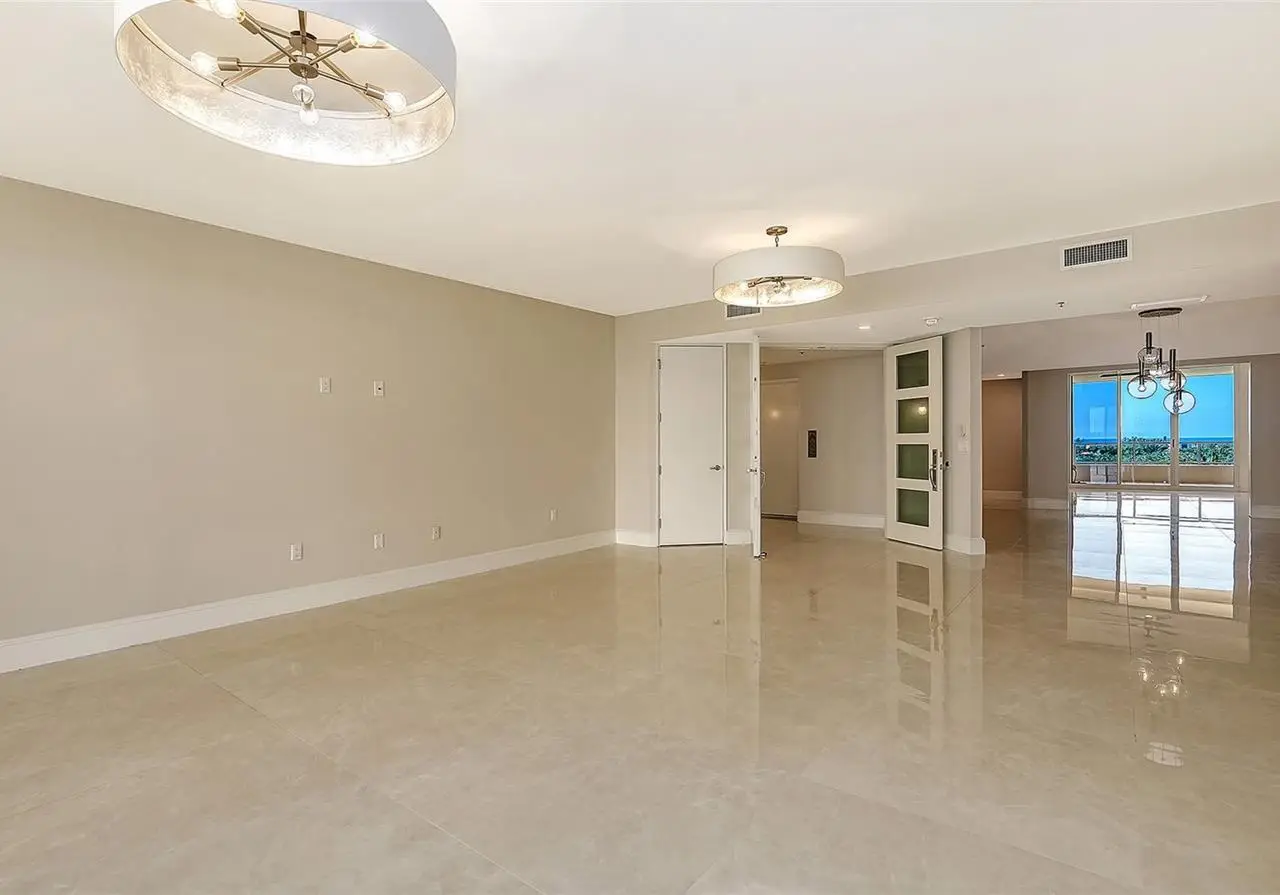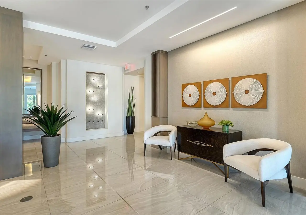Welcome to Grand Bay. Experience the essence of refined coastal living, where breathtaking panoramic water and city views take center stage. Awaken to the sunrise over Sarasota Bay's skyline with limitless views of the bay and golf course, and unwind with stunning sunsets over the Gulf, an ever-changing display of beauty from every room. Perfectly situated on the 8th floor, this elegant home welcomes you through a private-access, controlled elevator leading to a stunning foyer framed by contemporary glass double doors. The Cayman open floor plan immediately reveals sweeping vistas, while large porcelain tile flooring flows seamlessly through the living areas and onto two outdoor terraces ideal for quiet relaxation. The stunning updated kitchen features two-toned cabinetry, Wolf and Sub-Zero appliances, under-cabinet lighting, quartz countertops, and an inviting breakfast bar. An adjacent eat-in area with floor-to-ceiling sliders opens to a private covered terrace, a perfect setting for entertaining guests and boundless vistas. The primary suite is a lavish retreat, complete with white oak floors, two walk-in closets and a spa-inspired bath showcasing, a soaking tub, glass shower, and dual vanities. The guest suite offers private terrace access for stunning sunset views, complemented by white oak floors and an en-suite bath. Discover versatility with a den/office that doubles as an occasional guest room, providing privacy with elegant pocket doors that separate it from the formal dining room, and a 3rd full bath just steps away. A well thought out conversion has added a built-in office area adding functionality to round out the interior. Residents enjoy various first-rate amenities, including 24-hour guard gates, a clubhouse, two community pools and spas, a large fitness center with saunas, and tennis courts. Stroll the neighborhood's scenic walking paths or enjoy deeded access to the exclusive gated Bay Isles Beach Club offering locker rooms, barbecues, volleyball nets, covered picnic areas and a sandy white beach. Located behind the Bay Isles secure gates, this secluded neighborhood rests on the rolling greens of the Longboat Key Club's golf course. Grand Bay residents find it hard to leave this special community. This residence truly captures the best refined Bay and beach lifestyle - sophisticated, exclusive, and ready to be enjoyed.