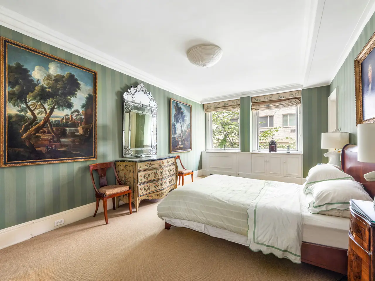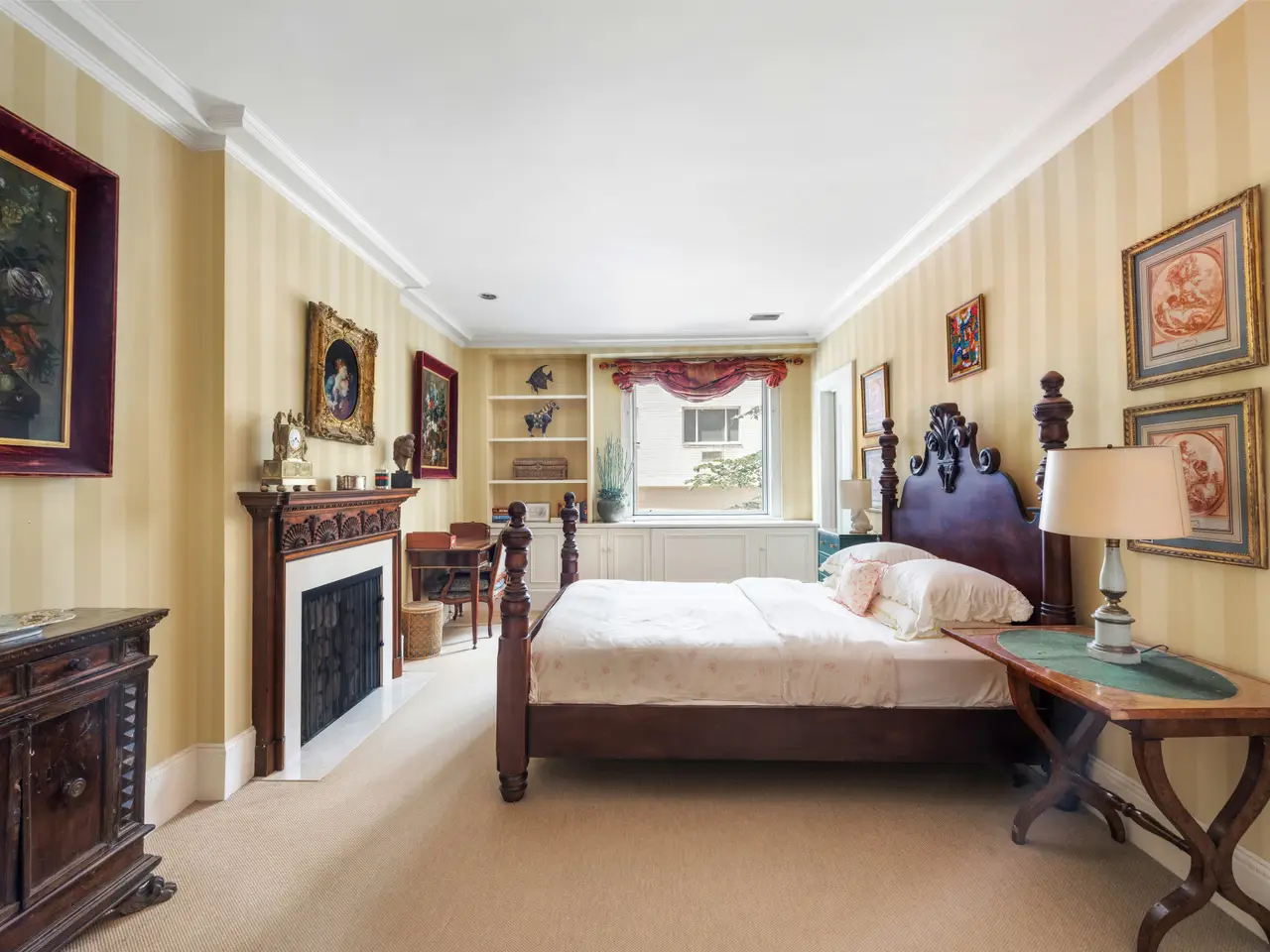This stunning 3-bedroom home, located on the second floor, at 485 Park Avenue is a beautifully appointed Classic-Seven, located in one of Park Avenue's prestigious white-glove cooperatives, featuring furniture and artwork collected by the fashion icon and heiress Millicent Rogers. Nestled at the intersection of Midtown East and the Upper East Side, this elegant home presents the rare opportunity to preserve the timeless grace of its pre-war architecture while bringing it up to date with modern fixtures. Upon entering through a semi-private landing, a gracious 27-foot-long central gallery sets a tone of quiet luxury, framed by decorative wainscoting and classic herringbone wood floors that seamlessly connects to a spacious, South-facing living room featuring a wood-burning fireplace with custom millwork and built-in bookshelves. French doors open to the formal dining room, allowing for a fluid and elegant entertaining experience. The adjacent windowed eat-in kitchen is both expansive and practical. The apartment features three South-facing bedrooms. The serene primary bedroom includes a walk-in closet and additional storage. A second and third bedroom share a private suite at the far end of the home - offering privacy, generous closet space, and a shared windowed bathroom. Additionally, there is a staff room with a full third bathroom. Built in 1922 by Dwight P. Robinson & Co., 485 Park Avenue is a distinguished full-service cooperative with a limestone base and classic architectural detailing. Residents enjoy the services of a full-time staff, live-in resident manager, private storage, and bicycle storage. The location is unbeatable-just moments from Central Park, The Museum of Modern Art, and world-class shopping and dining along Fifth and Madison Avenues. Nearby conveniences include Whole Foods, Trader Joe's, and several major subway lines (N, R, W, 4, 5, 6), with bus routes just one block away. The cooperative permits pieds-à-terre upon board approval and welcomes pets. Financing is allowed up to 50%. Residence 1B offers the rare opportunity to live in a home that is at once classic, comfortable, and unmistakably Park Avenue.