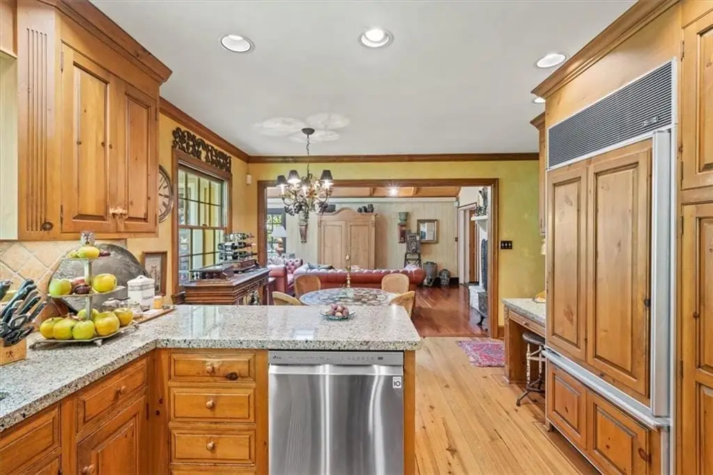 Nestled in the heart of Mission Hills, this extraordinary home offers timeless elegance and a stunning setting reminiscent of an English country estate. Set on over a half-acre, the backyard is a true sanctuary with lush gardens, multiple seating areas, arbors, fountains, and patios designed for both relaxation and entertaining. Inside, natural light pours into the spectacular sunroom with vaulted ceilings and skylights. The expanded primary suite features a spa-like bath and a generous walk-in closet. Upstairs, two oversized bedroom suites showcase charming New England pine hardwood floors and private en suites. Hardwood floors flow throughout the spacious living and dining rooms, while the inviting great room impresses with Brazilian pine hardwoods and soaring vaulted ceilings. The chef’s kitchen is outfitted with high-end stainless appliances and overlooks the picturesque backyard. Every detail of this residence reflects thoughtful design, blending warmth, sophistication, and comfort in one of Kansas City’s most coveted neighborhoods.