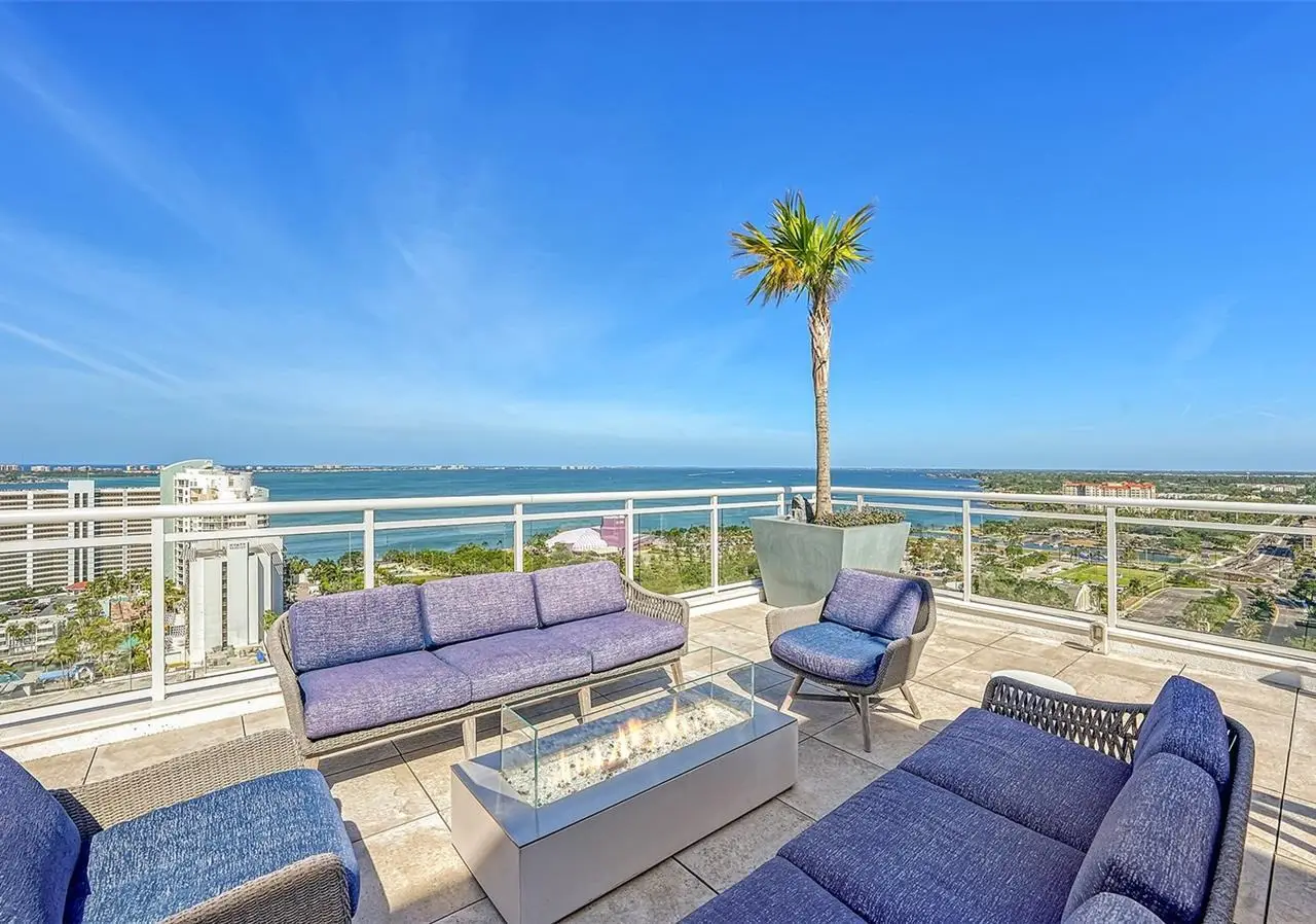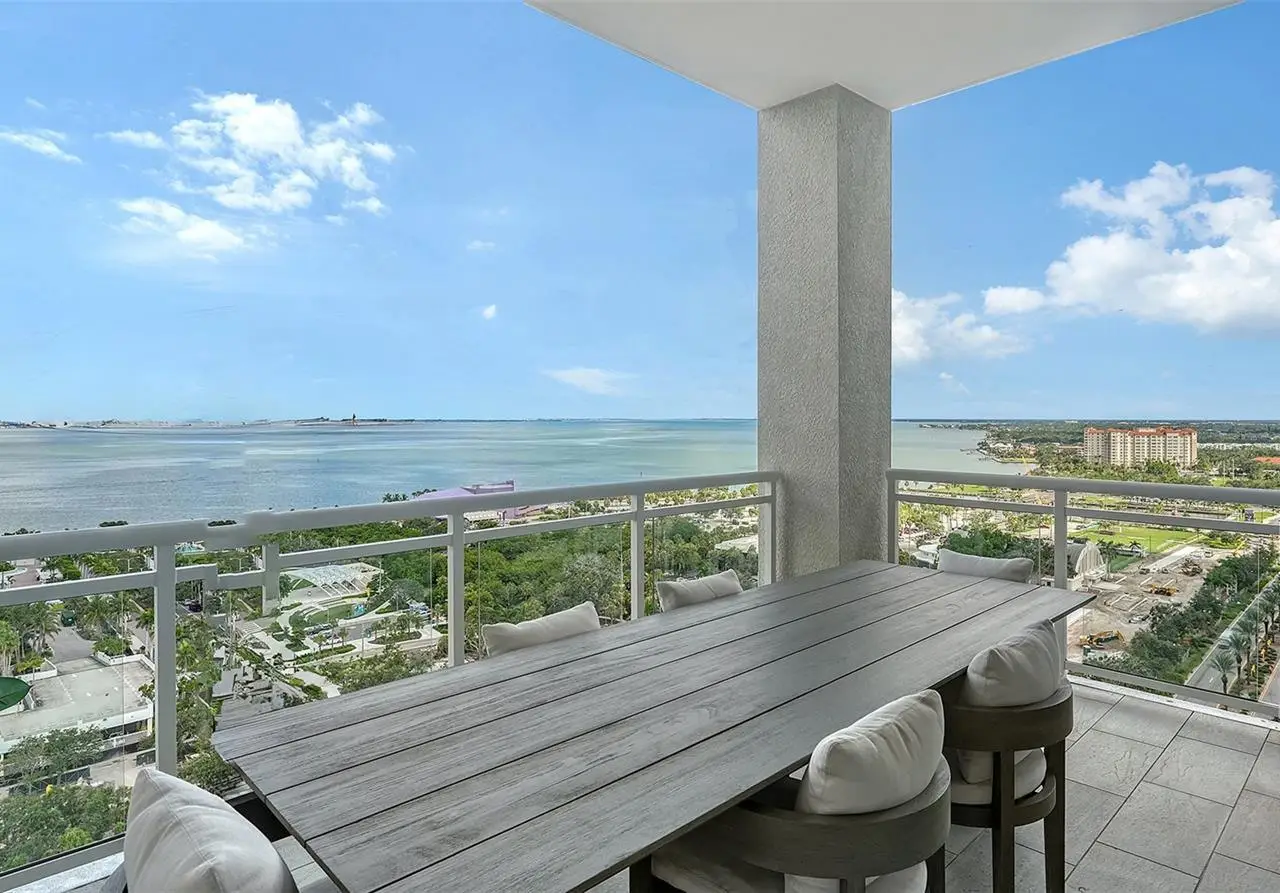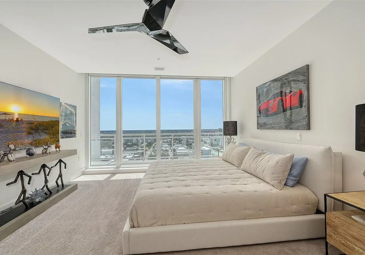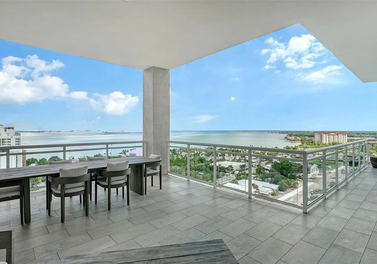Welcome to the BLVD, where breathtaking views define the home experience! This architecturally stunning, modern condominium stands perfectly positioned in the Bayfront District of downtown Sarasota. Indulge in a luxurious residence soaring above Sarasota Bay, ideally located on the 17th floor, featuring expansive glass walls that offer breathtaking and unobstructed bay views to the north and west, and city views to the east. At this premier address, residents are among the elite who are privileged with an exclusive standard of living. This iconic building offers high-quality interior finishes and advanced coastal construction and design. From the moment you step through the entrance of the private access elevator, the tone is set for the entire space and lifestyle. The flow-through floorplan highlights magnificent bayfront and city views, with impact windows and sliding glass doors leading to several large terraces. Elegant tile flooring and glass railings create a seamless connection between the indoor and outdoor spaces, framing boundless vistas. The expansive great room boasts lofty ceilings, custom lighting, and large tile flooring - ideal for entertaining guests. A culinary showpiece, the kitchen features designer tile backsplash that complements the sleek cabinetry and designer lighting, adding sophistication throughout. An oversized island, complete with high-end quartz countertops and ample storage, anchors the space. For wine enthusiasts and culinary connoisseurs, this remarkable kitchen also features top-of-the-line Thermador appliances with a 6-burner gas cooktop, built-in wall oven, wine fridge, and two spacious pantries with custom shelving. The expansive primary bedroom is complete with two exquisite custom walk-in closets, with a spa-like bath boasting a soaking tub and an oversized glass shower. Two oversized bedroom suites feature private terrace access and luxurious spa-like baths. A powder room and spacious laundry room round out the interior. Quality and comfort are at the forefront, evident with a state-of-the art smart automation system with Lutron lighting, and motorized shades system. Additional highlights include three glass-railed terraces, custom lighting and 8' solid-core doors. BLVD hosts only forty-nine residences and sets itself apart with its unparalleled hotel-inspired amenities and full-time concierge. Residents will enjoy a social club room with a service bar, well-equipped fitness center, conference room, temperature-controlled wine room with private lockable showcases, indoor driving range, and a dog grooming room. The expansive outdoor terrace offers additional outdoor lounge seating and convenient pet facilities. For those seeking ultimate relaxation, the rooftop, home to the best rooftop pool area in Sarasota, features a zero-horizon pool, lounge seating, covered outdoor summer kitchen, and fire pit. 1702 embodies the essence of Sarasota's lifestyle, where luxury meets sophistication. Strolling on the waterfront, exploring the diverse cuisine, or attending the cultural events in downtown Sarasota makes the BLVD a destination as well as home. And COMING SOON-1000 NORTH Sarasota, an exclusive members-only club located on the bottom floor of the BLVD, and centered in the heart of the city's cultural corridor. This private retreat will offer elevated dining, handcrafted cocktails, personalized concierge services, and private wine storage, delivering a blend of luxury, comfort, and sophistication.