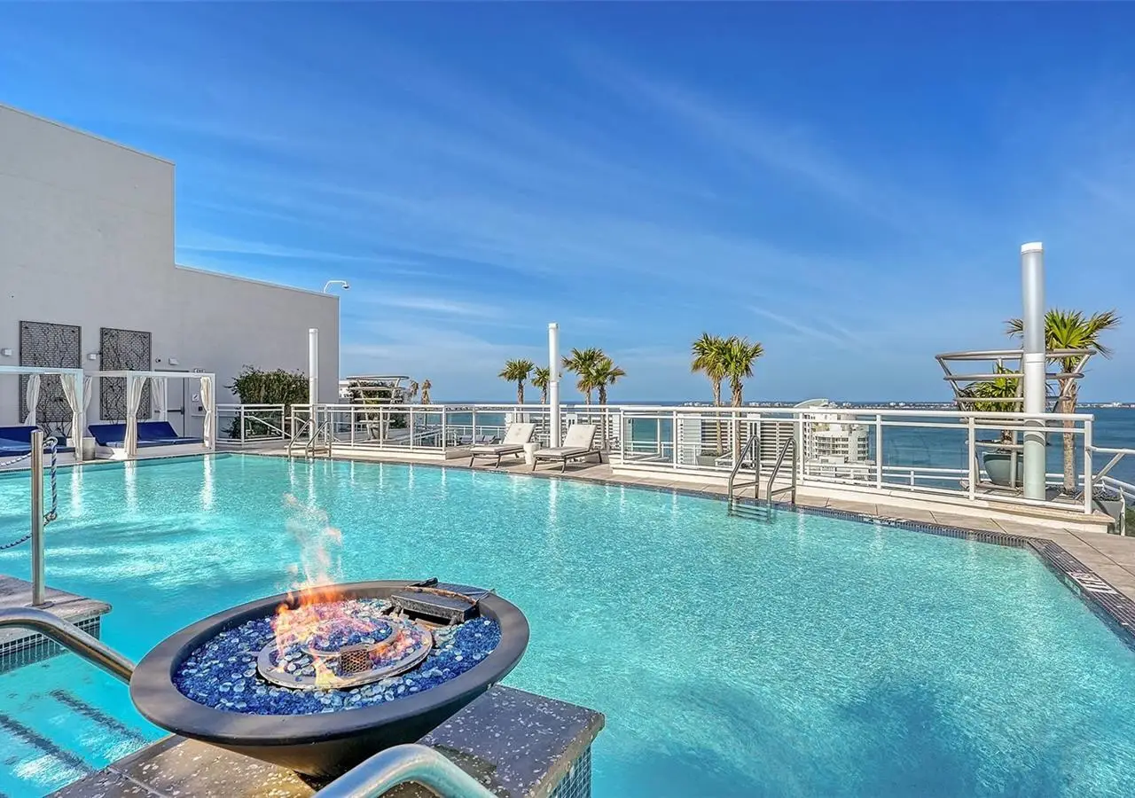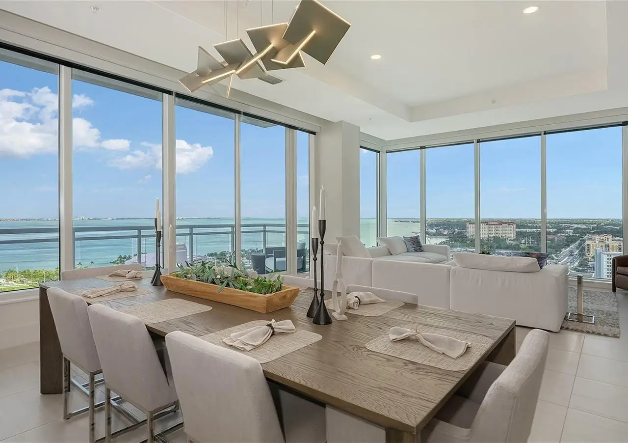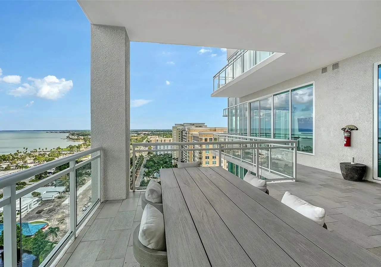 Welcome to the BLVD, where breathtaking views define the home experience! This architecturally stunning, modern condominium stands perfectly positioned in the Bayfront District of downtown Sarasota. Indulge in a luxurious residence soaring above Sarasota Bay, ideally located on the 17th floor, featuring expansive glass walls that offer breathtaking and unobstructed bay views to the north and west, and city views to the east. At this premier address, residents are among the elite who are privileged with an exclusive standard of living. This iconic building offers high-quality interior finishes and advanced coastal construction and design. From the moment you step through the entrance of the private access elevator, the tone is set for the entire space and lifestyle. The flow-through floorplan highlights magnificent bayfront and city views, with impact windows and sliding glass doors leading to several large terraces. Elegant tile flooring and glass railings create a seamless connection between the indoor and outdoor spaces, framing boundless vistas. The expansive great room boasts lofty ceilings, custom lighting, and large tile flooring - ideal for entertaining guests. A culinary showpiece, the kitchen features designer tile backsplash that complements the sleek cabinetry and designer lighting, adding sophistication throughout. An oversized island, complete with high-end quartz countertops and ample storage, anchors the space. For wine enthusiasts and culinary connoisseurs, this remarkable kitchen also features top-of-the-line Thermador appliances with a 6-burner gas cooktop, built-in wall oven, wine fridge, and two spacious pantries with custom shelving. The expansive primary bedroom is complete with two exquisite custom walk-in closets, with a spa-like bath boasting a soaking tub and an oversized glass shower. Two oversized bedroom suites feature private terrace access and luxurious spa-like baths. A powder room and spacious laundry room round out the interior. Quality and comfort are at the forefront, evident with a state-of-the art smart automation system with Lutron lighting, and motorized shades system. Additional highlights include three glass-railed terraces, custom lighting and 8' solid-core doors. BLVD hosts only forty-nine residences and sets itself apart with its unparalleled hotel-inspired amenities and full-time concierge. Residents will enjoy a social club room with a service bar, well-equipped fitness center, conference room, temperature-controlled wine room with private lockable showcases, indoor driving range, and a dog grooming room. The expansive outdoor terrace offers additional outdoor lounge seating and convenient pet facilities. For those seeking ultimate relaxation, the rooftop, home to the best rooftop pool area in Sarasota, features a zero-horizon pool, lounge seating, covered outdoor summer kitchen, and fire pit. 1702 embodies the essence of Sarasota's lifestyle, where luxury meets sophistication. Strolling on the waterfront, exploring the diverse cuisine, or attending the cultural events in downtown Sarasota makes the BLVD a destination as well as home. And COMING SOON-1000 NORTH Sarasota, an exclusive members-only club located on the bottom floor of the BLVD, and centered in the heart of the city's cultural corridor. This private retreat will offer elevated dining, handcrafted cocktails, personalized concierge services, and private wine storage, delivering a blend of luxury, comfort, and sophistication.