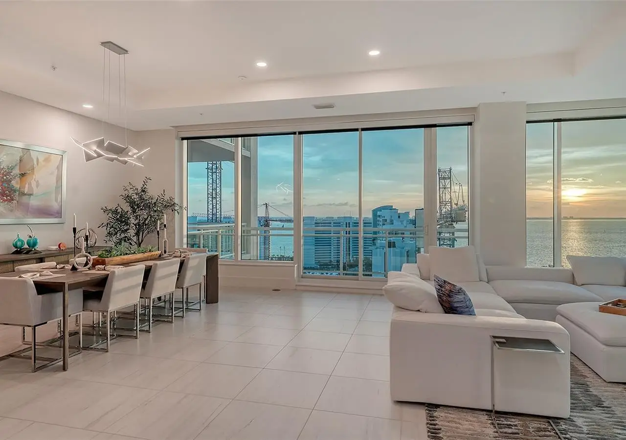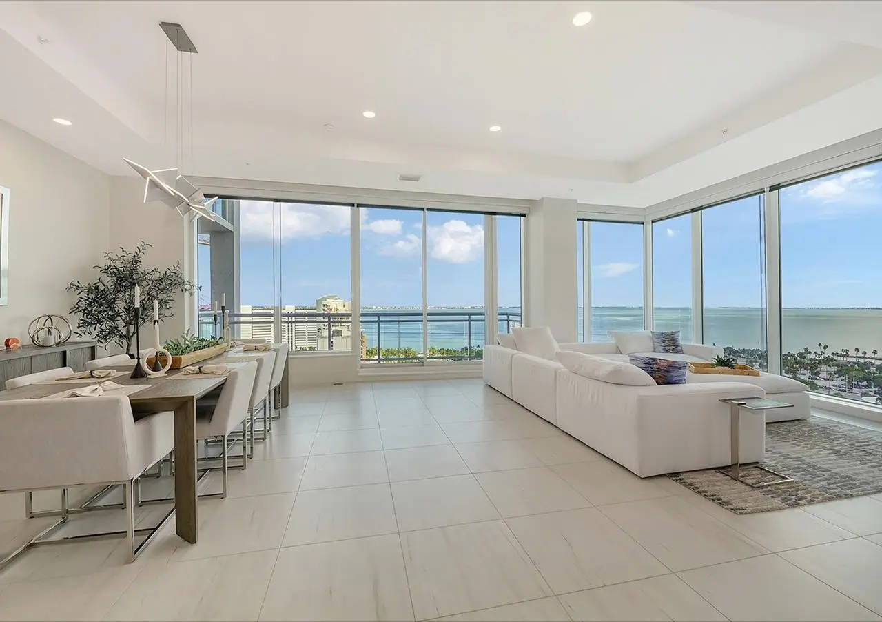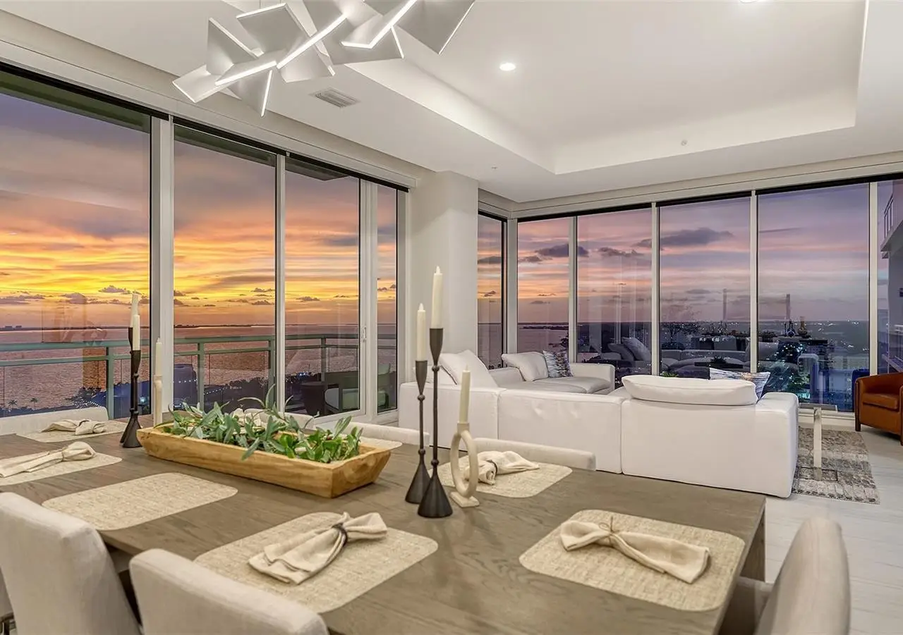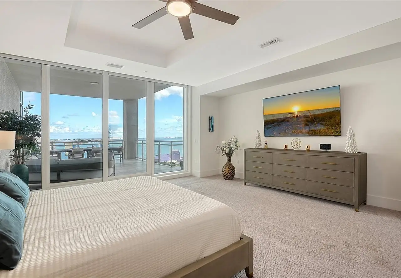 Welcome to the BLVD, where breathtaking views define the home experience! This architecturally stunning, modern condominium stands perfectly positioned in the Bayfront District of downtown Sarasota. Indulge in a luxurious residence soaring above Sarasota Bay, ideally located on the 17th floor, featuring expansive glass walls that offer breathtaking and unobstructed bay views to the north and west, and city views to the east. At this premier address, residents are among the elite who are privileged with an exclusive standard of living. This iconic building offers high-quality interior finishes and advanced coastal construction and design. From the moment you step through the entrance of the private access elevator, the tone is set for the entire space and lifestyle. The flow-through floorplan highlights magnificent bayfront and city views, with impact windows and sliding glass doors leading to several large terraces. Elegant tile flooring and glass railings create a seamless connection between the indoor and outdoor spaces, framing boundless vistas. The expansive great room boasts lofty ceilings, custom lighting, and large tile flooring - ideal for entertaining guests. A culinary showpiece, the kitchen features designer tile backsplash that complements the sleek cabinetry and designer lighting, adding sophistication throughout. An oversized island, complete with high-end quartz countertops and ample storage, anchors the space. For wine enthusiasts and culinary connoisseurs, this remarkable kitchen also features top-of-the-line Thermador appliances with a 6-burner gas cooktop, built-in wall oven, wine fridge, and two spacious pantries with custom shelving. The expansive primary bedroom is complete with two exquisite custom walk-in closets, with a spa-like bath boasting a soaking tub and an oversized glass shower. Two oversized bedroom suites feature private terrace access and luxurious spa-like baths. A powder room and spacious laundry room round out the interior. Quality and comfort are at the forefront, evident with a state-of-the art smart automation system with Lutron lighting, and motorized shades system. Additional highlights include three glass-railed terraces, custom lighting and 8' solid-core doors. BLVD hosts only forty-nine residences and sets itself apart with its unparalleled hotel-inspired amenities and full-time concierge. Residents will enjoy a social club room with a service bar, well-equipped fitness center, conference room, temperature-controlled wine room with private lockable showcases, indoor driving range, and a dog grooming room. The expansive outdoor terrace offers additional outdoor lounge seating and convenient pet facilities. For those seeking ultimate relaxation, the rooftop, home to the best rooftop pool area in Sarasota, features a zero-horizon pool, lounge seating, covered outdoor summer kitchen, and fire pit. 1702 embodies the essence of Sarasota's lifestyle, where luxury meets sophistication. Strolling on the waterfront, exploring the diverse cuisine, or attending the cultural events in downtown Sarasota makes the BLVD a destination as well as home. And COMING SOON-1000 NORTH Sarasota, an exclusive members-only club located on the bottom floor of the BLVD, and centered in the heart of the city's cultural corridor. This private retreat will offer elevated dining, handcrafted cocktails, personalized concierge services, and private wine storage, delivering a blend of luxury, comfort, and sophistication.