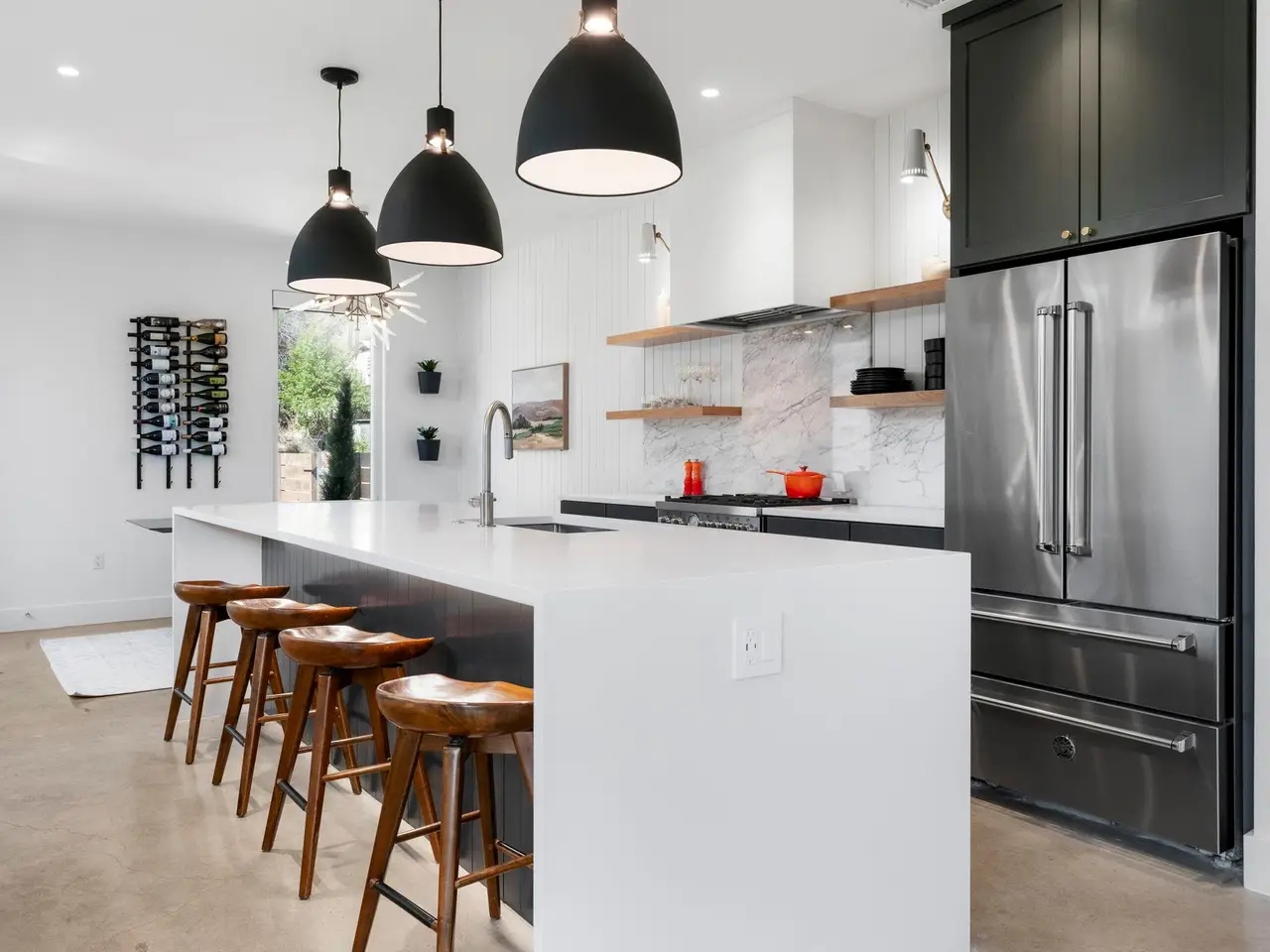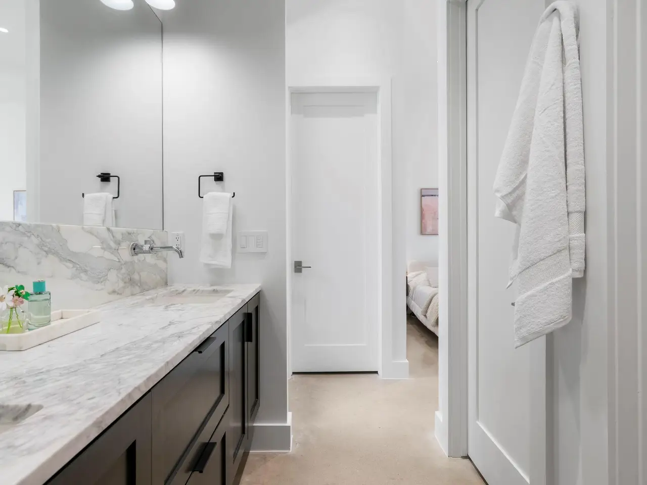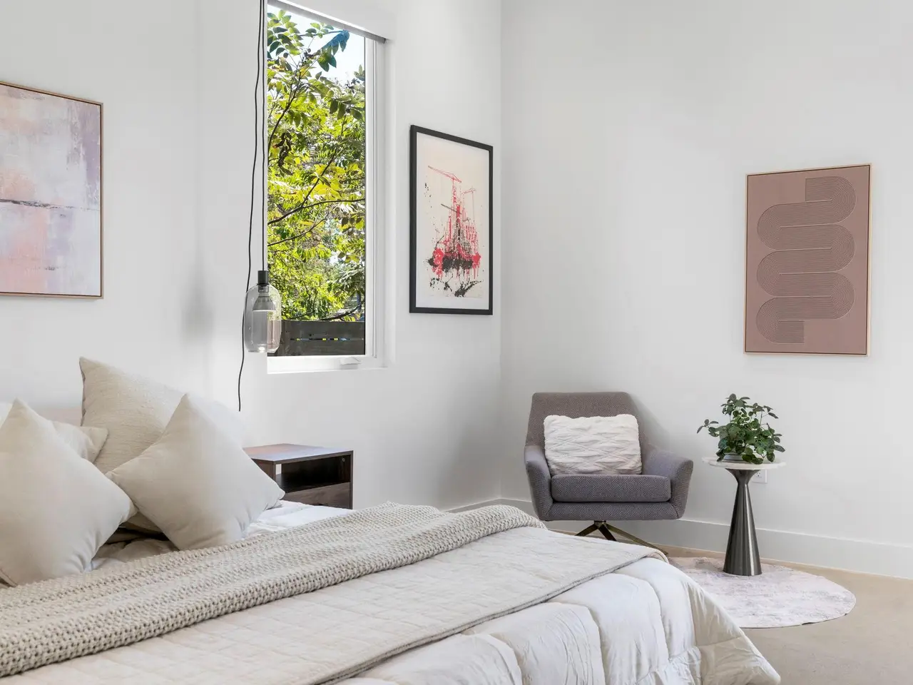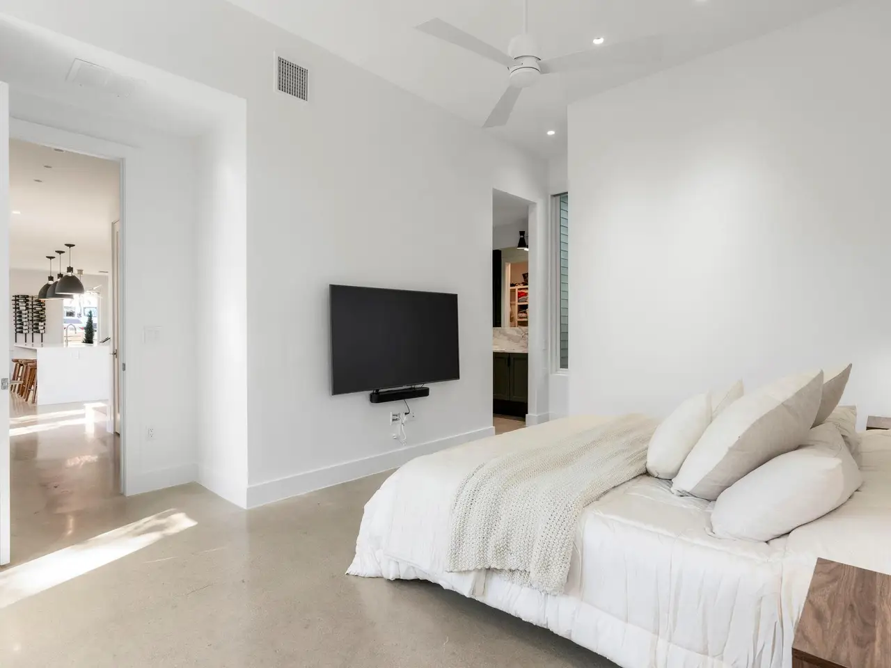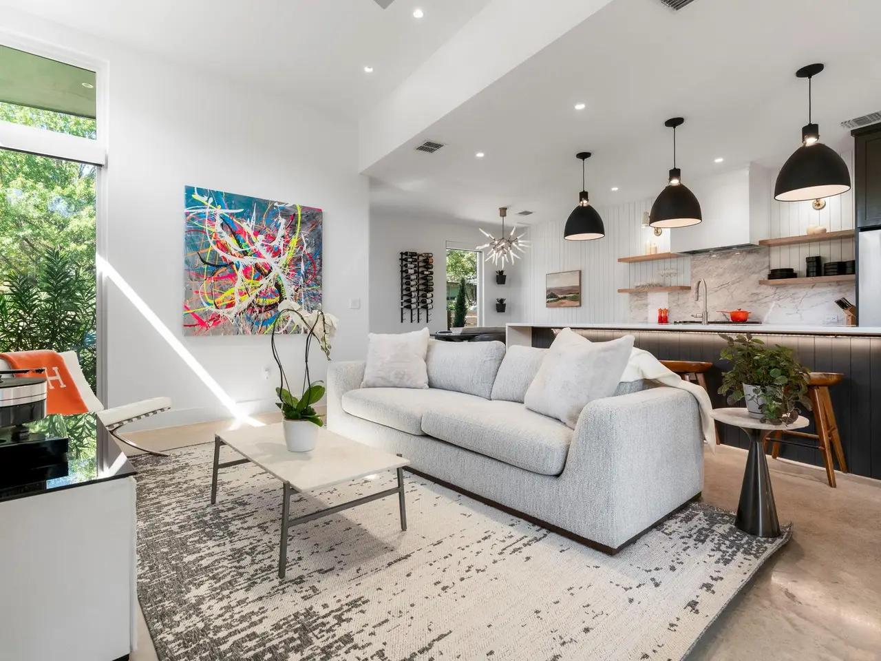 Live the 78704 lifestyle in comfort and style. Situated on a corner lot near South First Street, this modern residence blends convenient, lock-and-leave ease with thoughtful, design-forward upgrades. Tall ceilings and concrete floors ground the main level, while white oak flooring continues upstairs for a warm, cohesive look. The kitchen shines with stainless Bertazzoni appliances, a gorgeous tile backsplash, and an over-sized breakfast island. A $70K Lutron HomeWorks system with Ketra lighting and automated shades elevates every room with tailored light and effortless control.The main-level primary suite features two walk-in closets and a serene, spa-style walk-in shower, and dual raised vanities. Upstairs, a flexible second living room/den/office accompanies two additional bedrooms and a full bath, creating the ideal separation of spaces. Custom cabinetry in the mudroom and hallway keeps daily life streamlined, and the garage was enclosed to create additional protected parking with an EV charging port.Outdoors, the fenced yard is fully turfed, fully irrigated, and designed for gatherings with an extended 475 SF patio and deck beneath a leafy canopy, plus room for a pool, if desired. Recent exterior washing, retaped roof, and refreshed soffits reflect conscientious care. A side wood shed organizes garden and lawn tools. This is comfortable, convenient luxury in the heart of 78704, minutes to coffee, dining, and South Austin's best parks and boutiques.